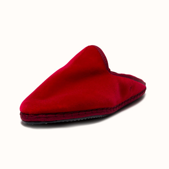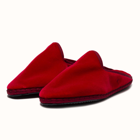 Babouche en velours rouge cerise et gros grain ton sur ton