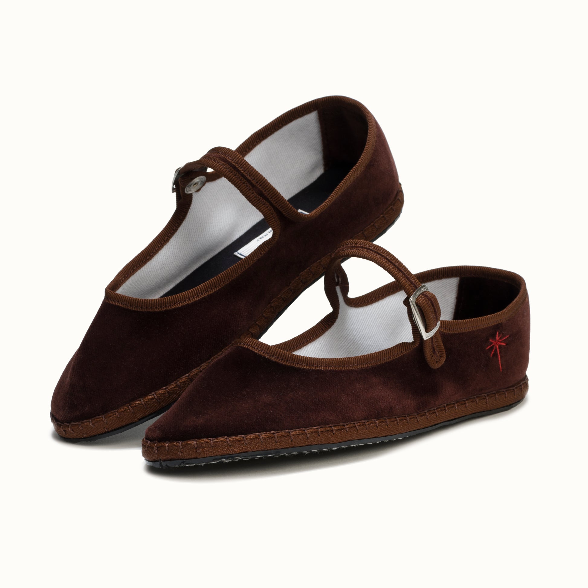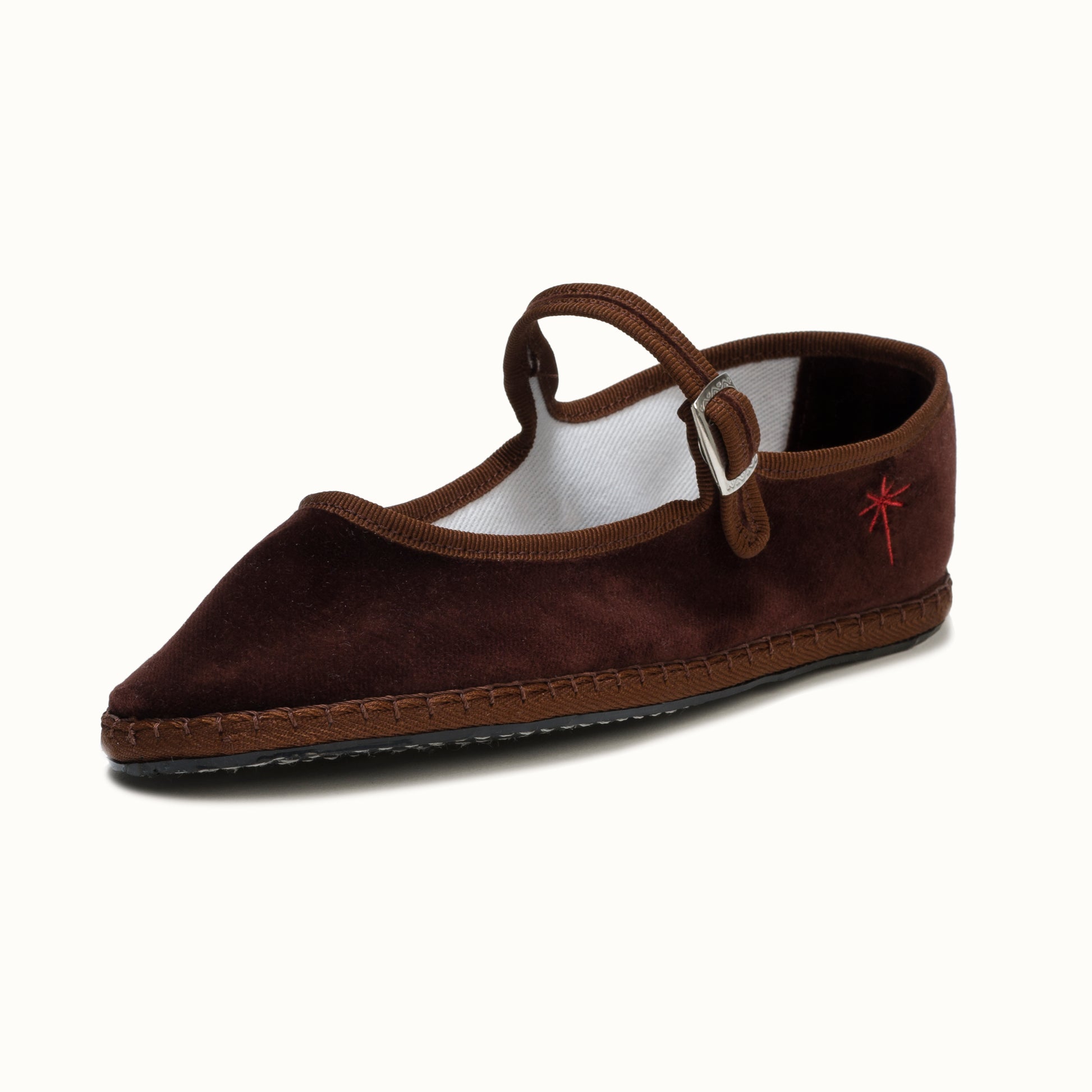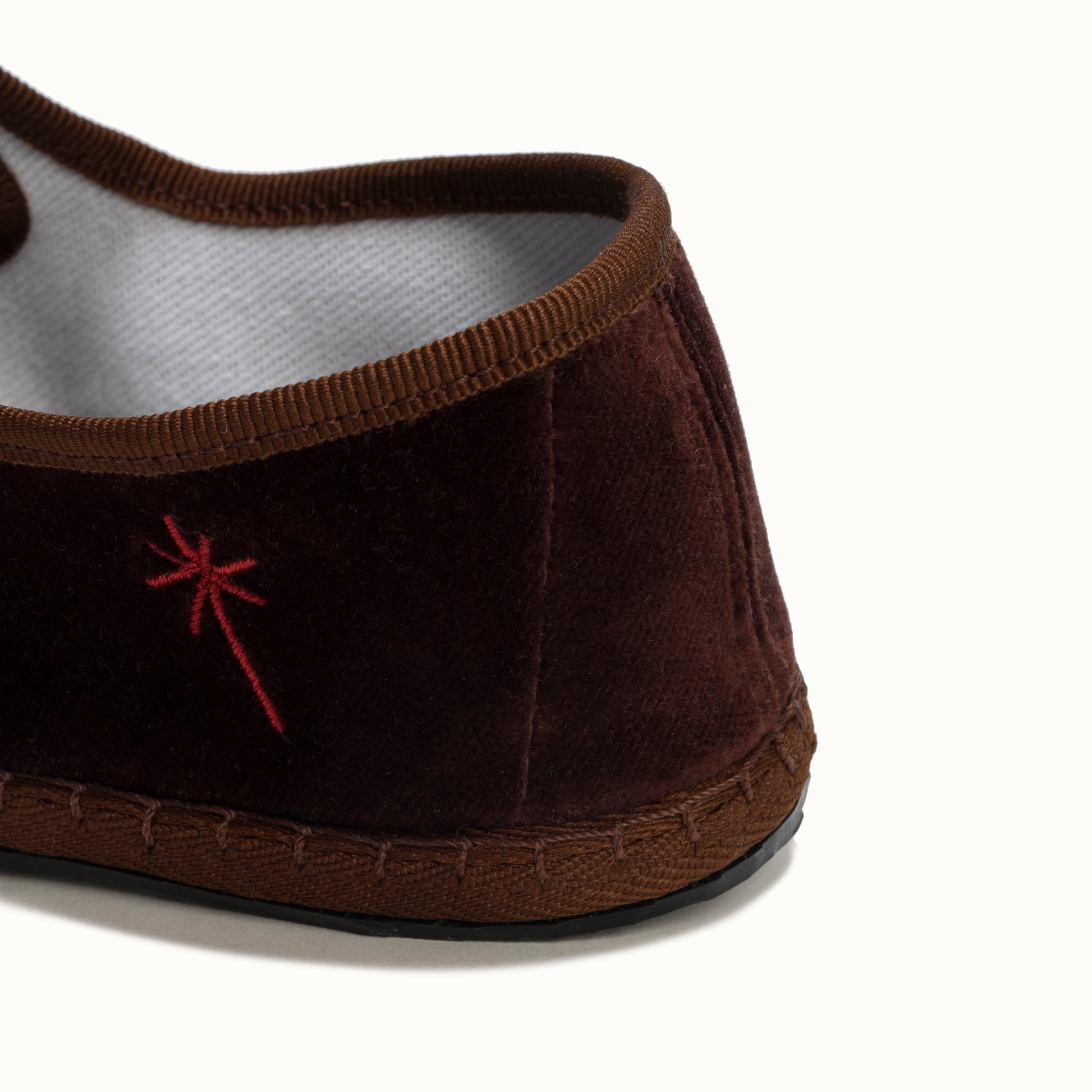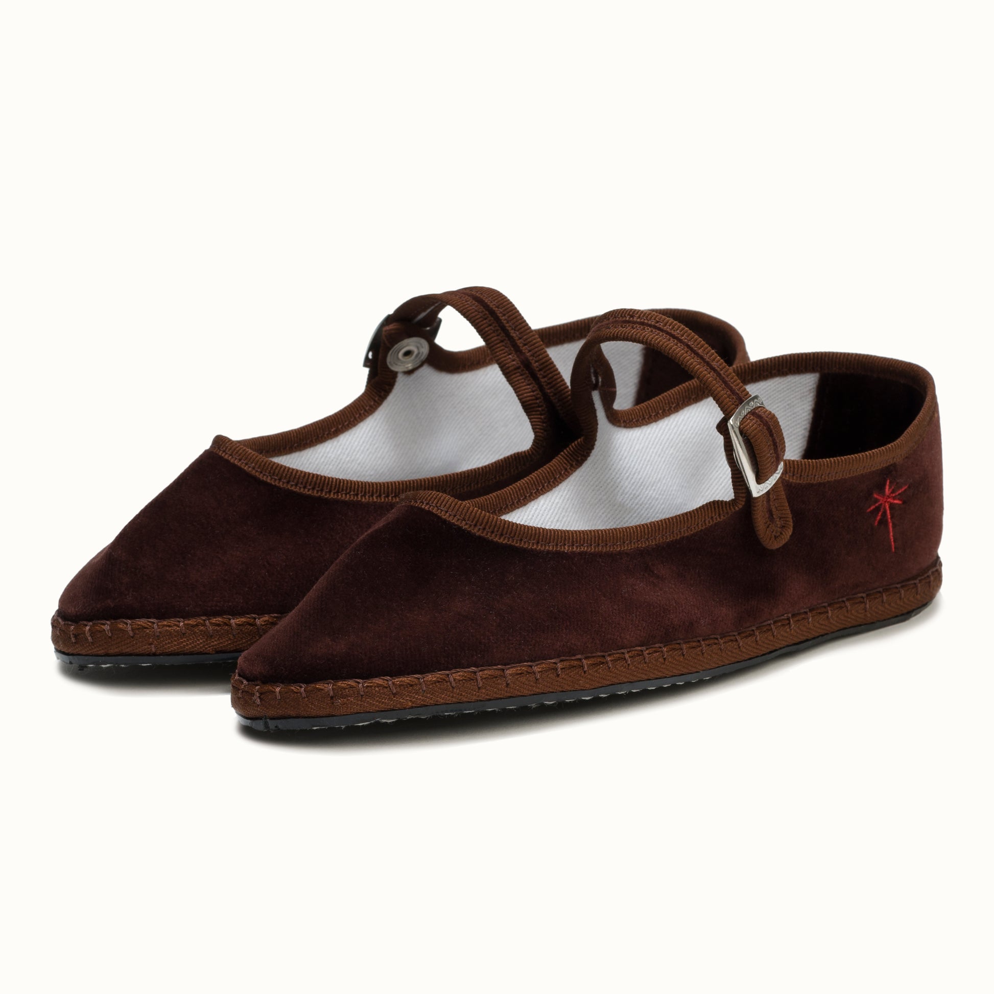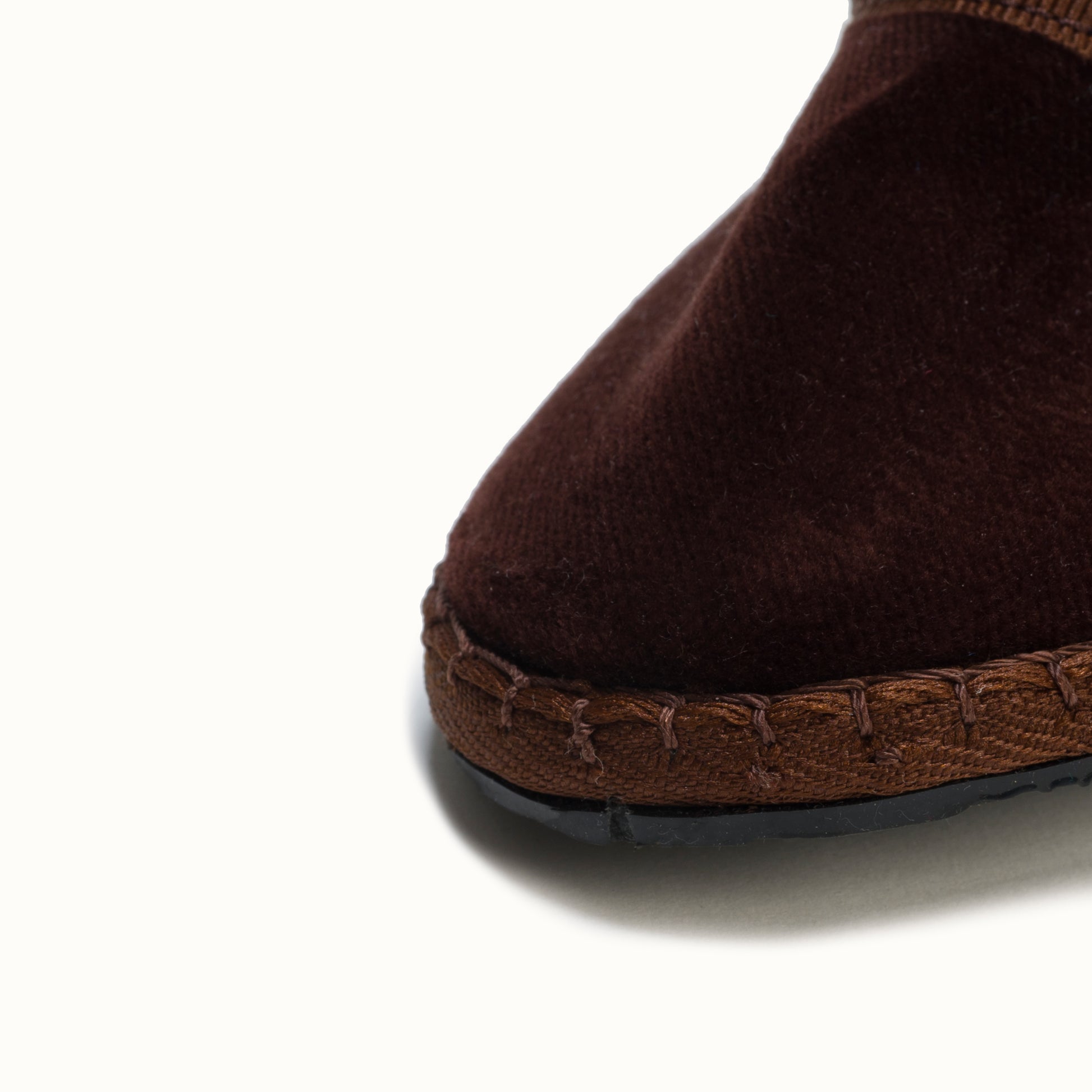 Mary-Jane en velours brun chocolat et rebords en gros grain ton sur ton.