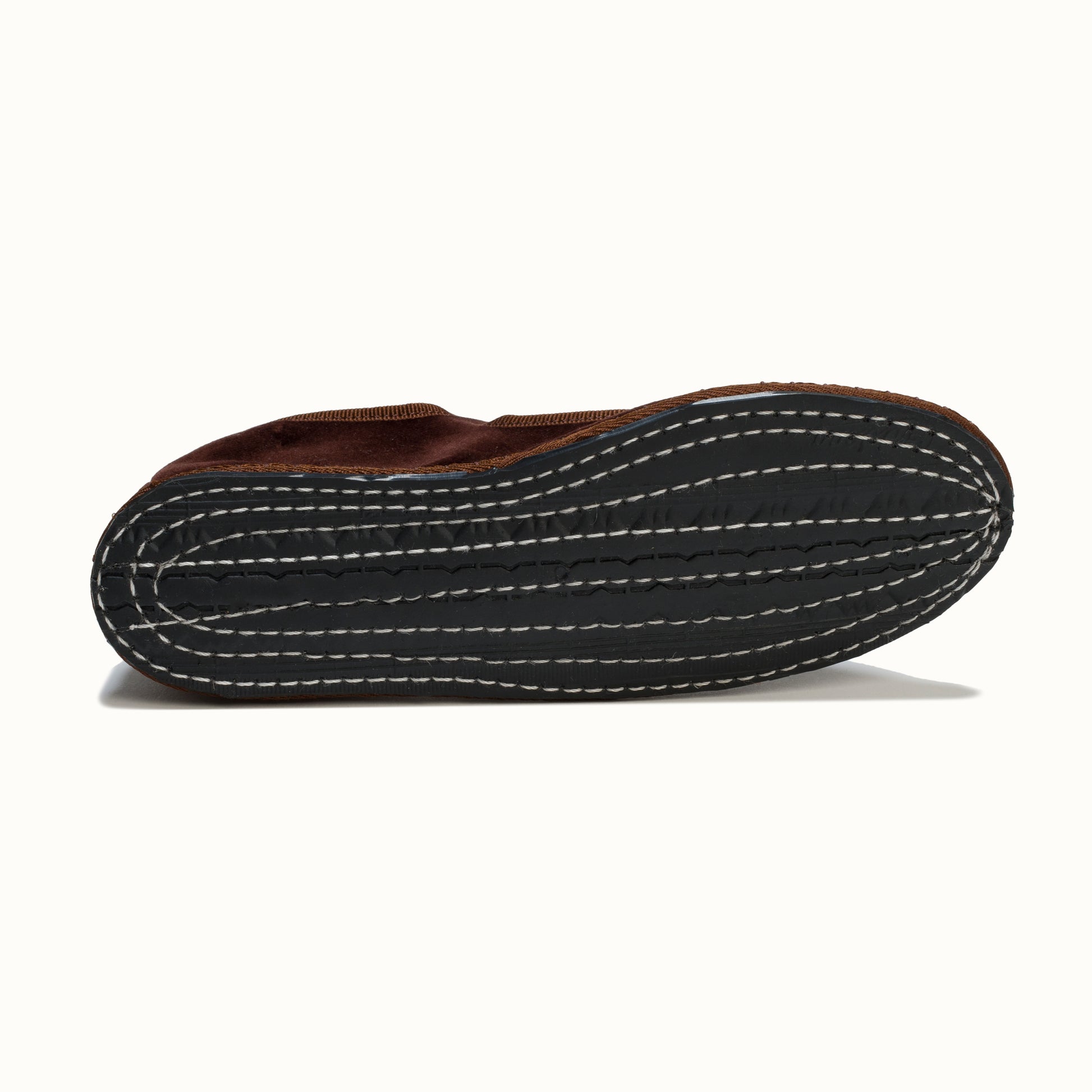 La semelle intérieure est en coton noir, la semelle extérieure en traditionnel pneu de vélo.