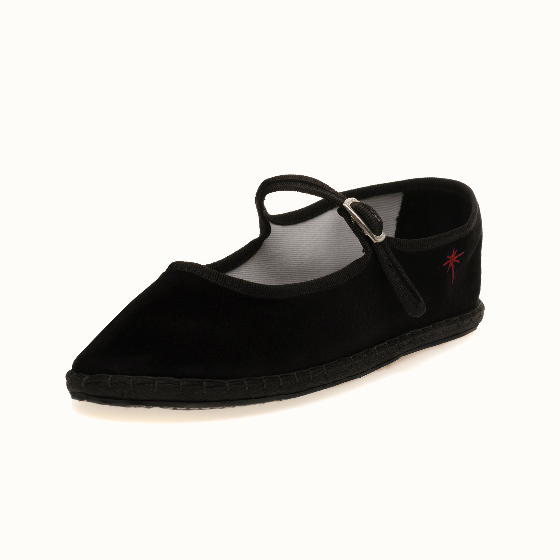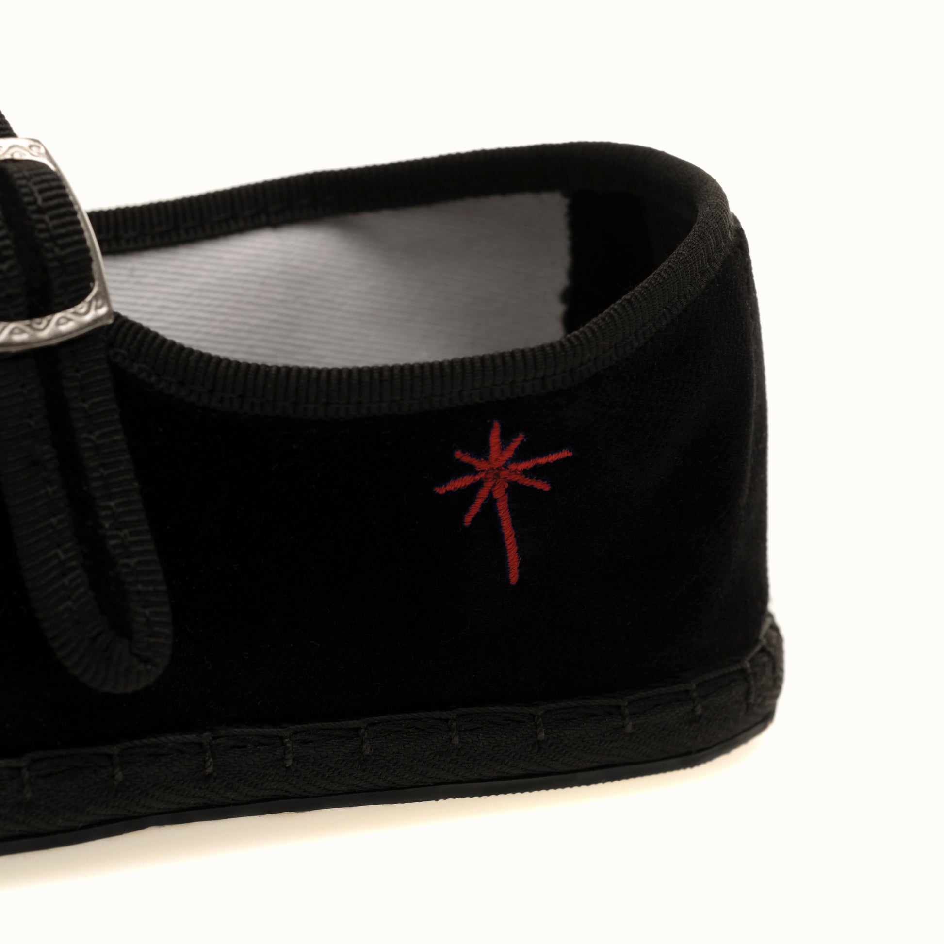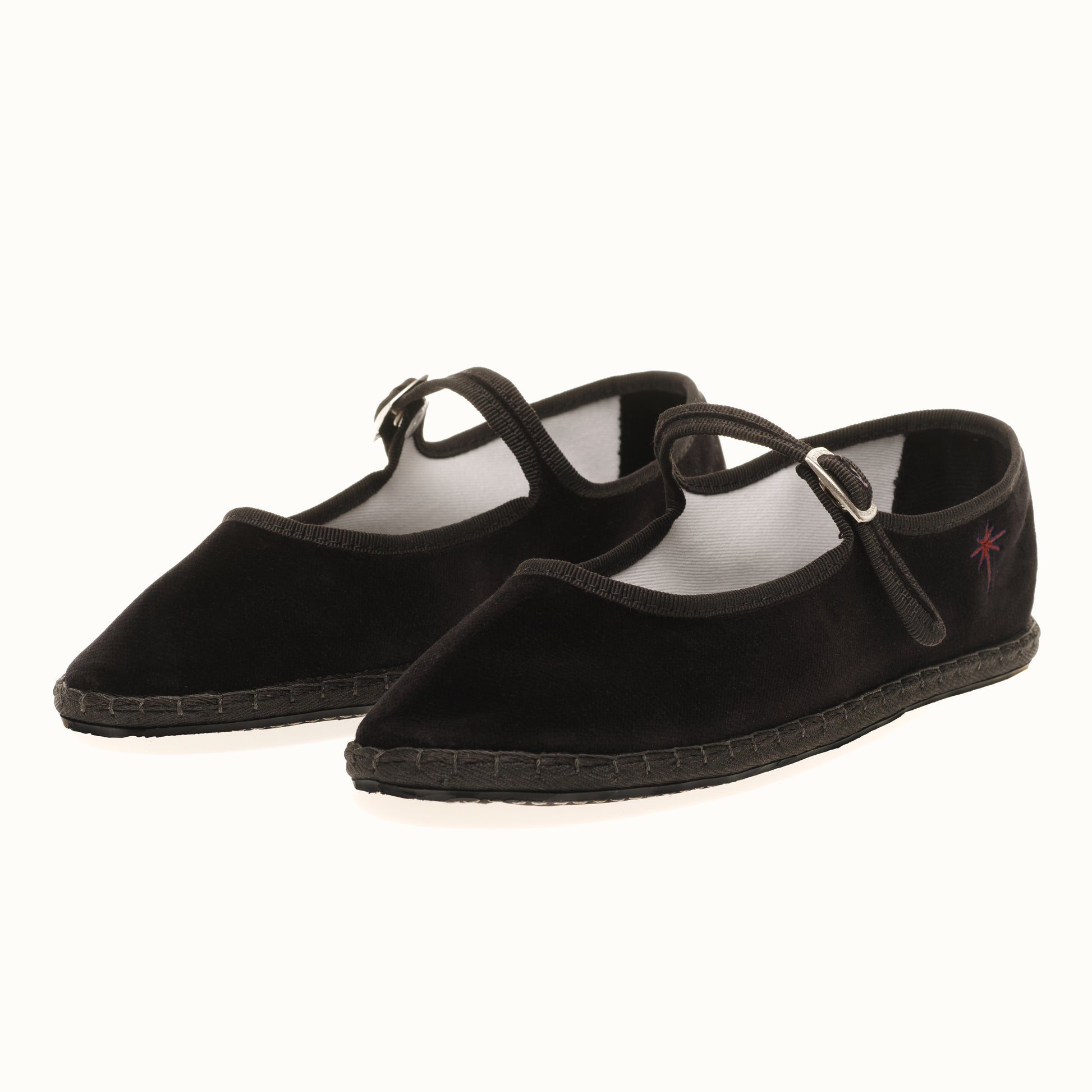 Mary-Jane en velours noir et rebords en gros grain ton sur ton.