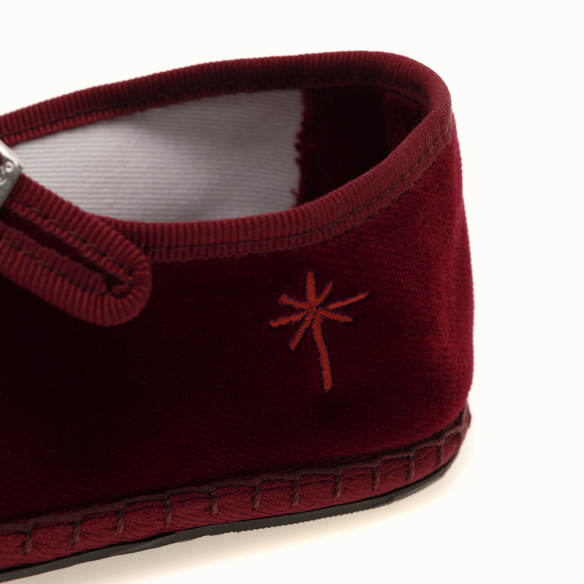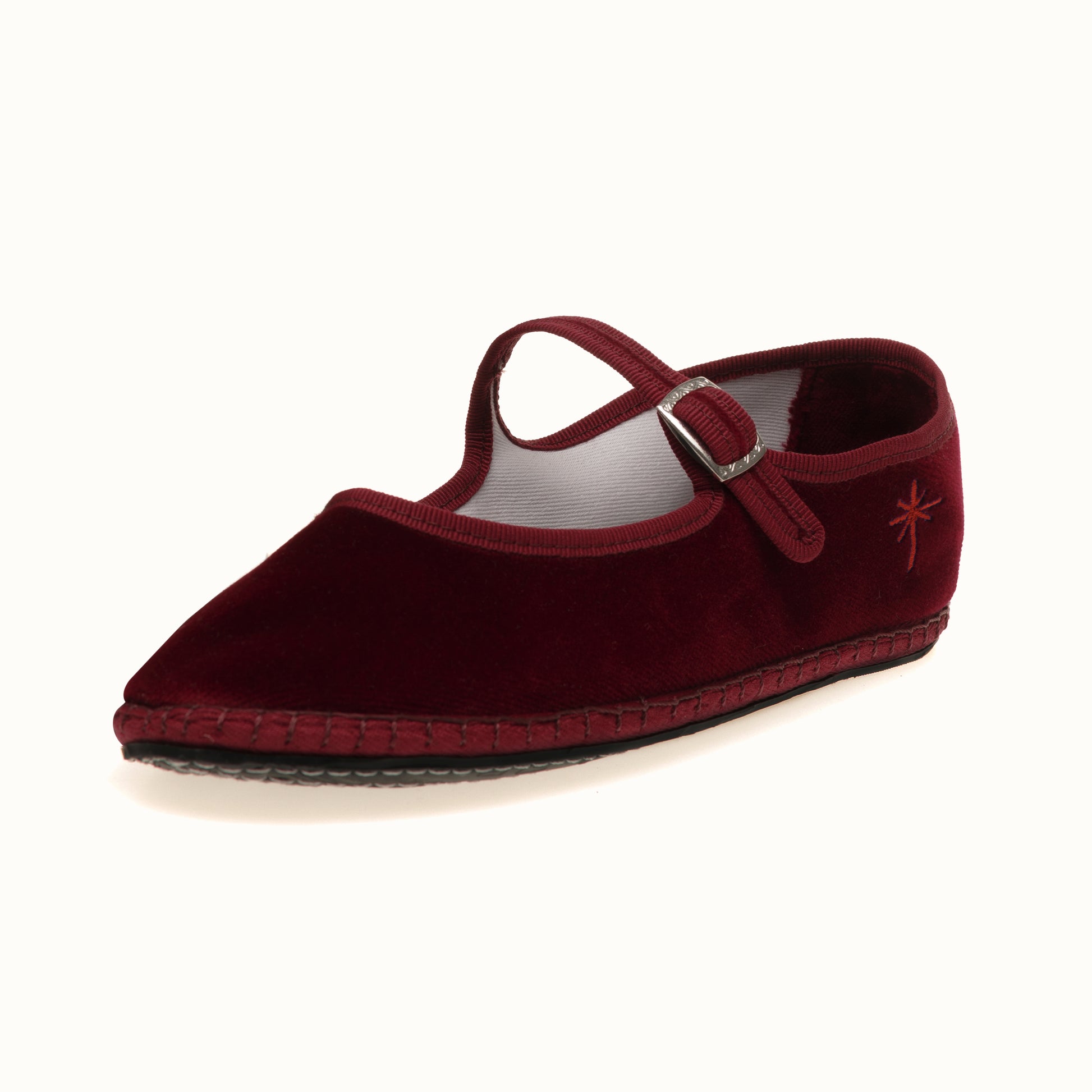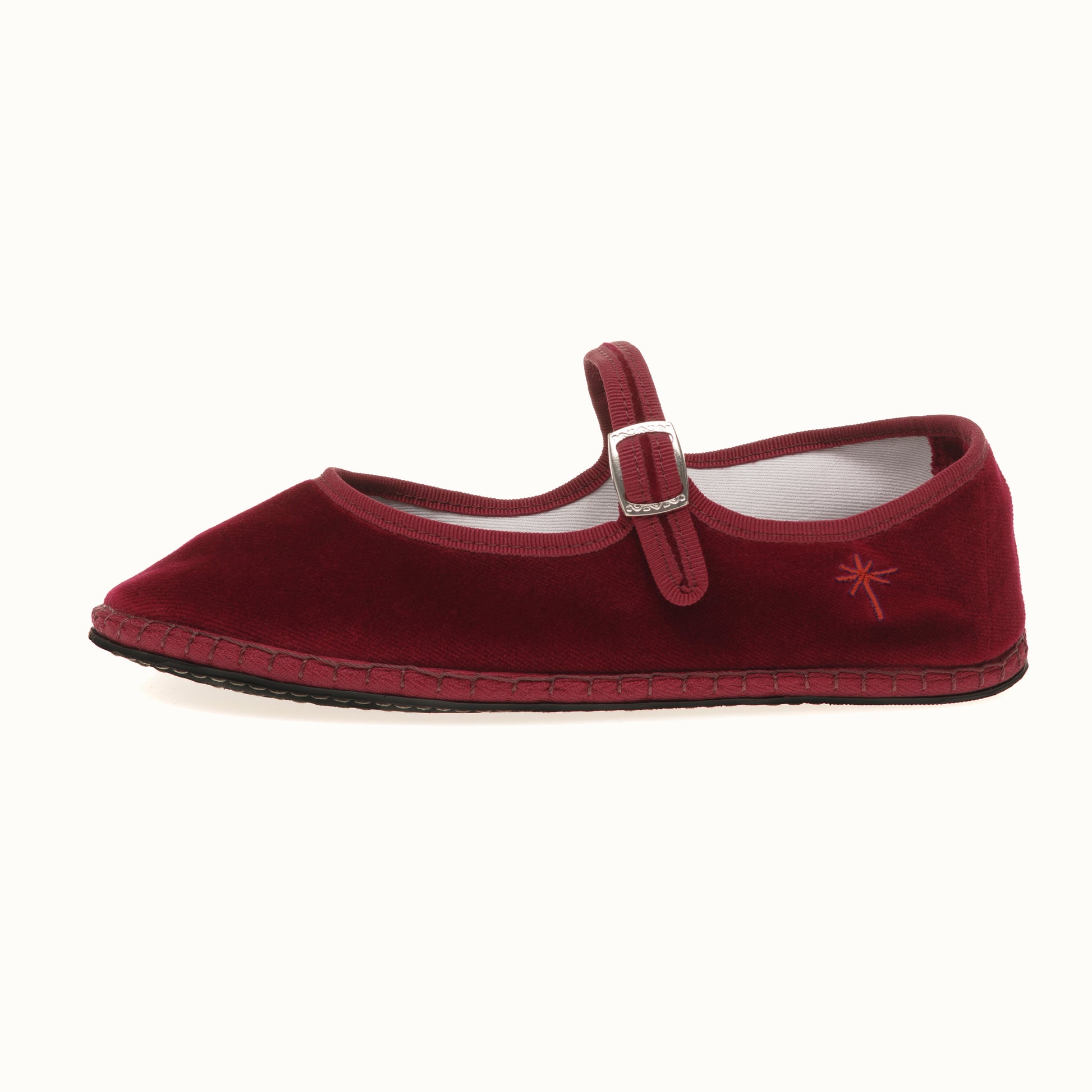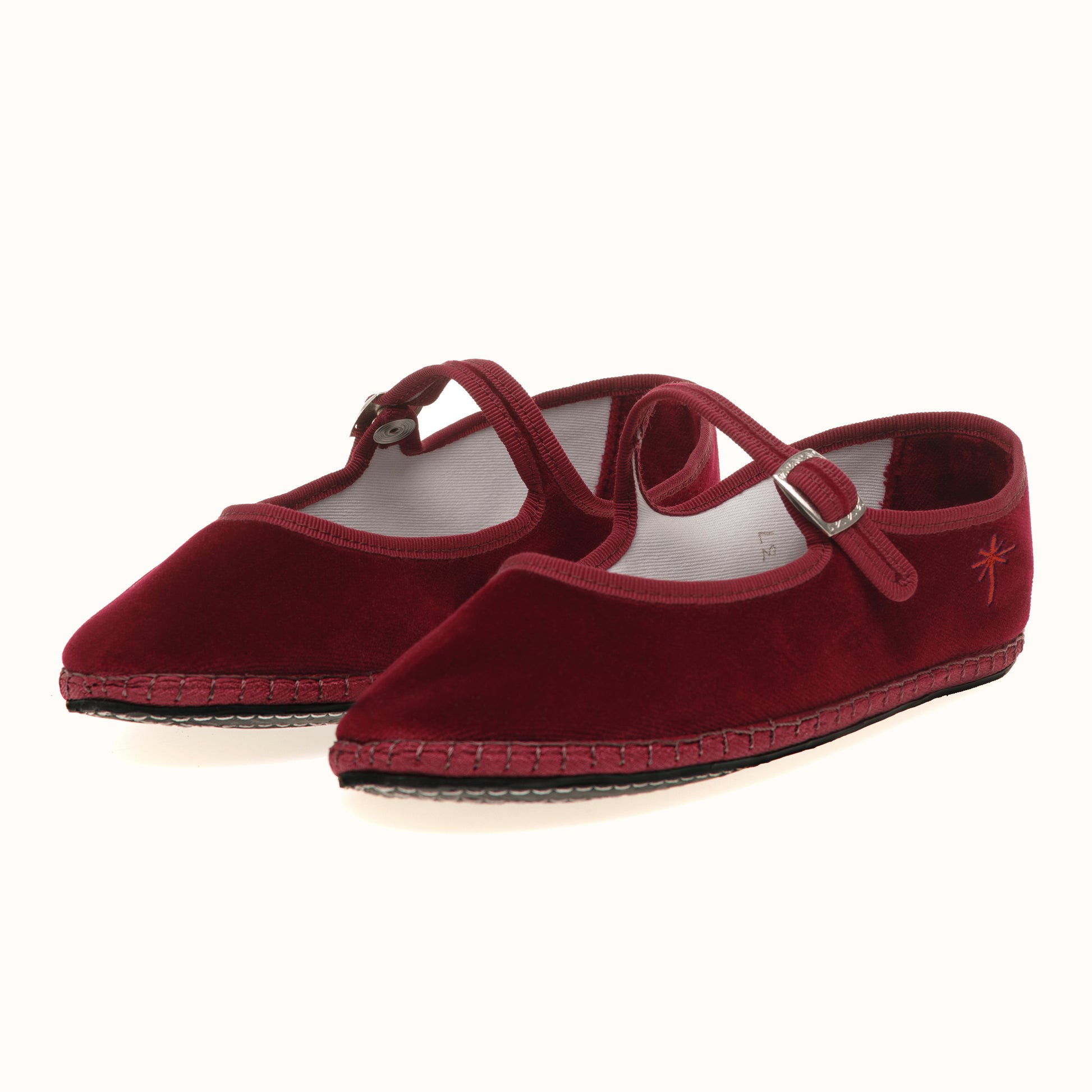 Mary-Jane en velours rouge bordeaux et rebords en gros grain ton sur ton.