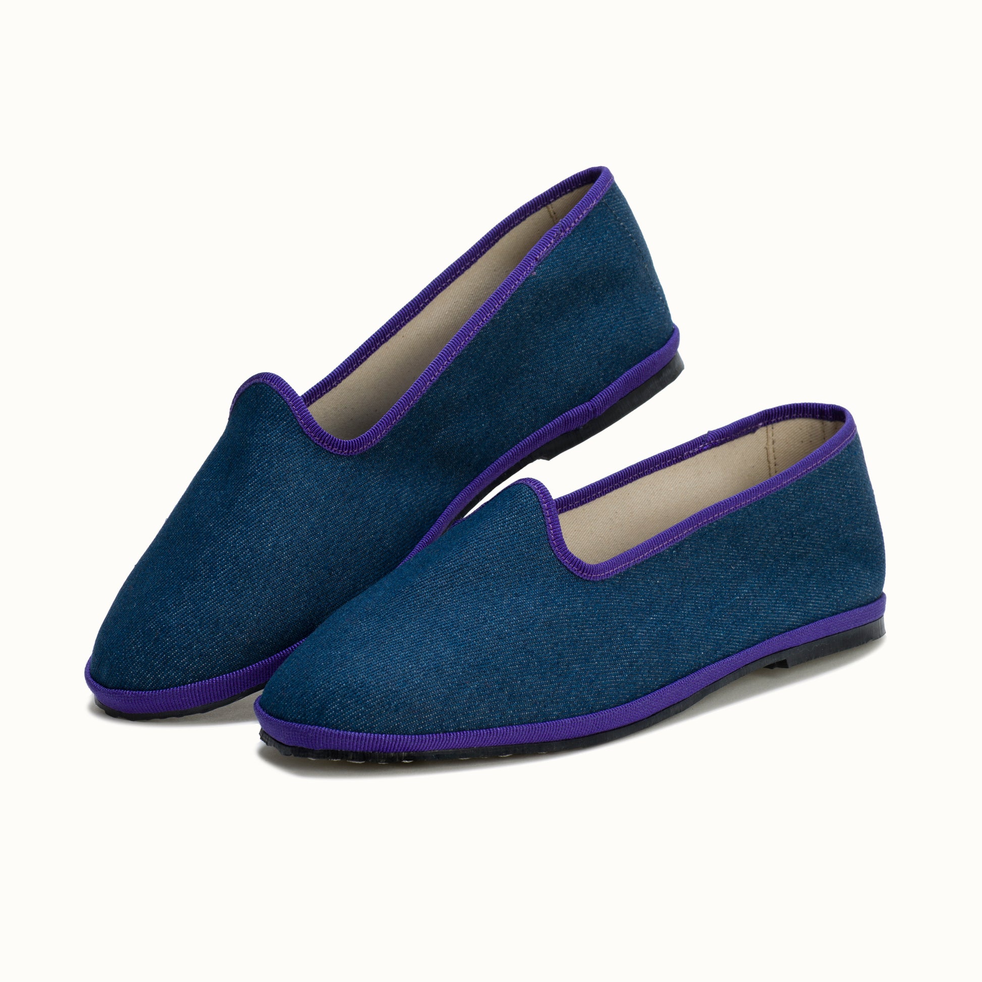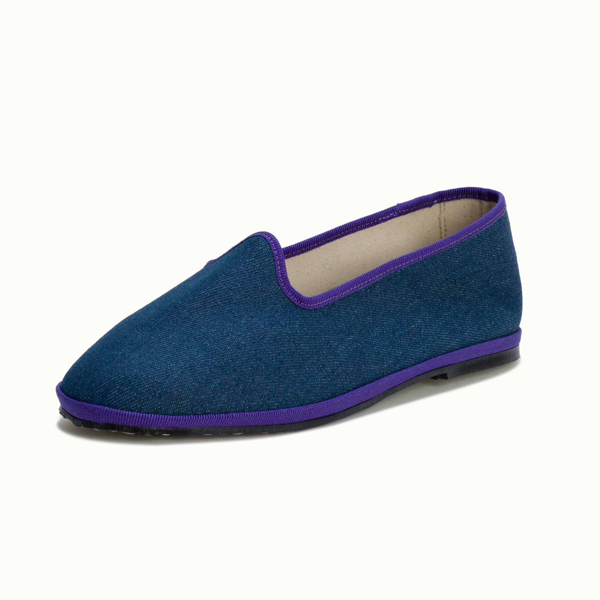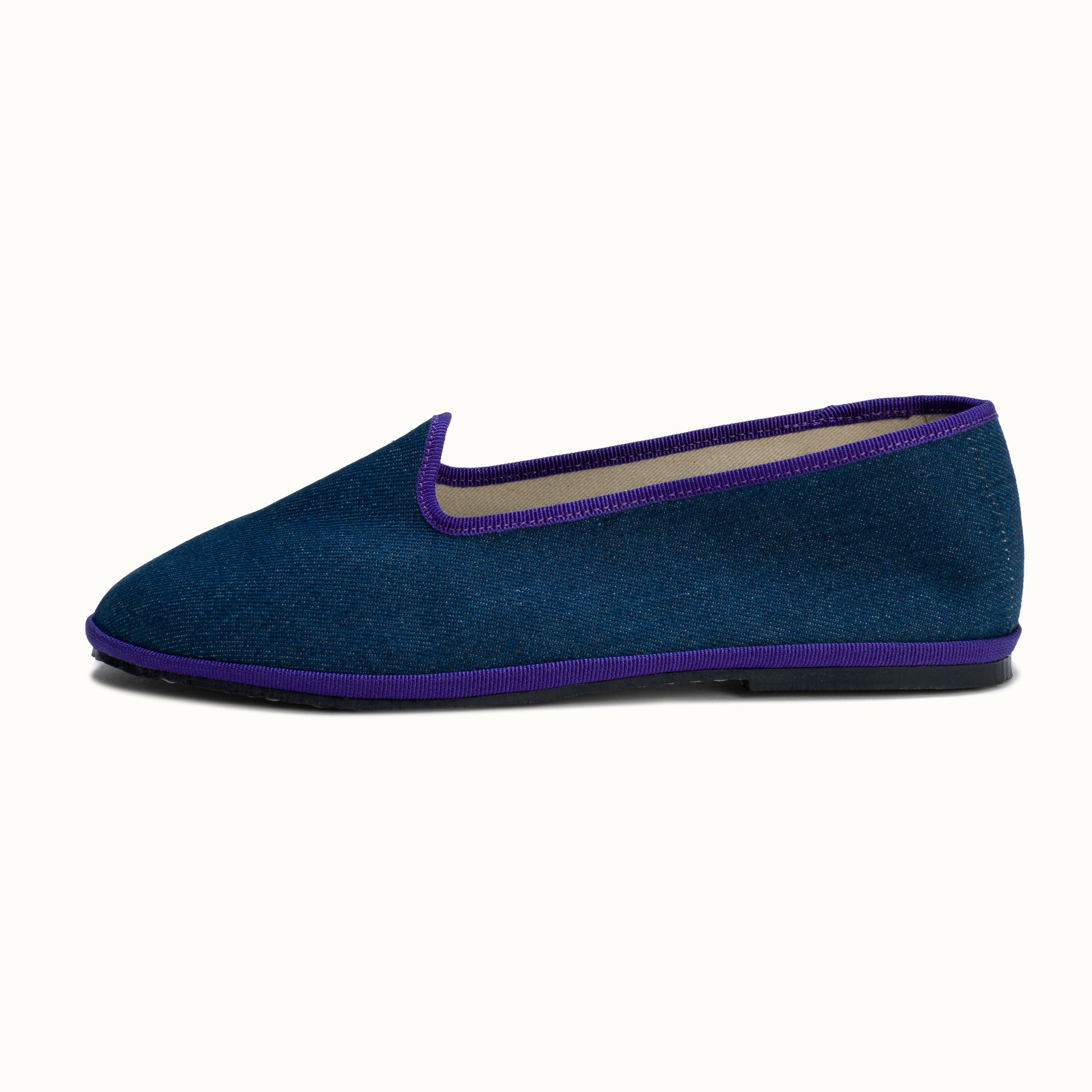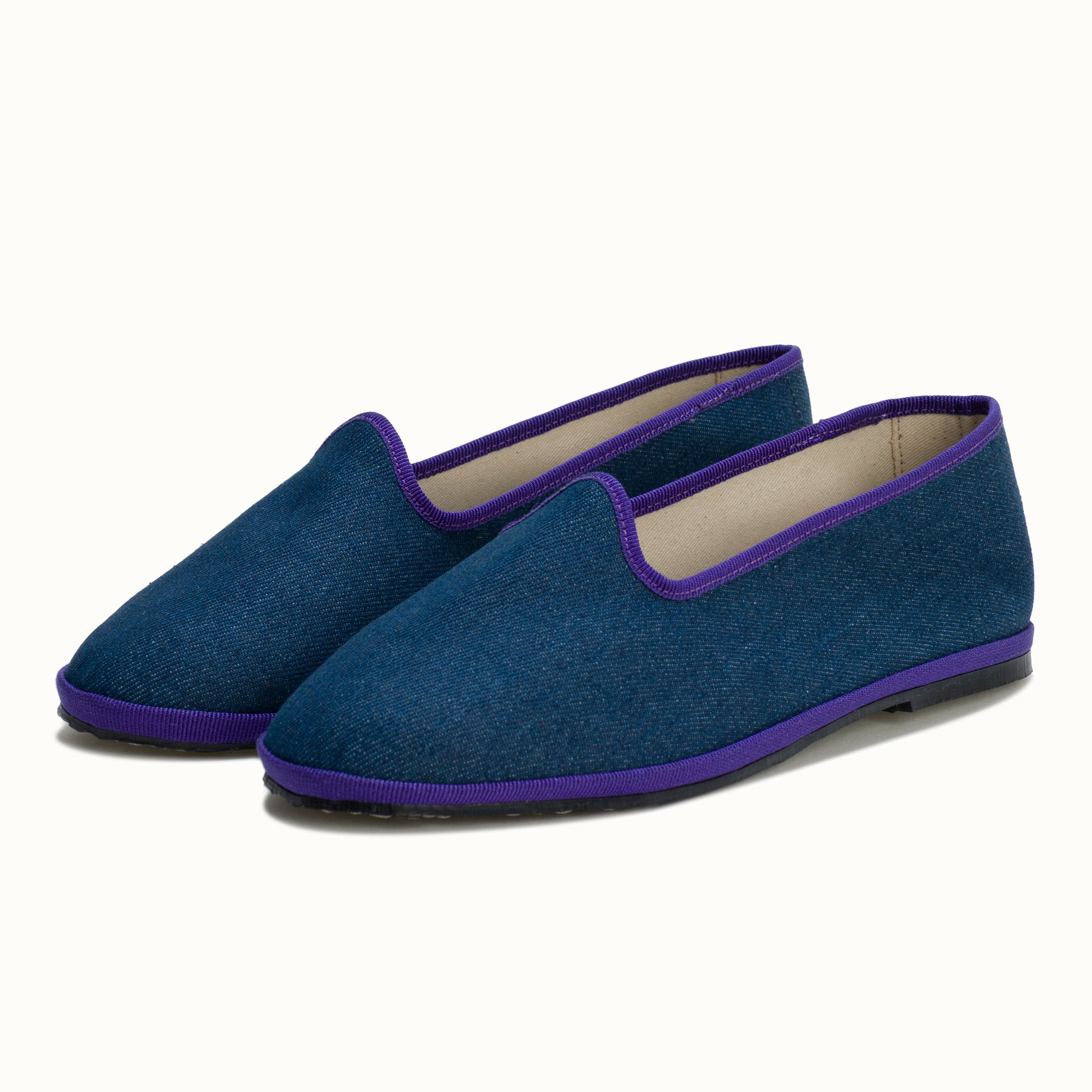La semelle intérieure est en denim, et la semelle extérieure est en traditionnel pneu de vélo.
