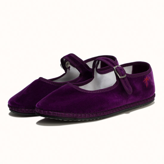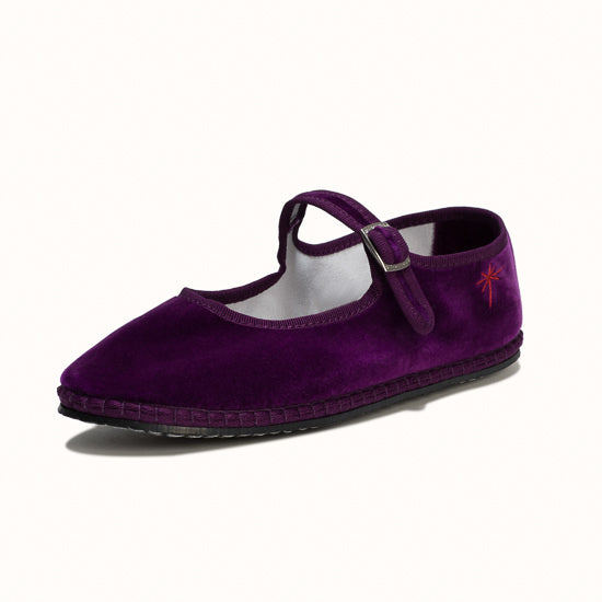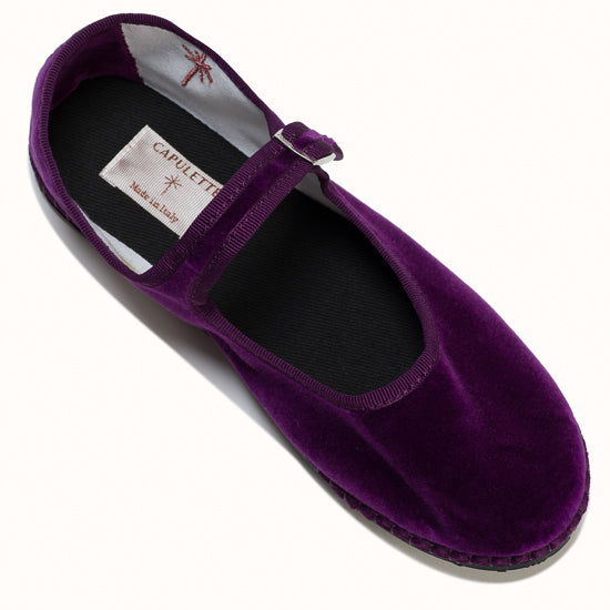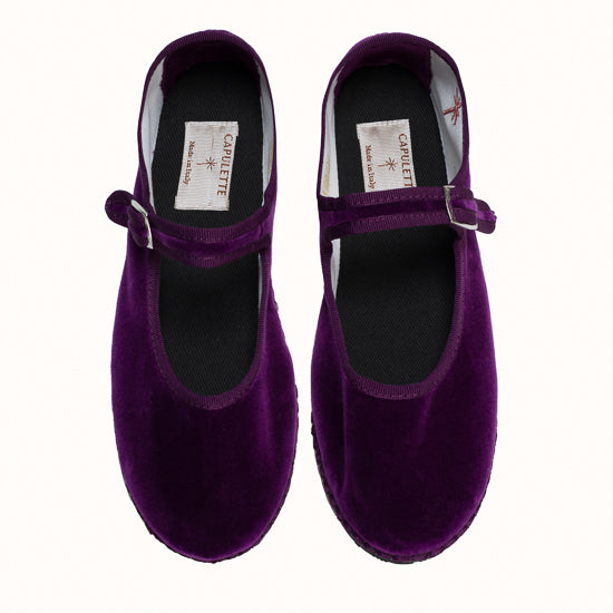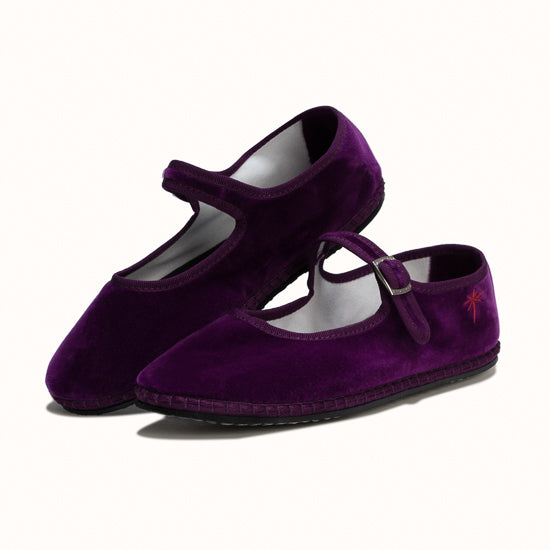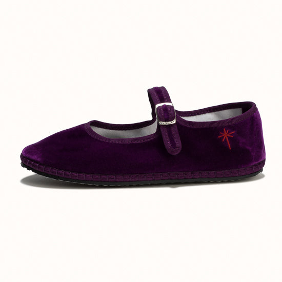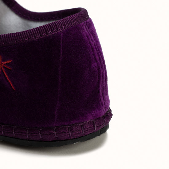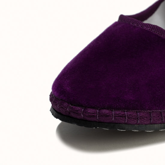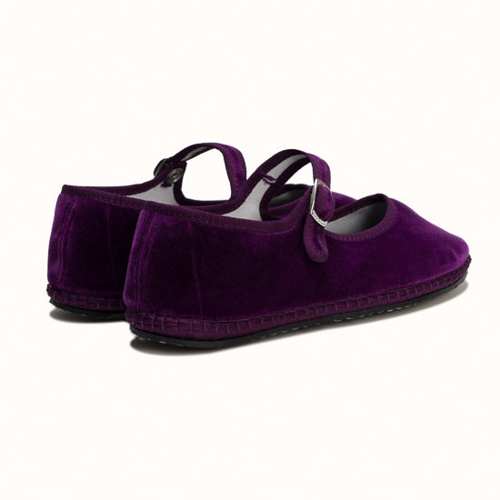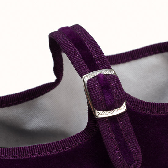 Mary-Jane en velours prune et rebords en gros grain ton sur ton.