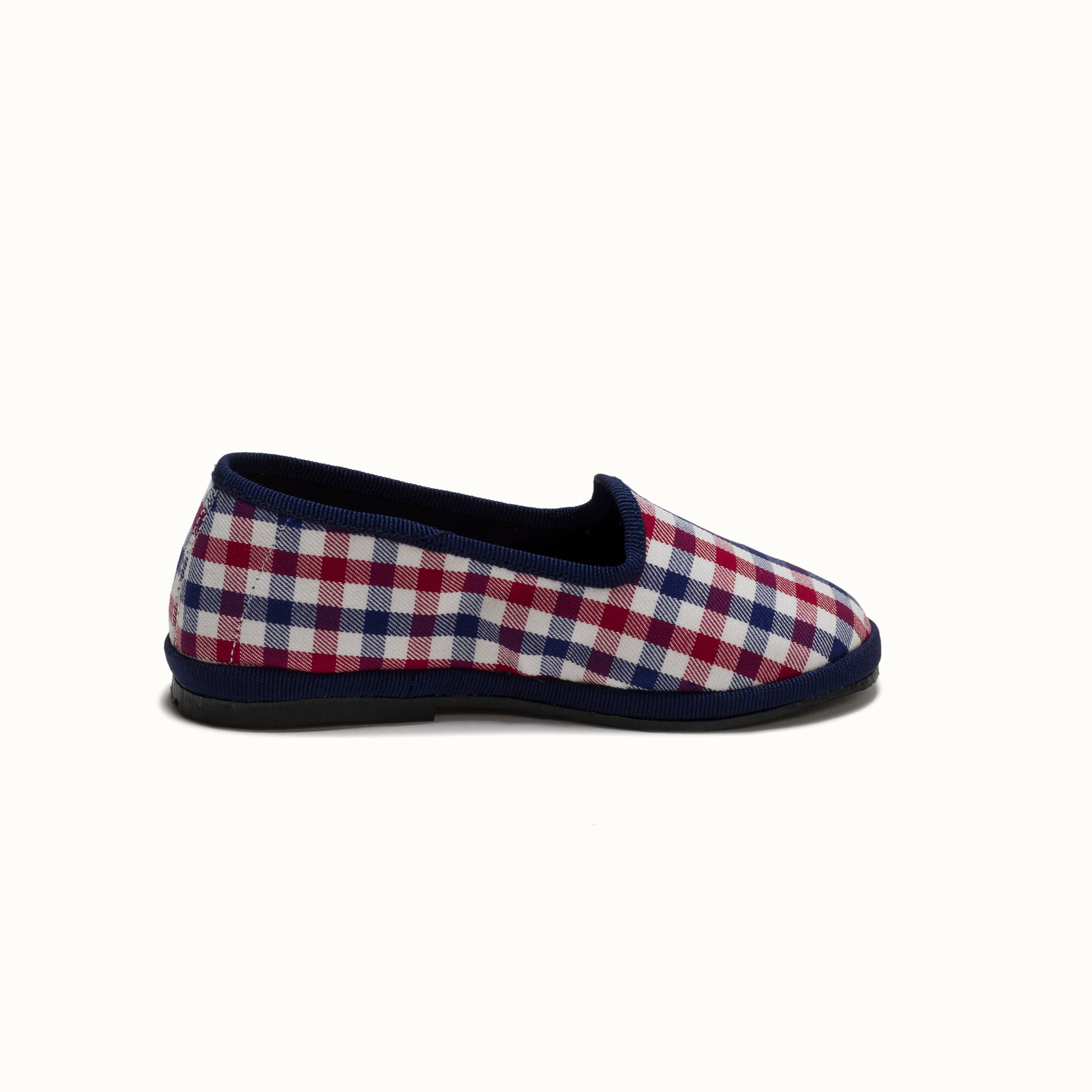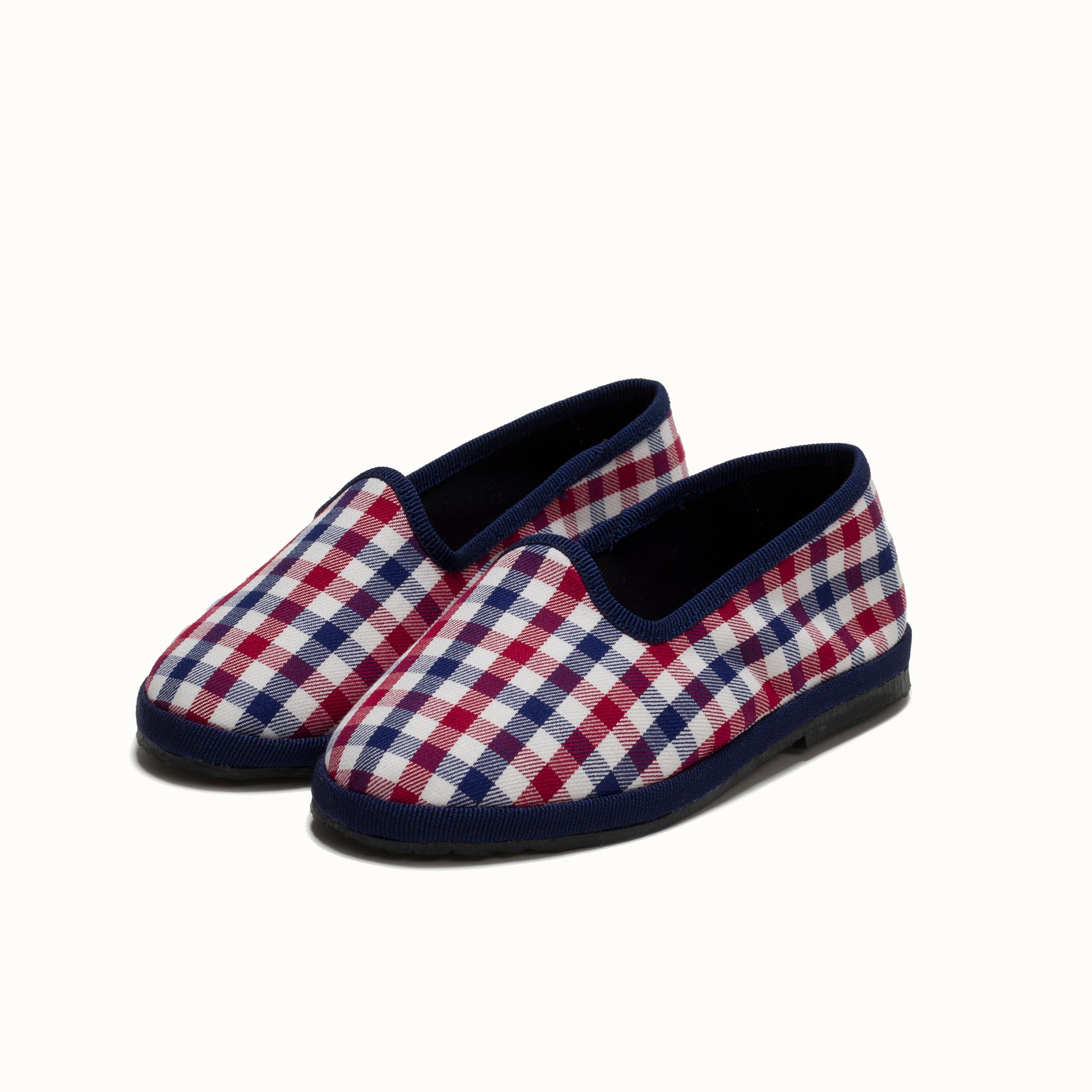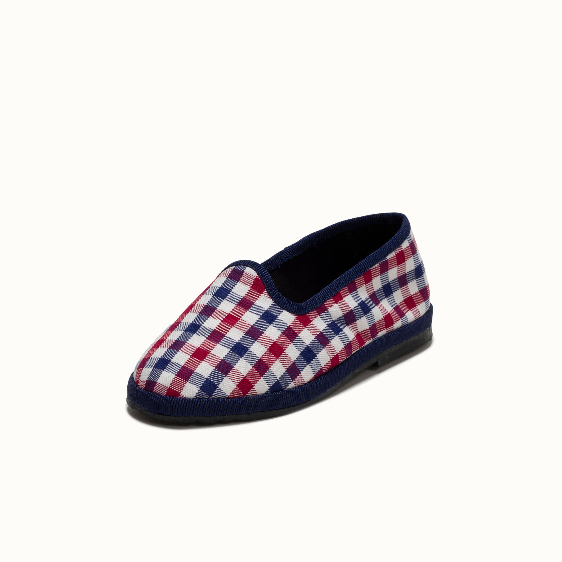Friulane en coton à carreaux rouge et bleu.