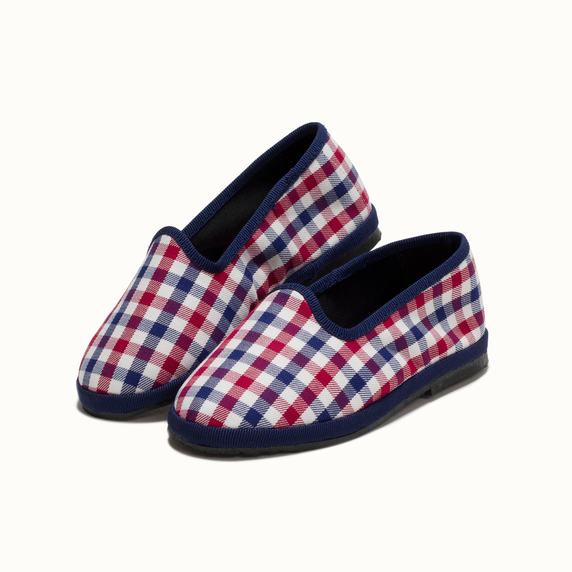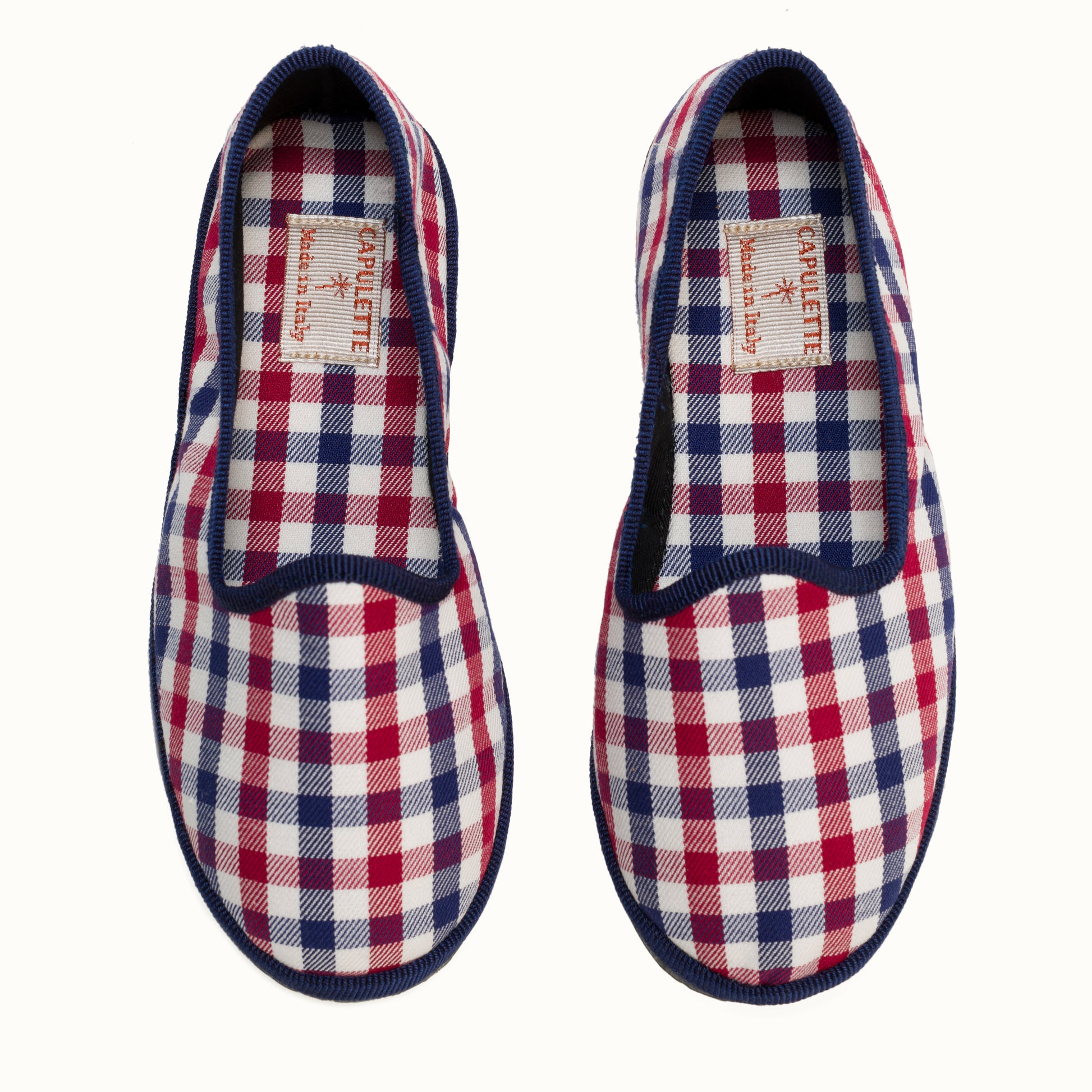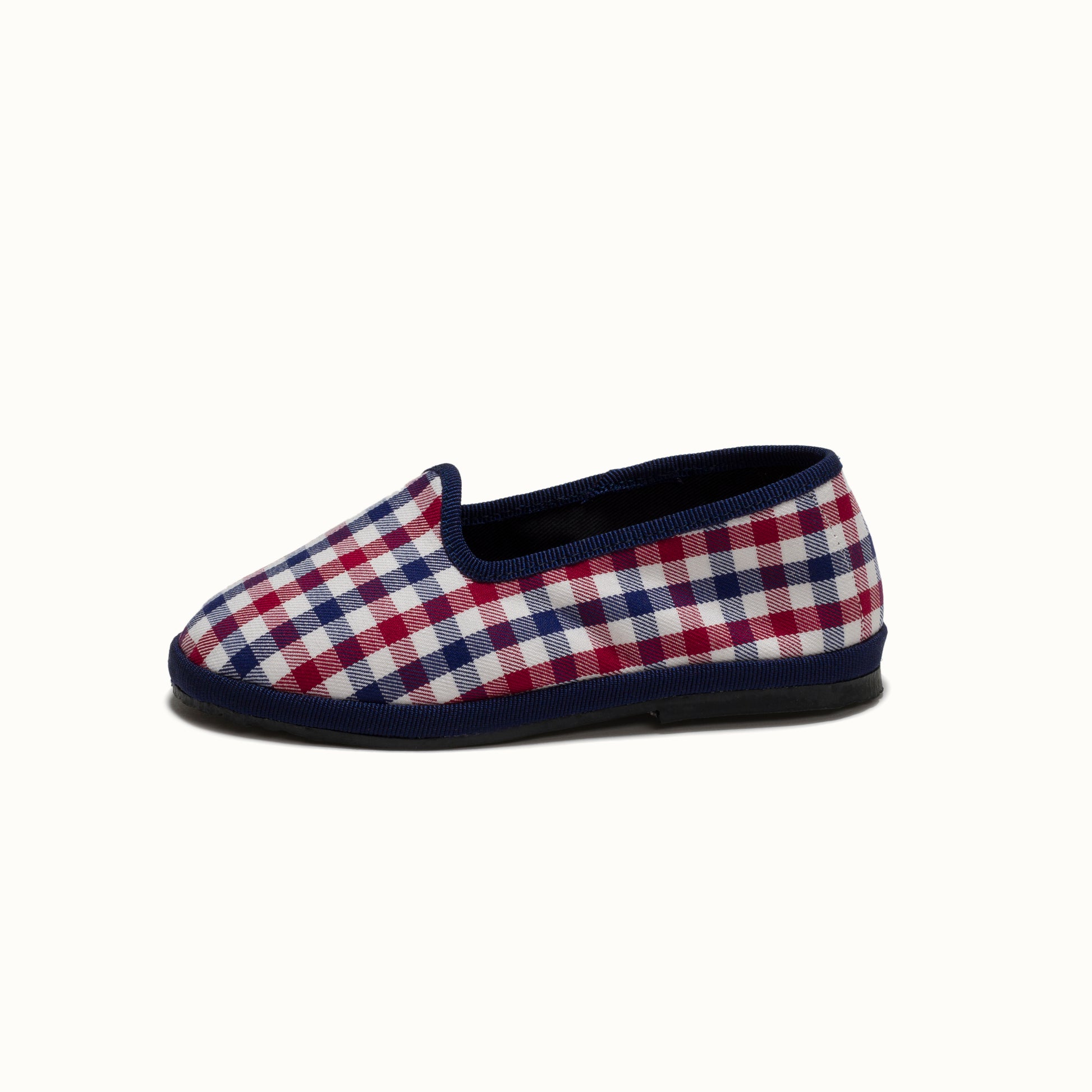 Friulane en coton à carreaux rouge et bleu.