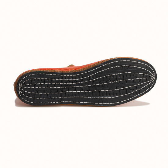 La semelle intérieure est en coton terracotta, la semelle extérieure en traditionnel pneu de vélo. Talon de 0,7cm