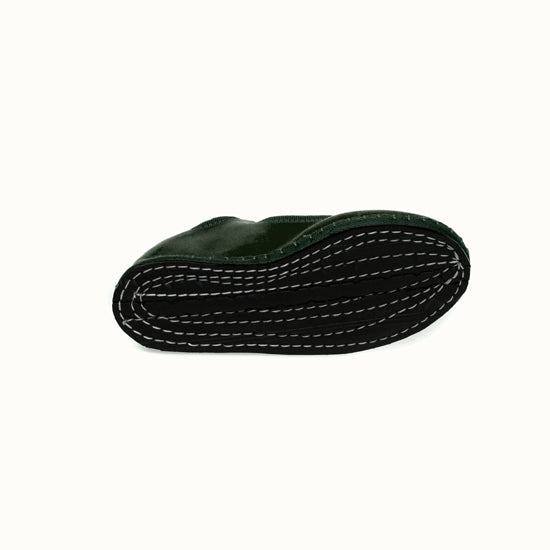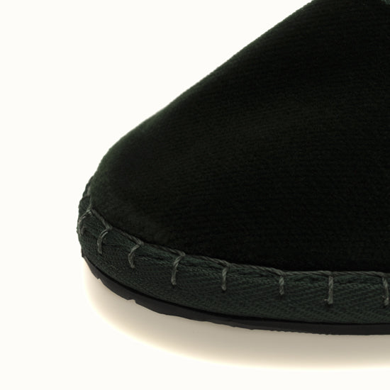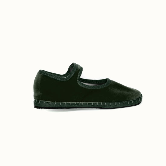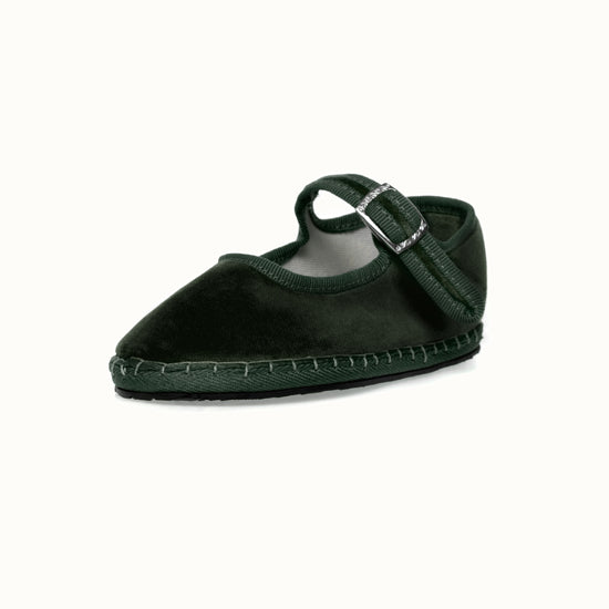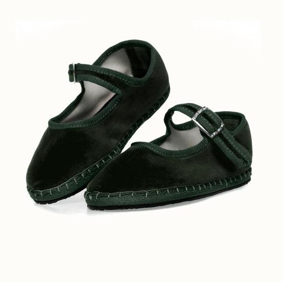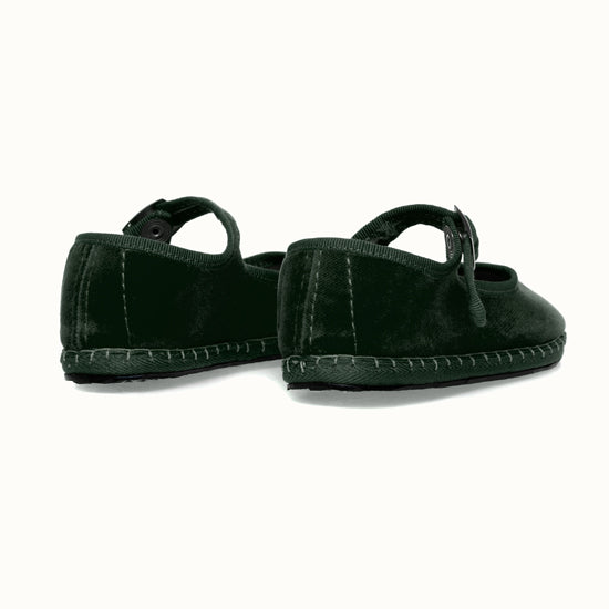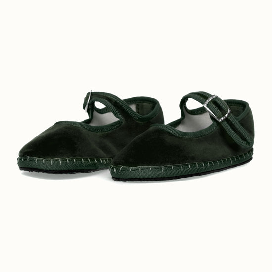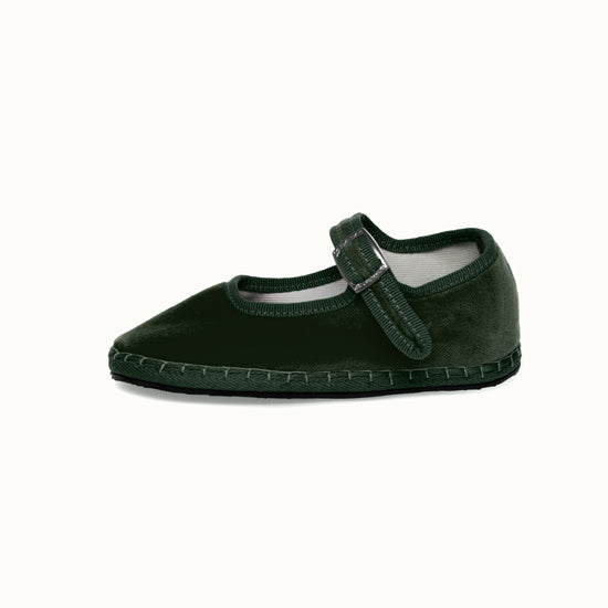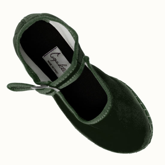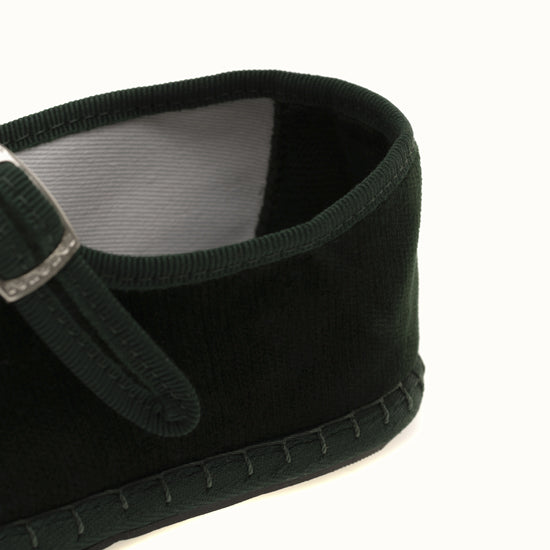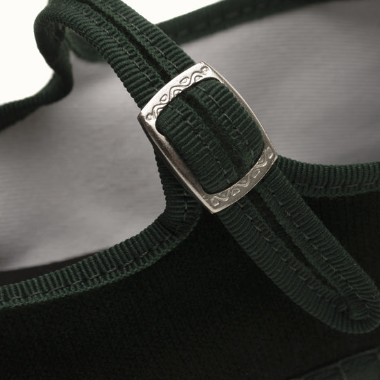 Mary-Jane en velours vert forêt et rebords en gros grain ton sur ton.