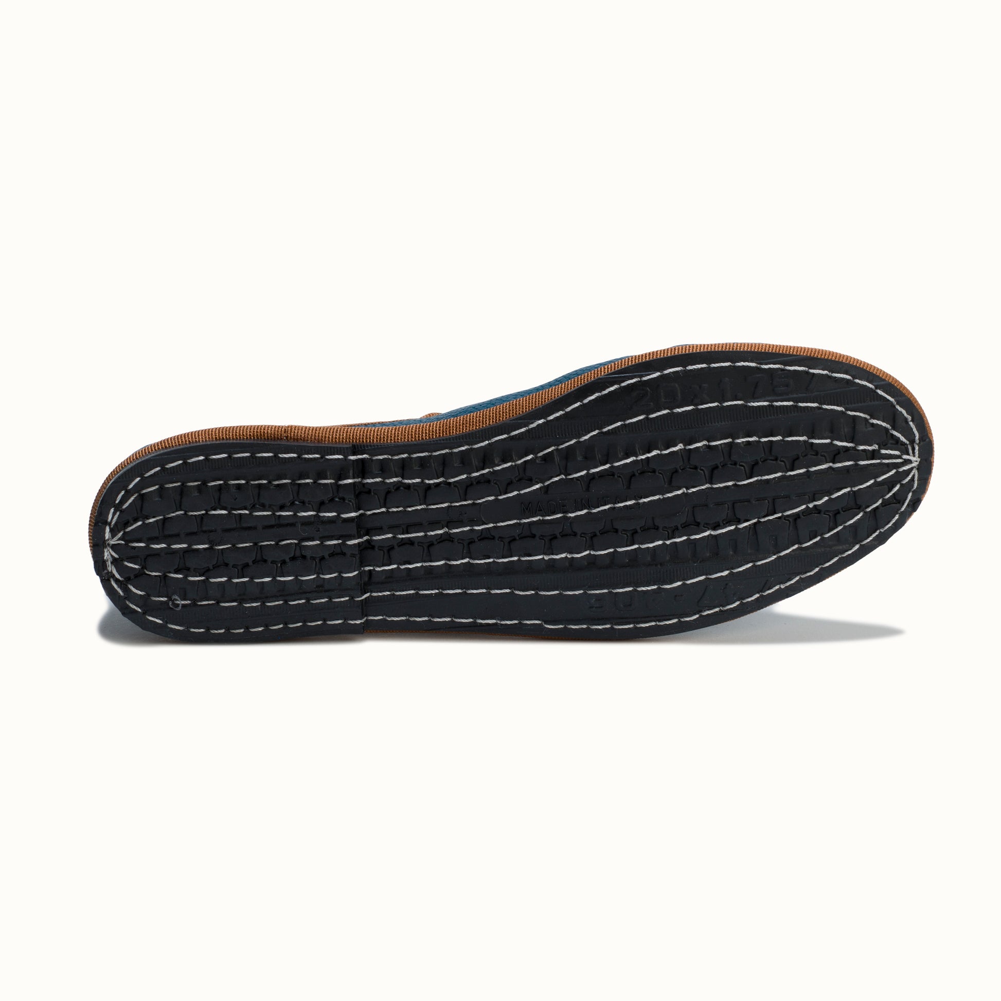 La semelle intérieure est en denim, et la semelle extérieure est en traditionnel pneu de vélo.