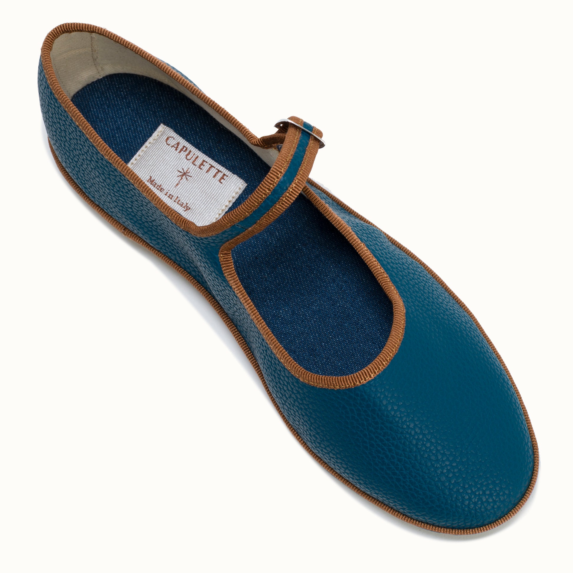 Maryjane embout rond en simili cuir bleu lagoon.