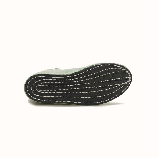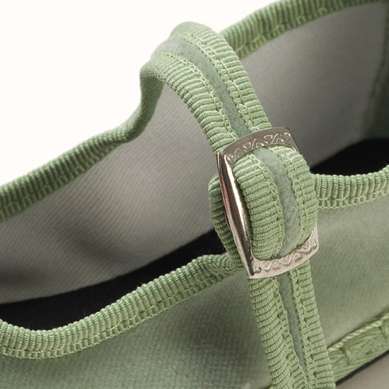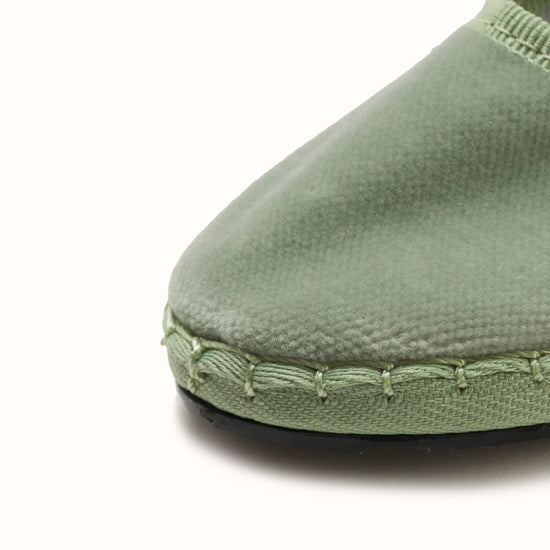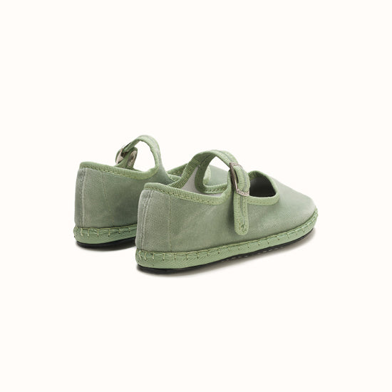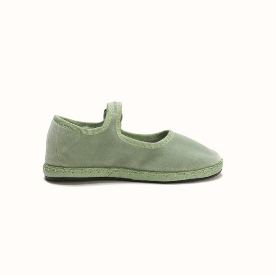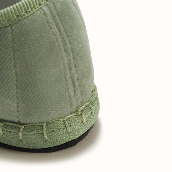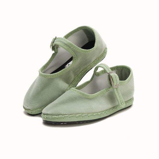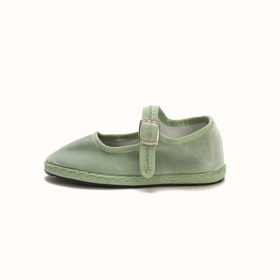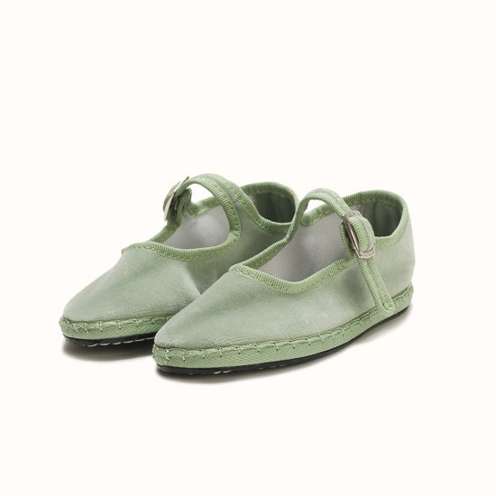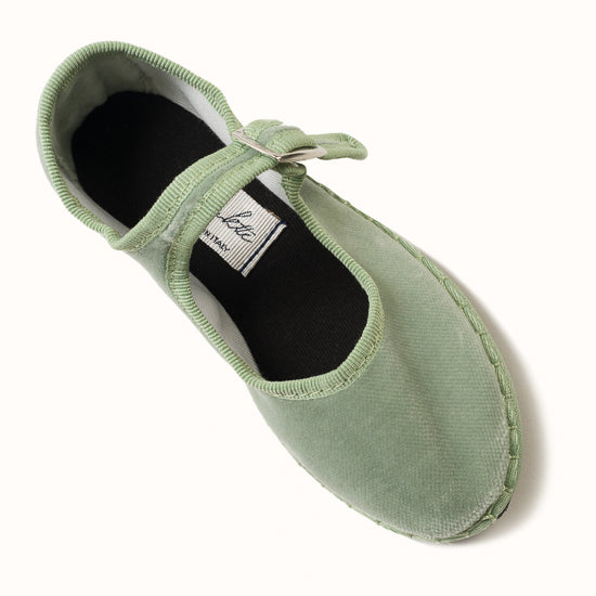 Mary-Jane en velours céladon et rebords en gros grain ton sur ton.