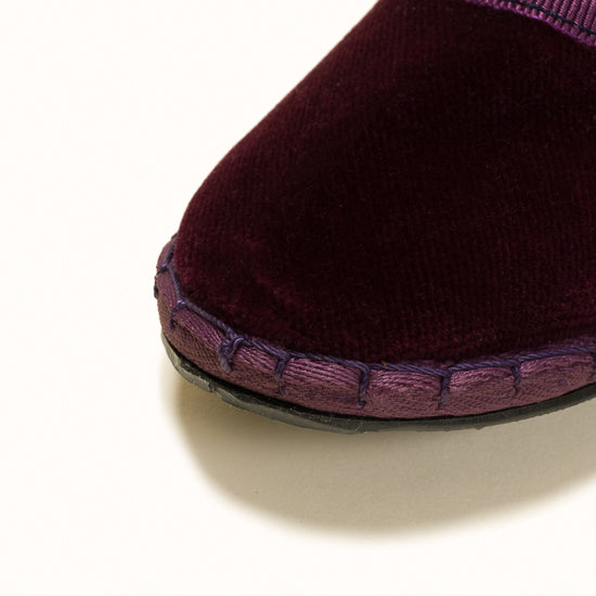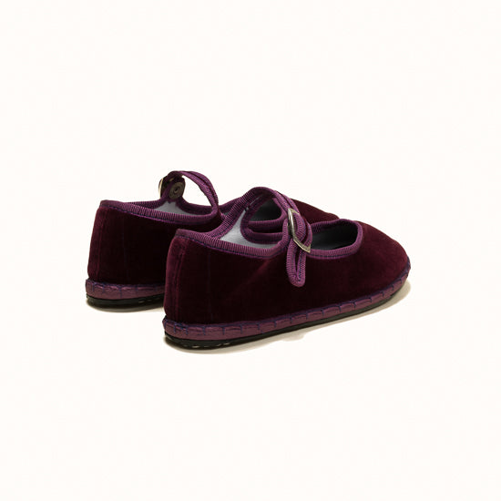 Mary-Jane en velours prune et rebords en gros grain ton sur ton.