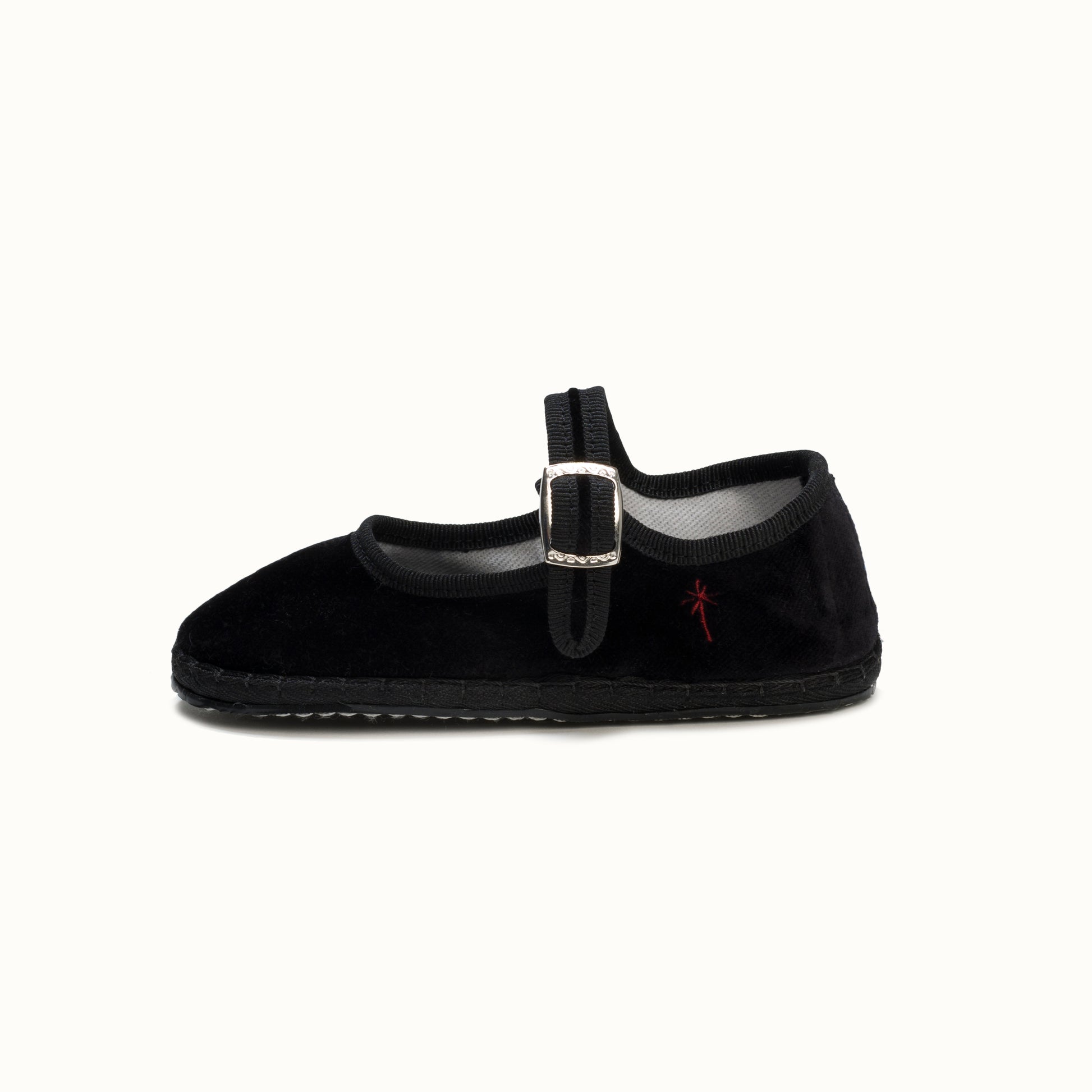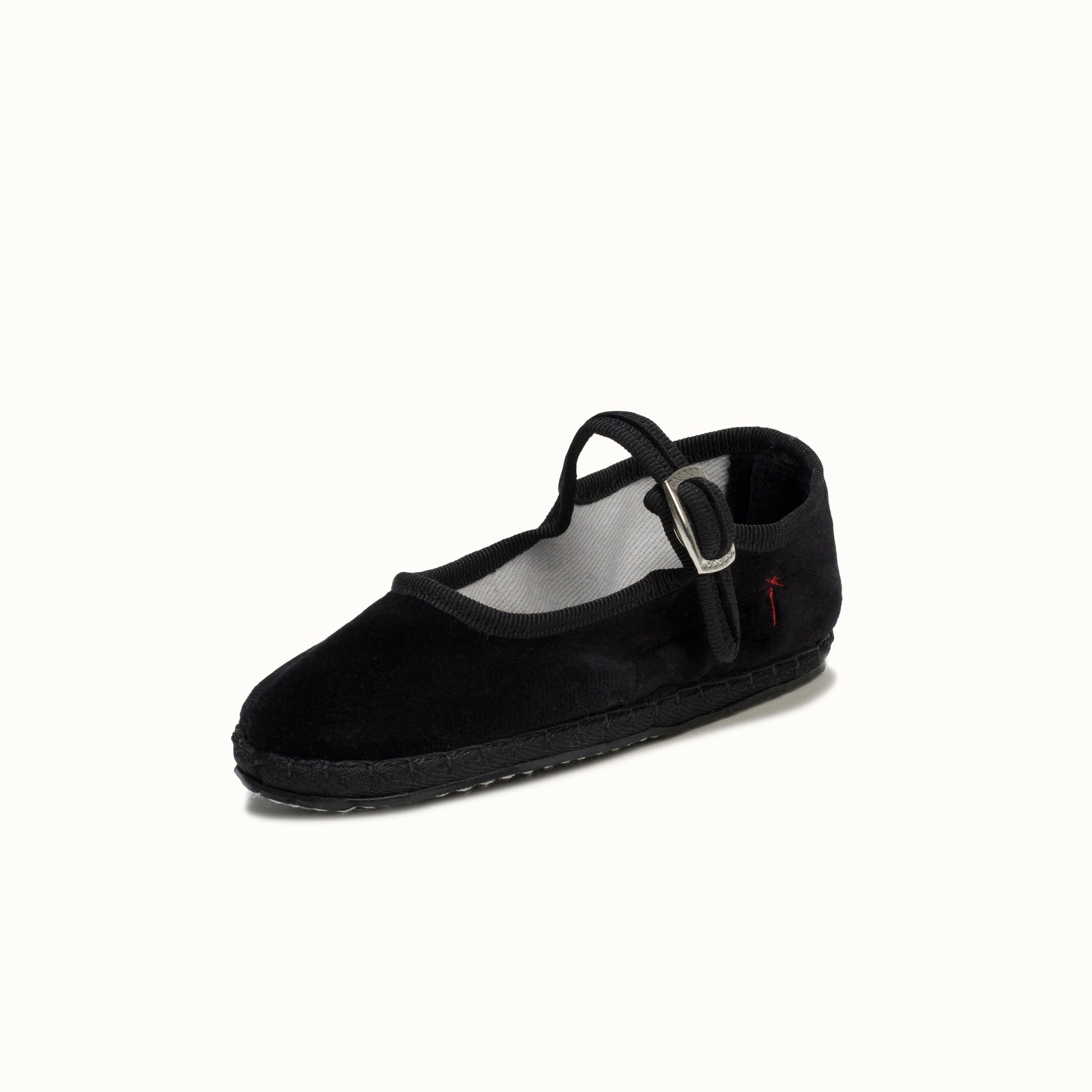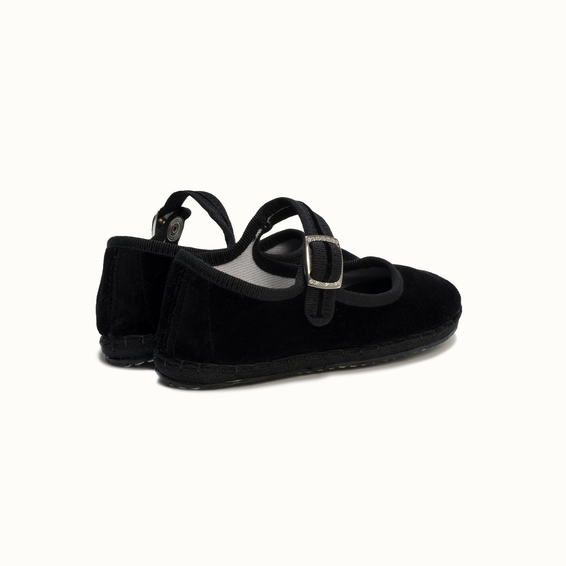 Mary-Jane en velours noir et rebords en gros grain ton sur ton.