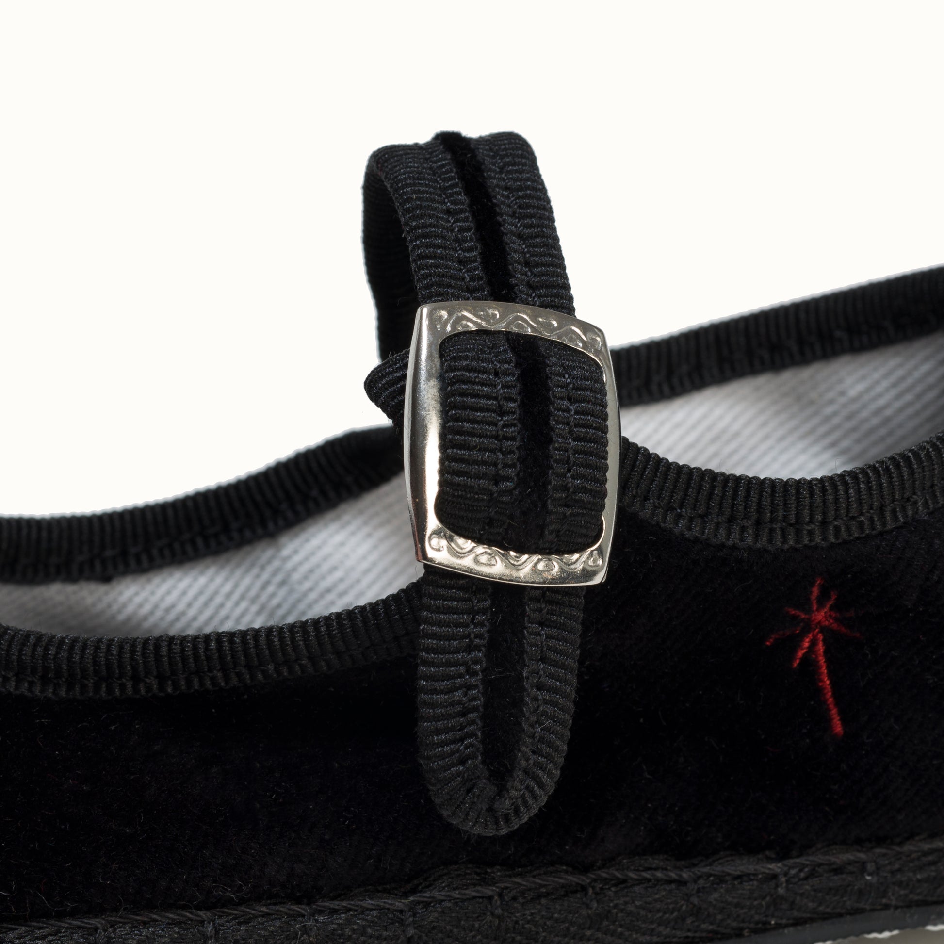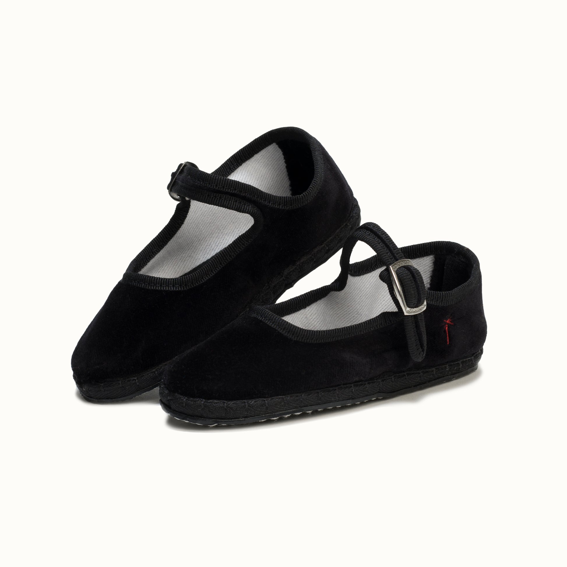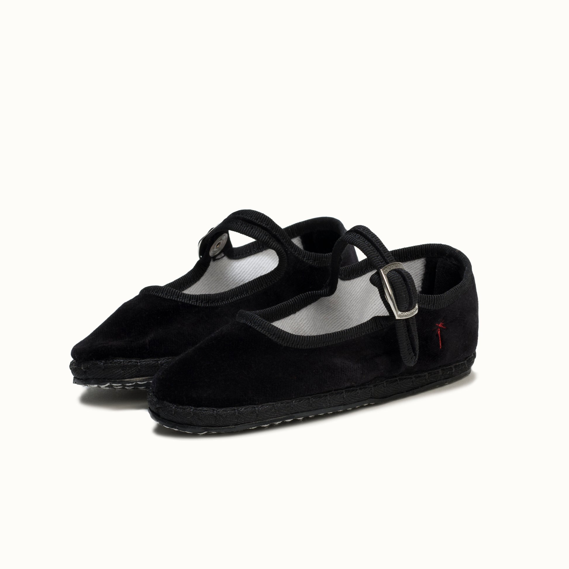 Mary-Jane en velours noir et rebords en gros grain ton sur ton.