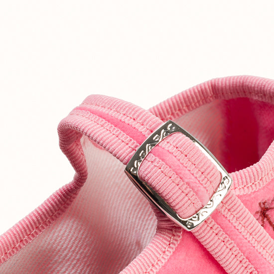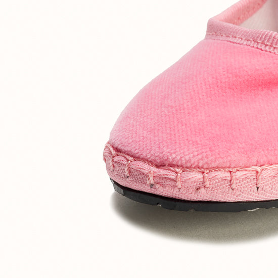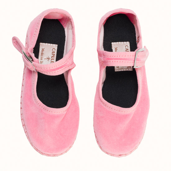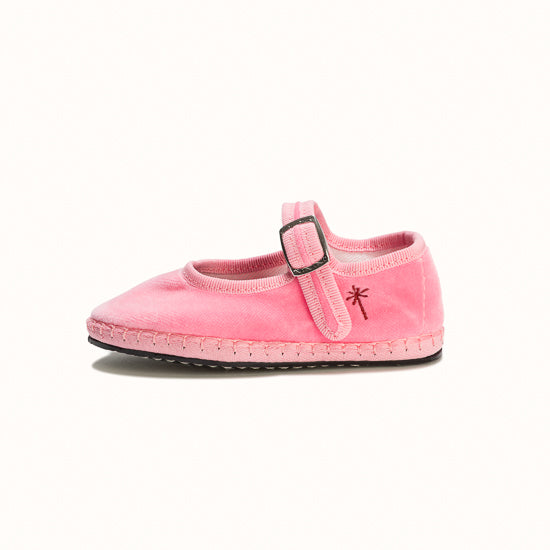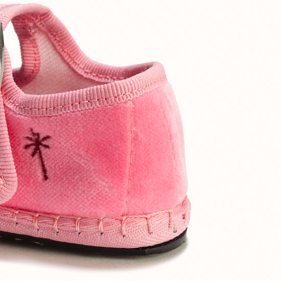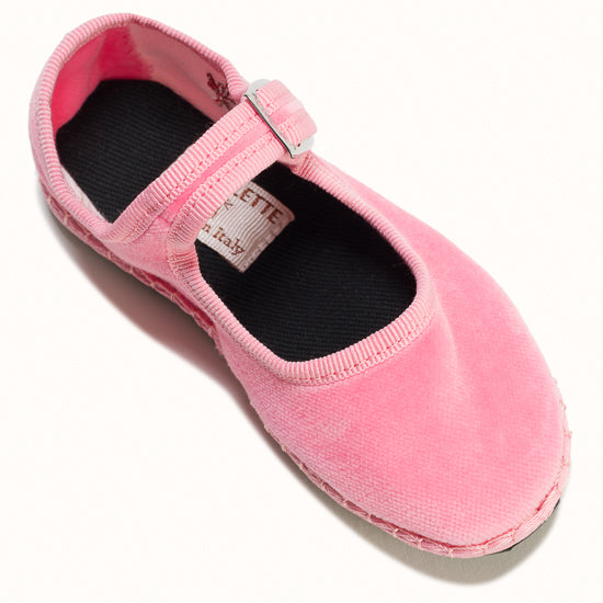 Mary-Jane en velours rose bonbon et rebords en gros grain ton sur ton.