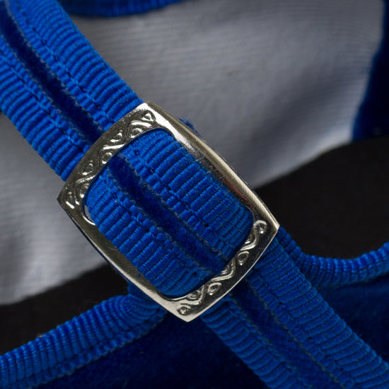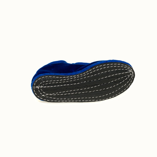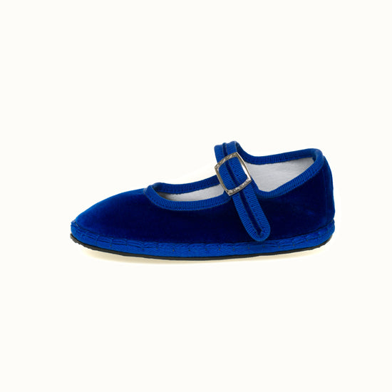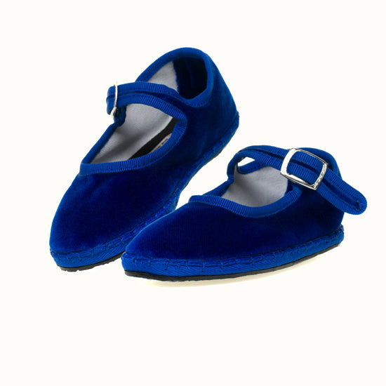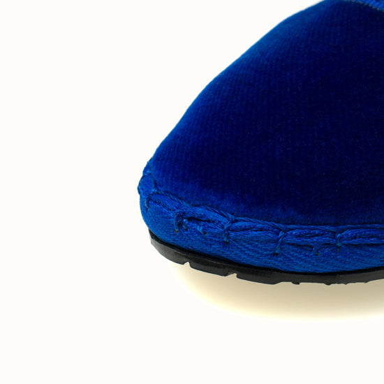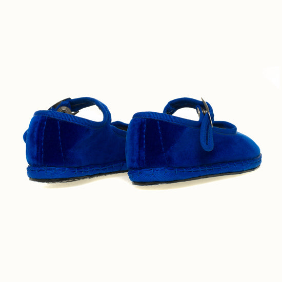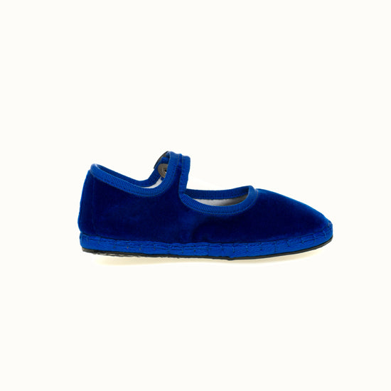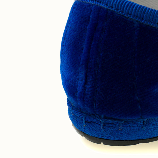 Mary-Jane en velours bleu roi et rebords en gros grain ton sur ton.