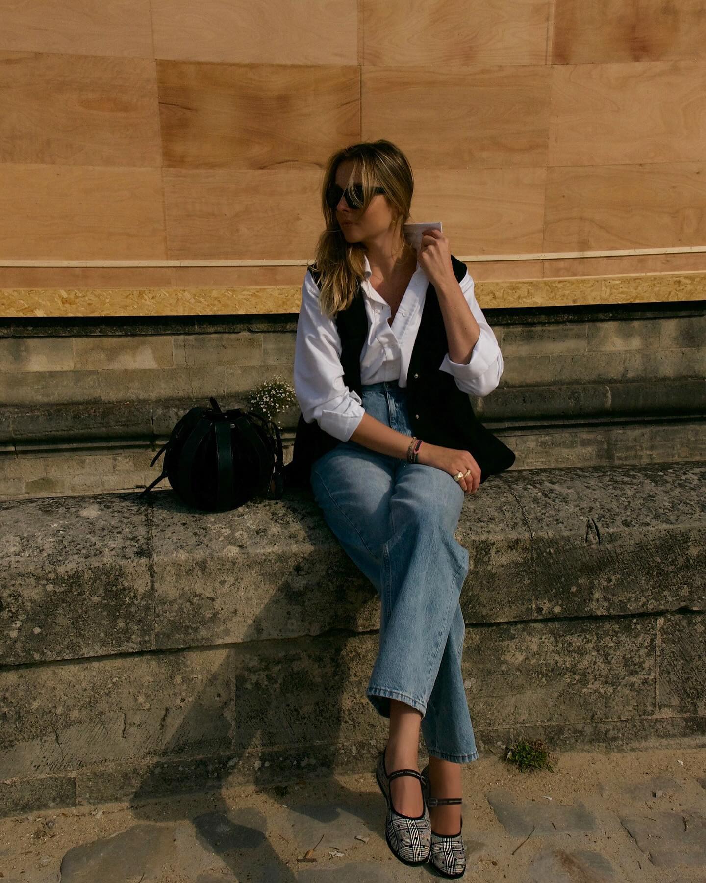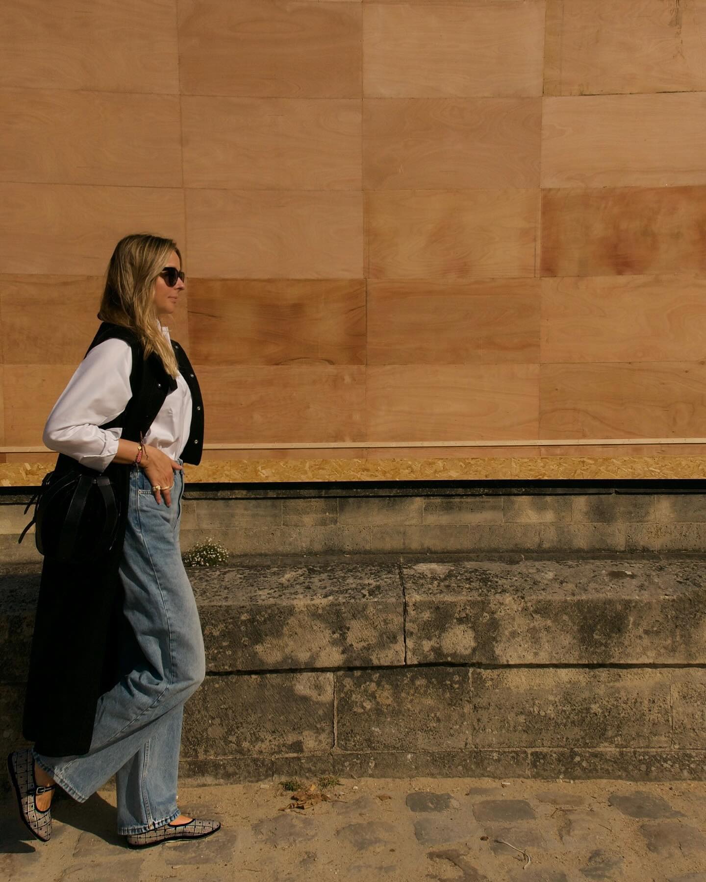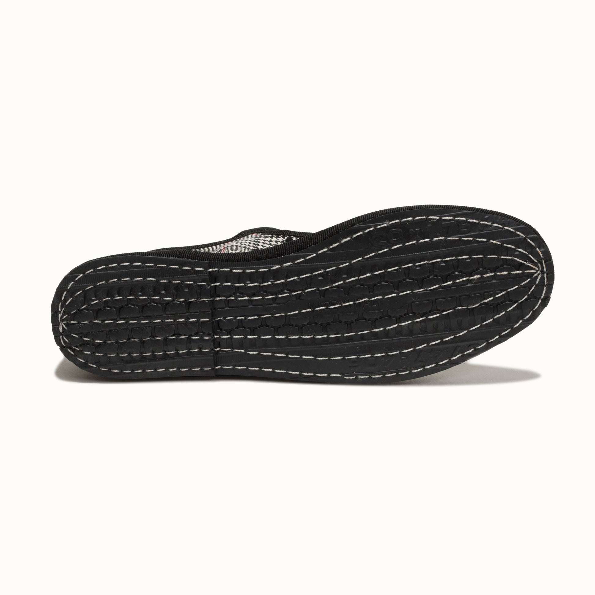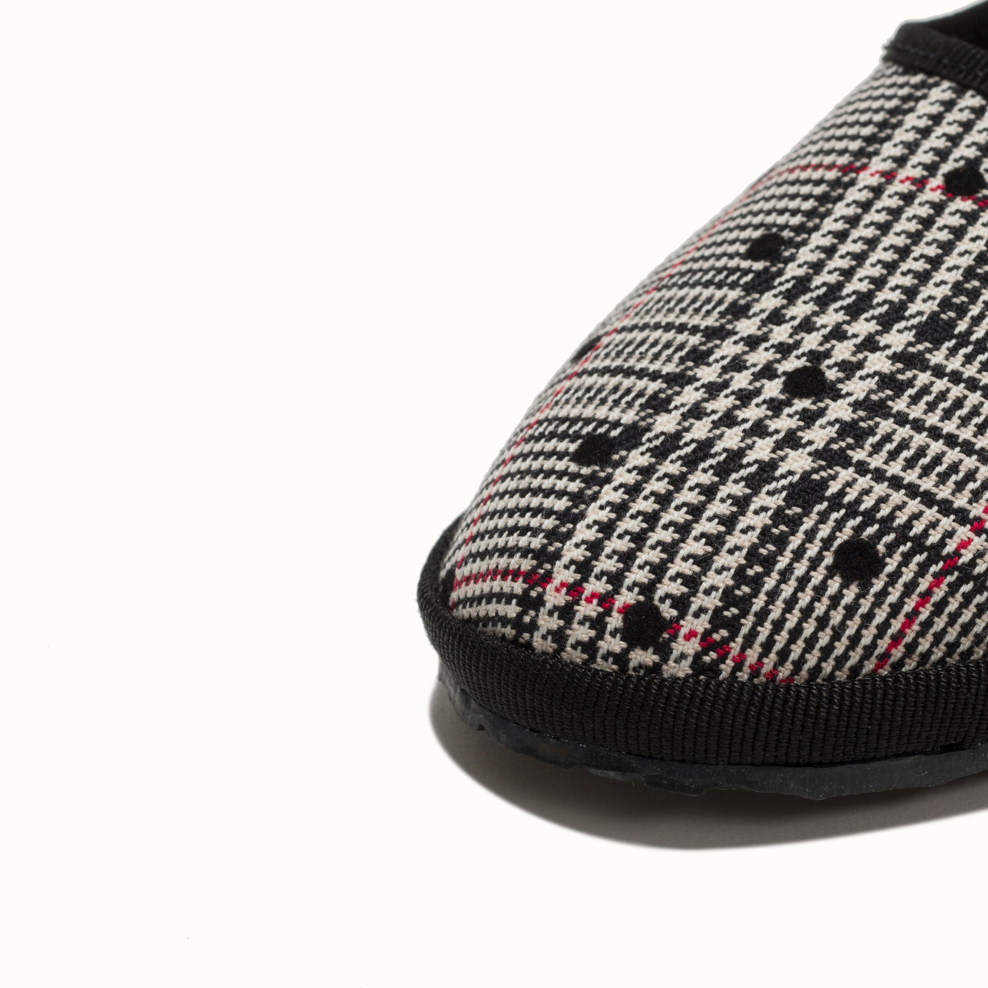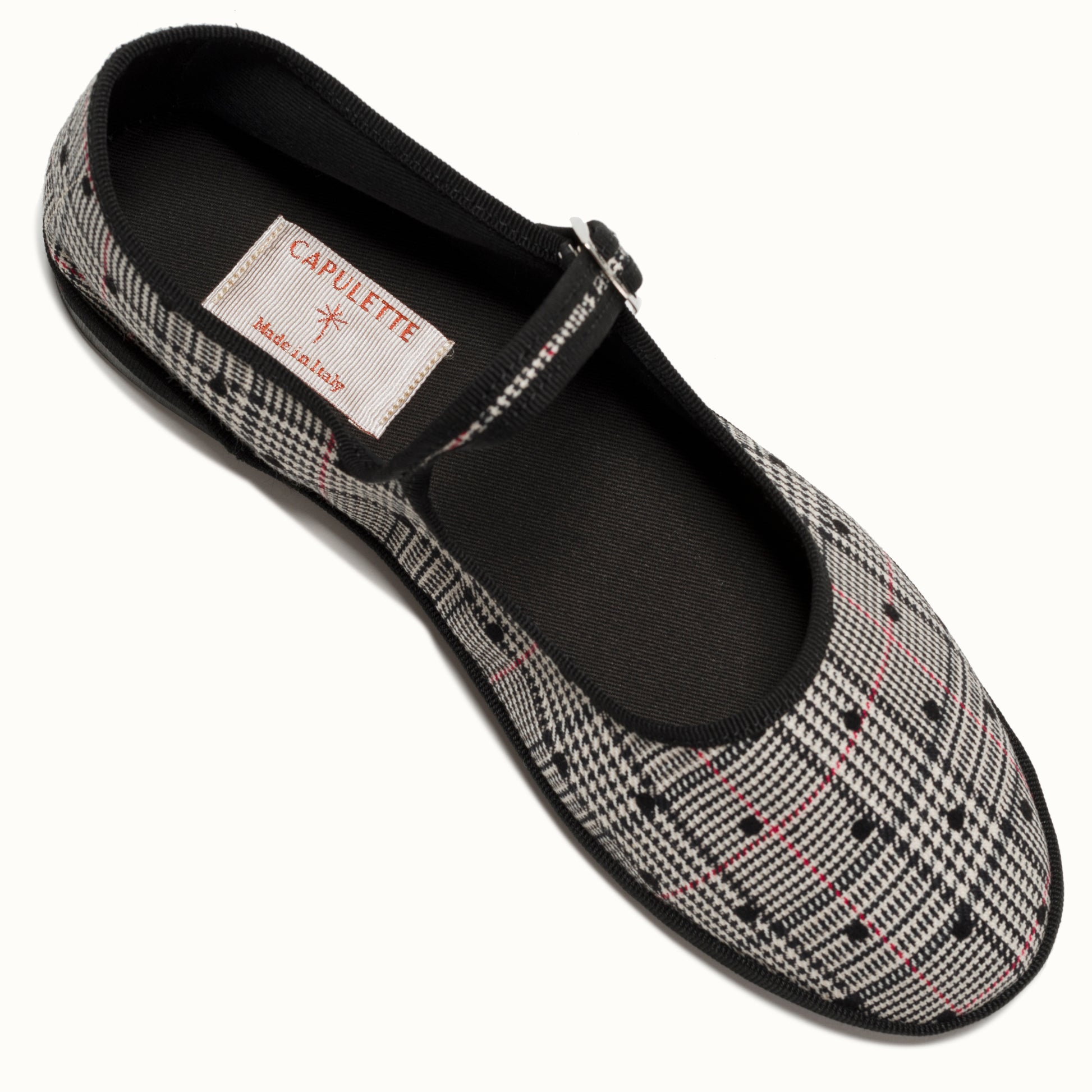 Maryjane embout rond en tissu Prince de Galles noir à pois noirs.