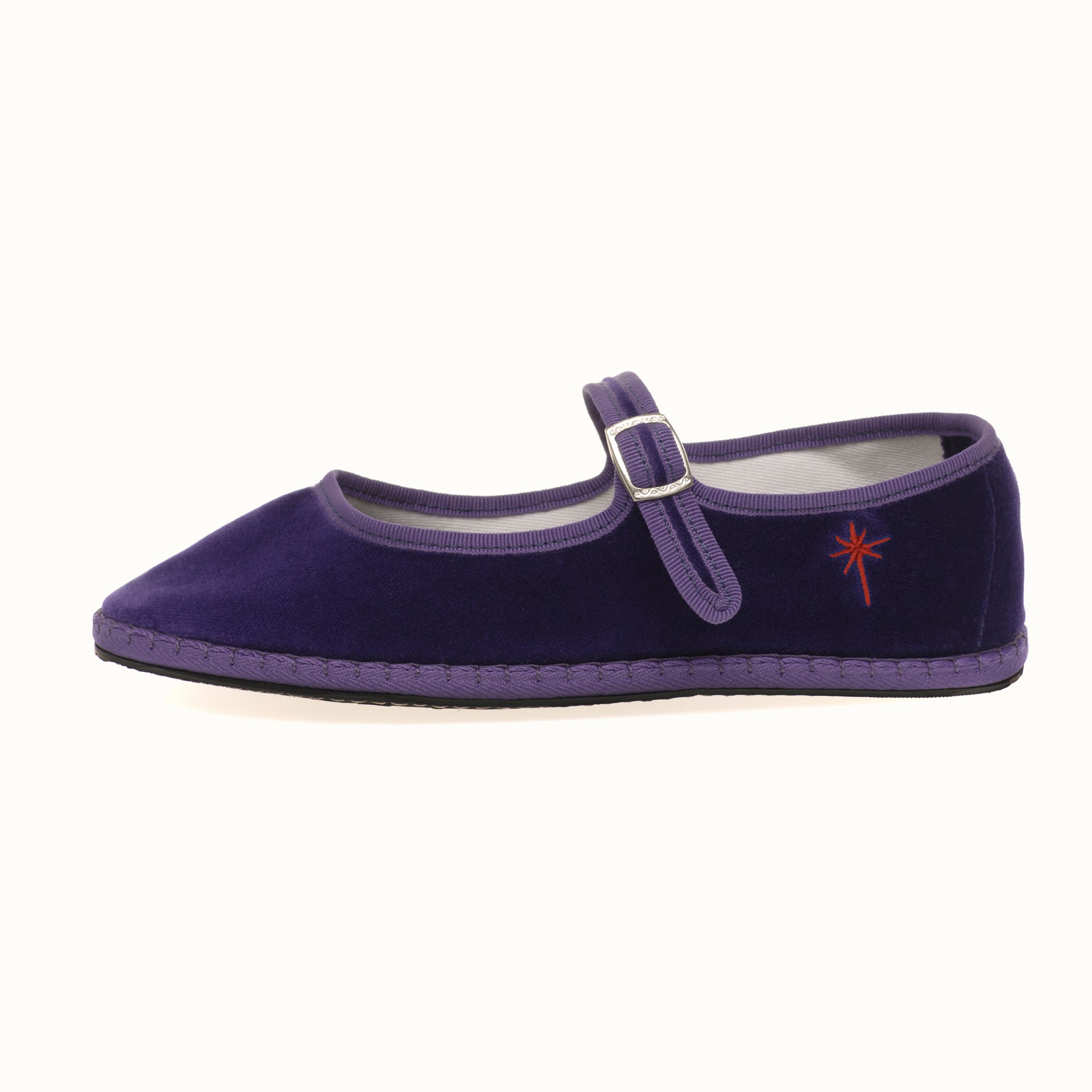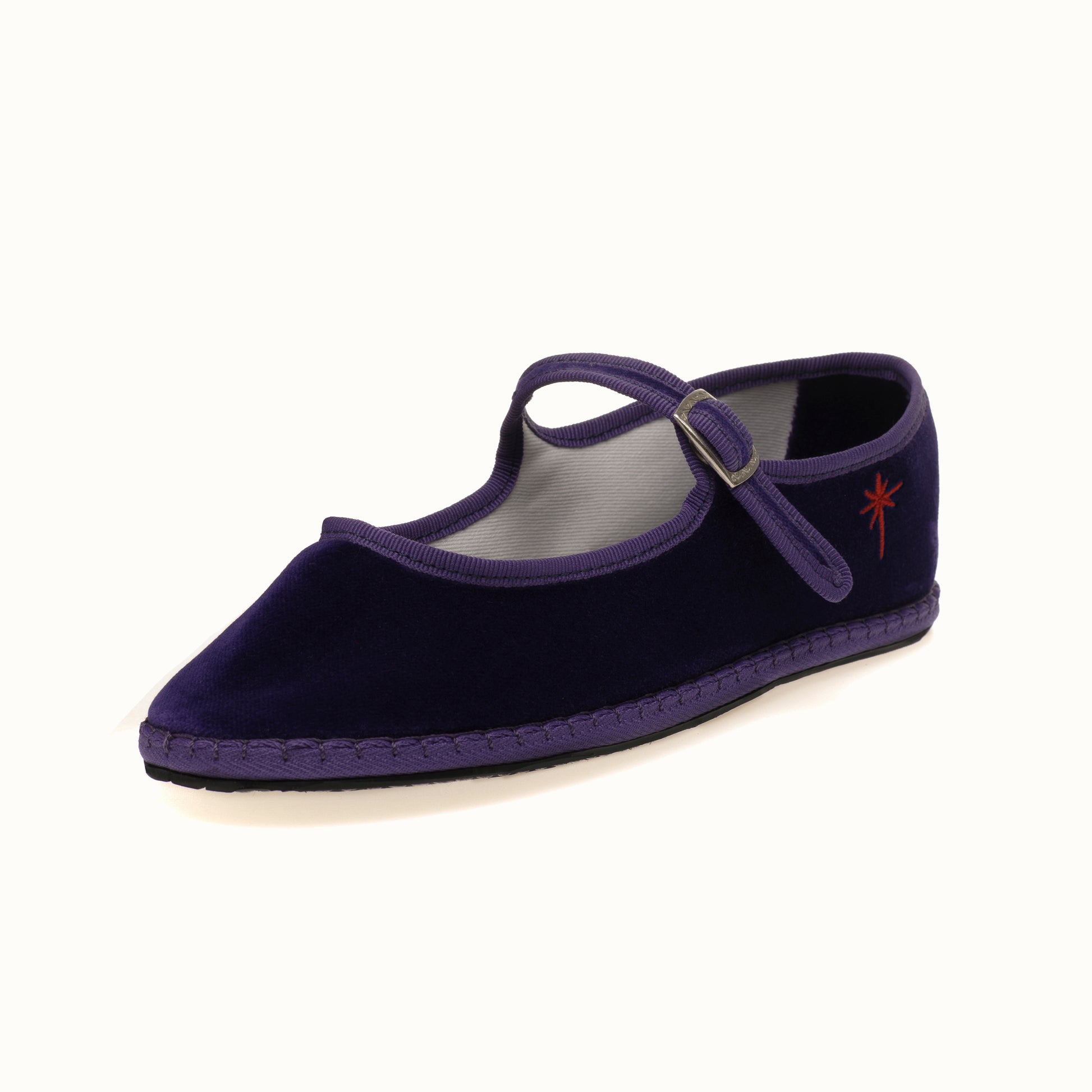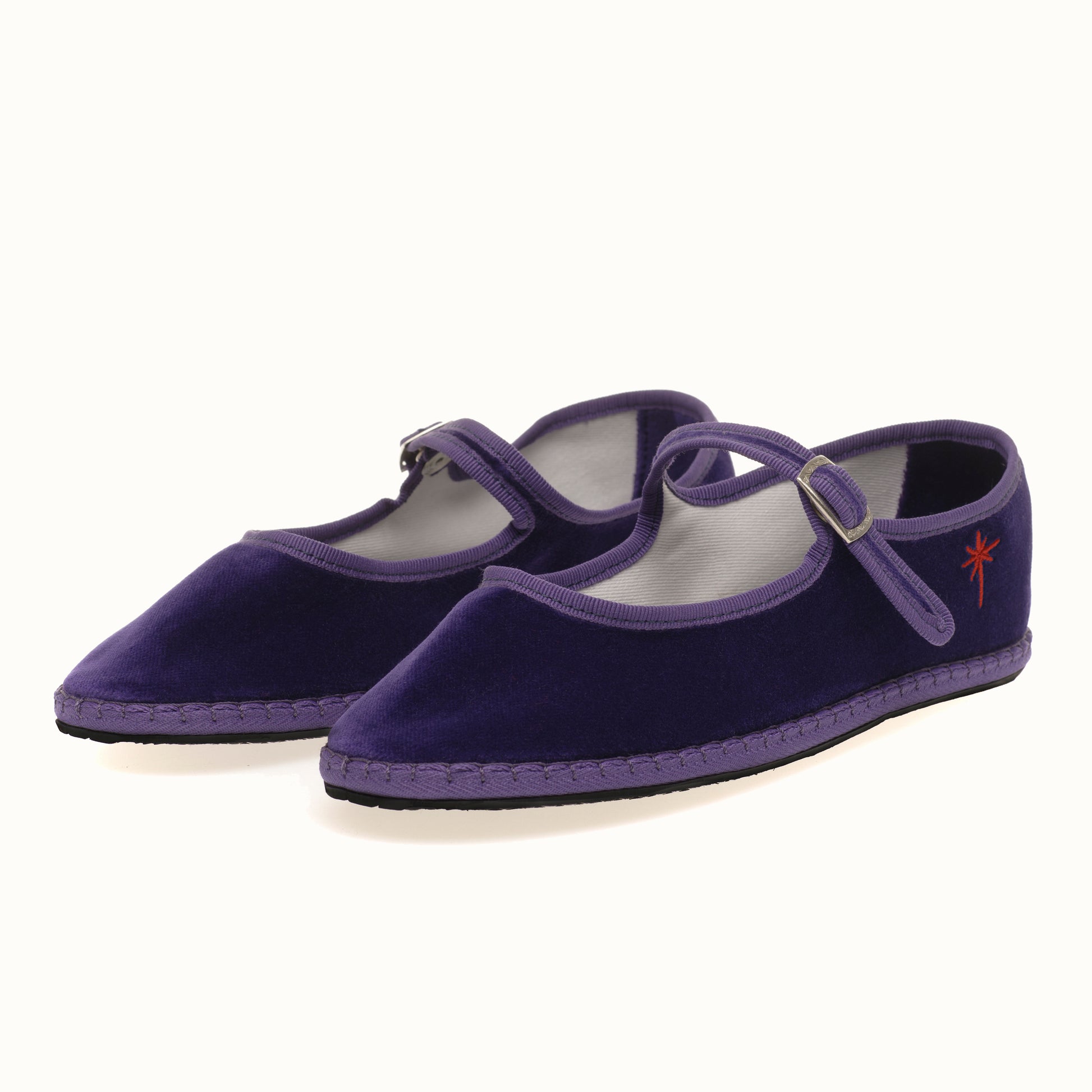 Mary-Jane en velours violet et rebords en gros grain ton sur ton.