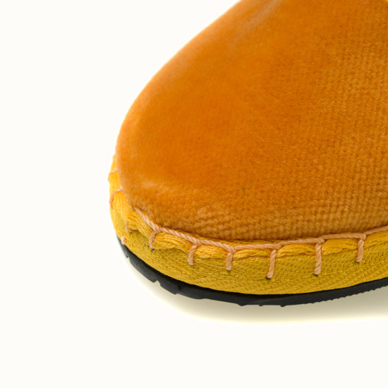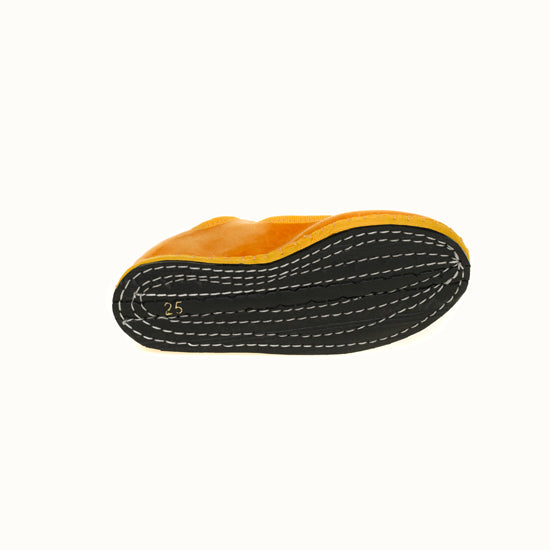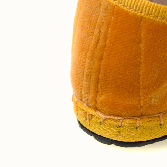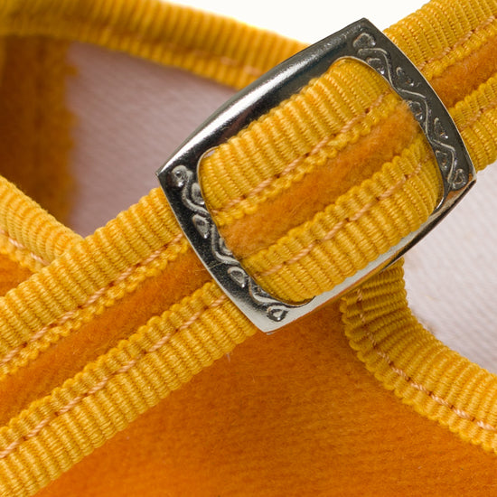 Mary-Jane en velours jaune et rebords en gros grain ton sur ton.