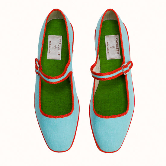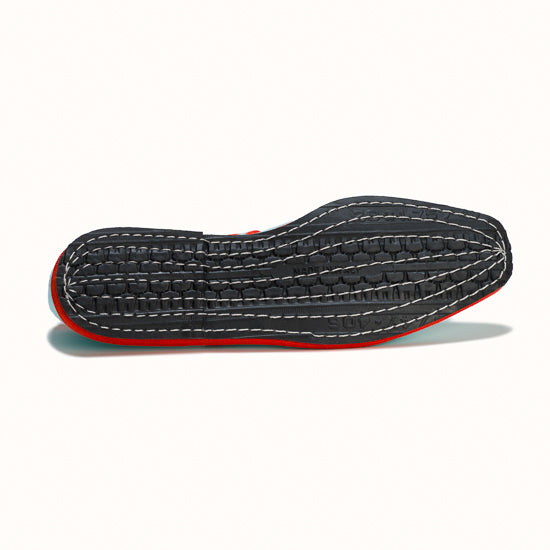 La semelle intérieure est en shantung vert, et la semelle extérieure est en traditionnel pneu de vélo.