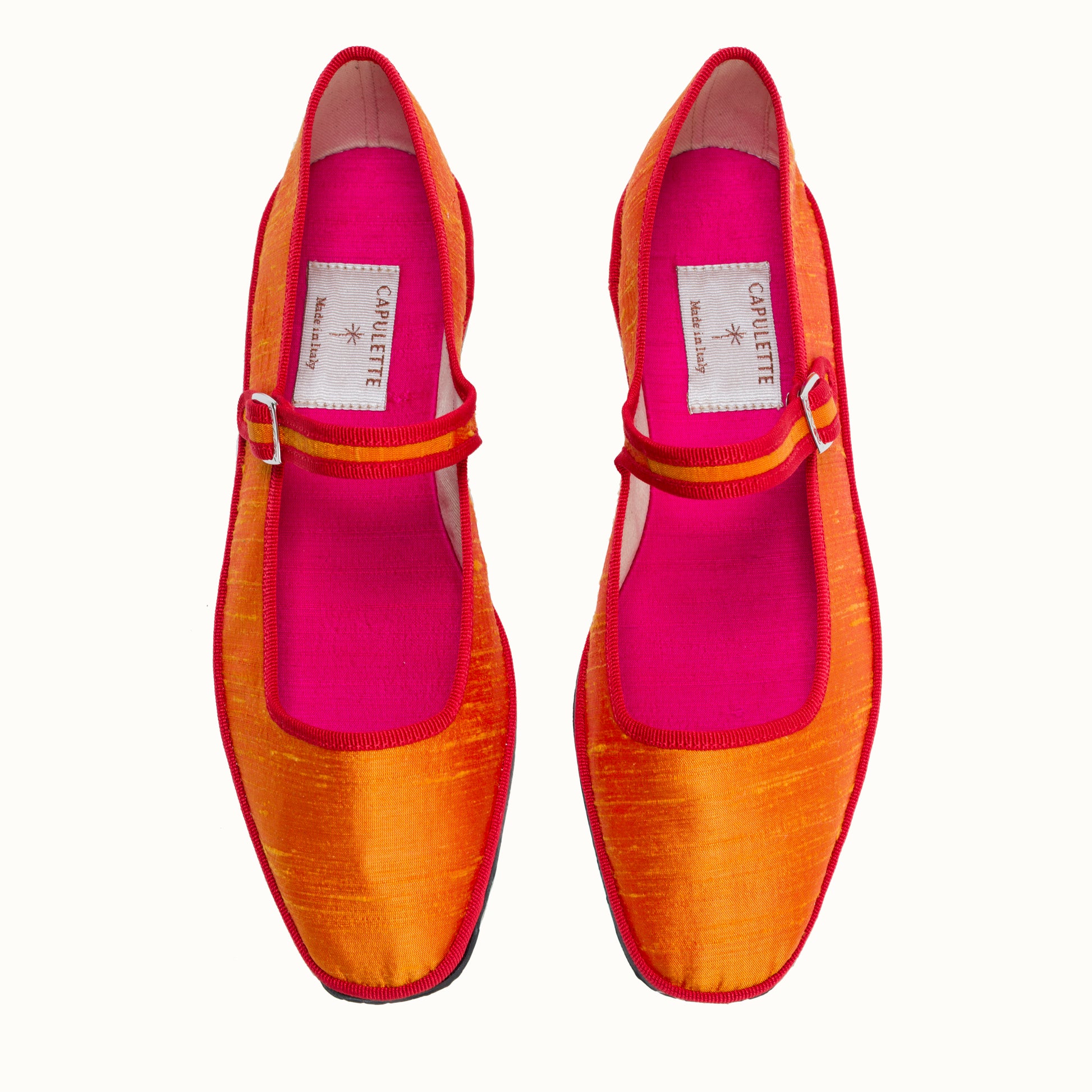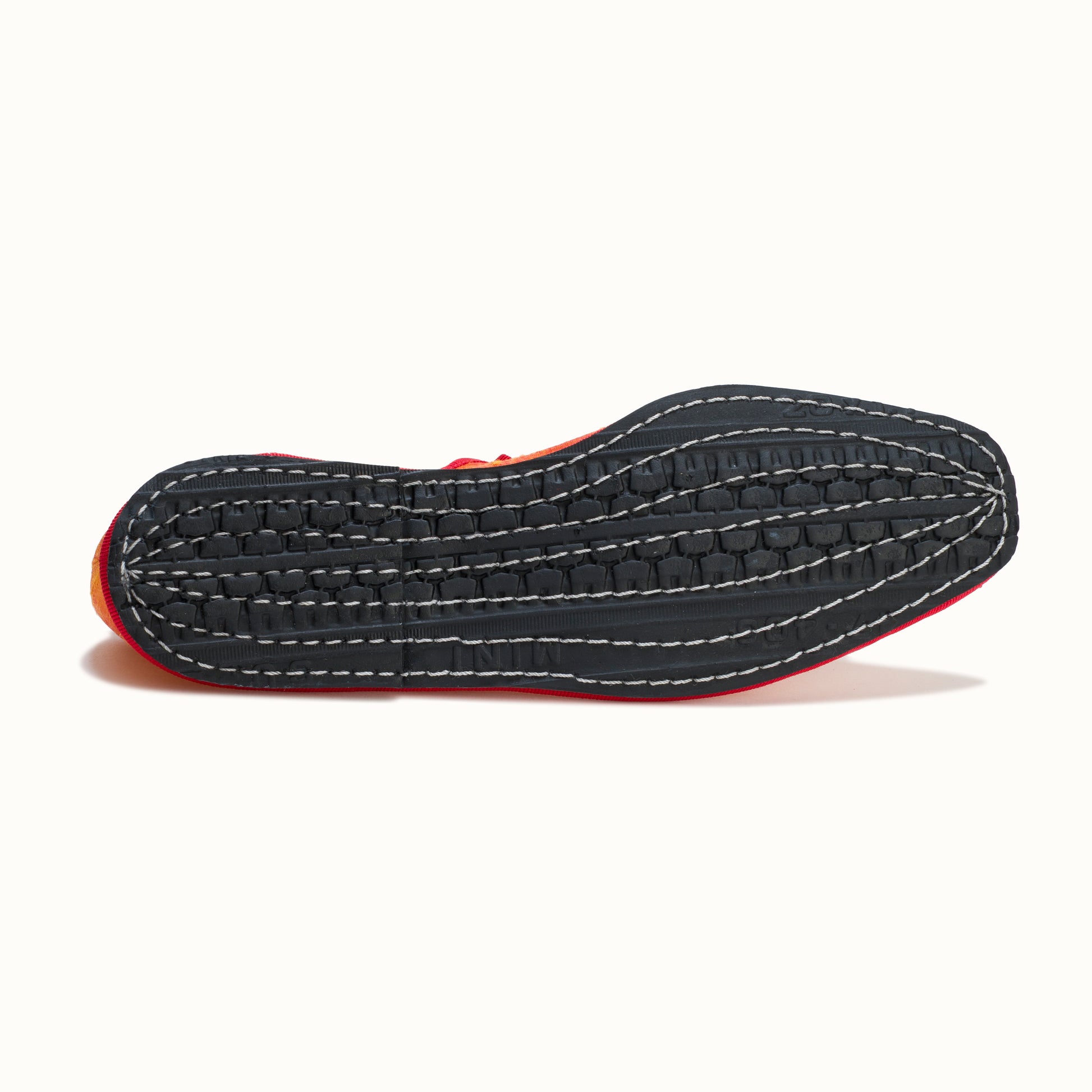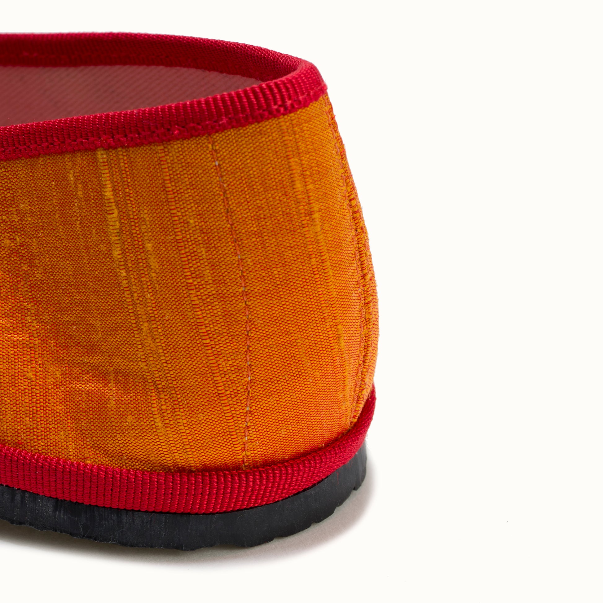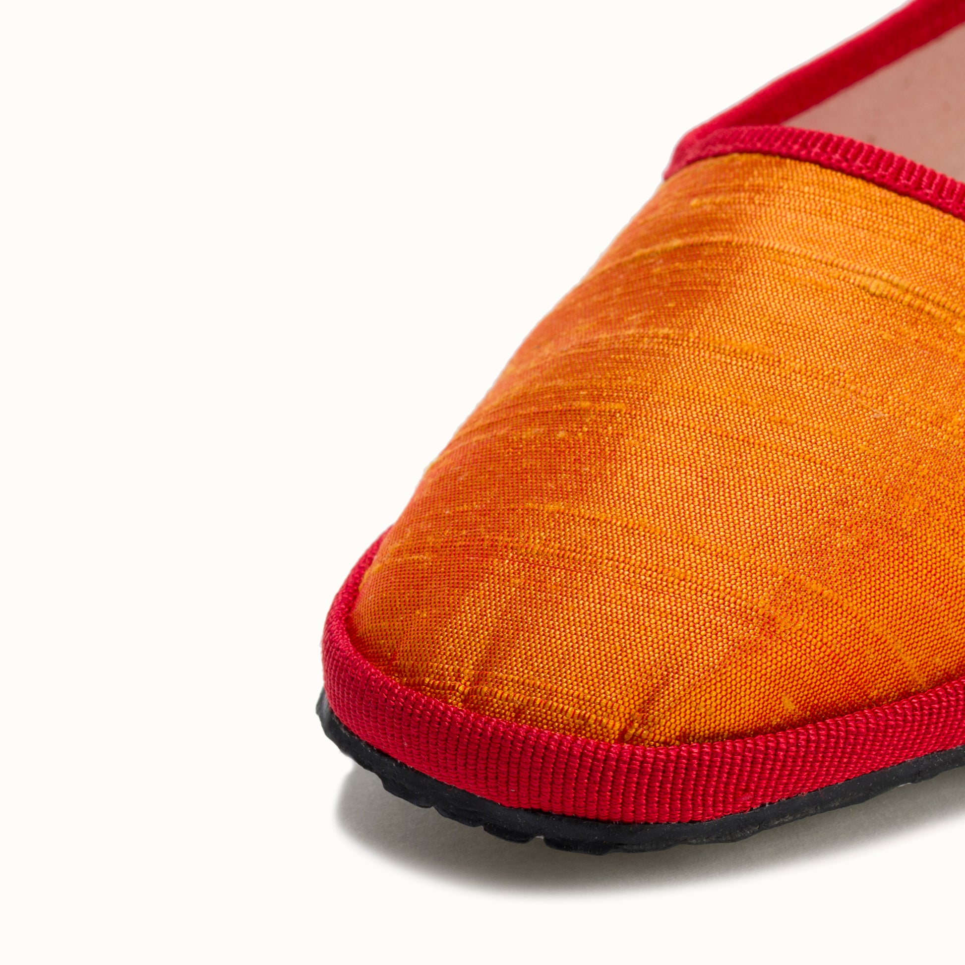 La semelle intérieure est en soie sauvage rose, et la semelle extérieure est en traditionnel pneu de vélo.