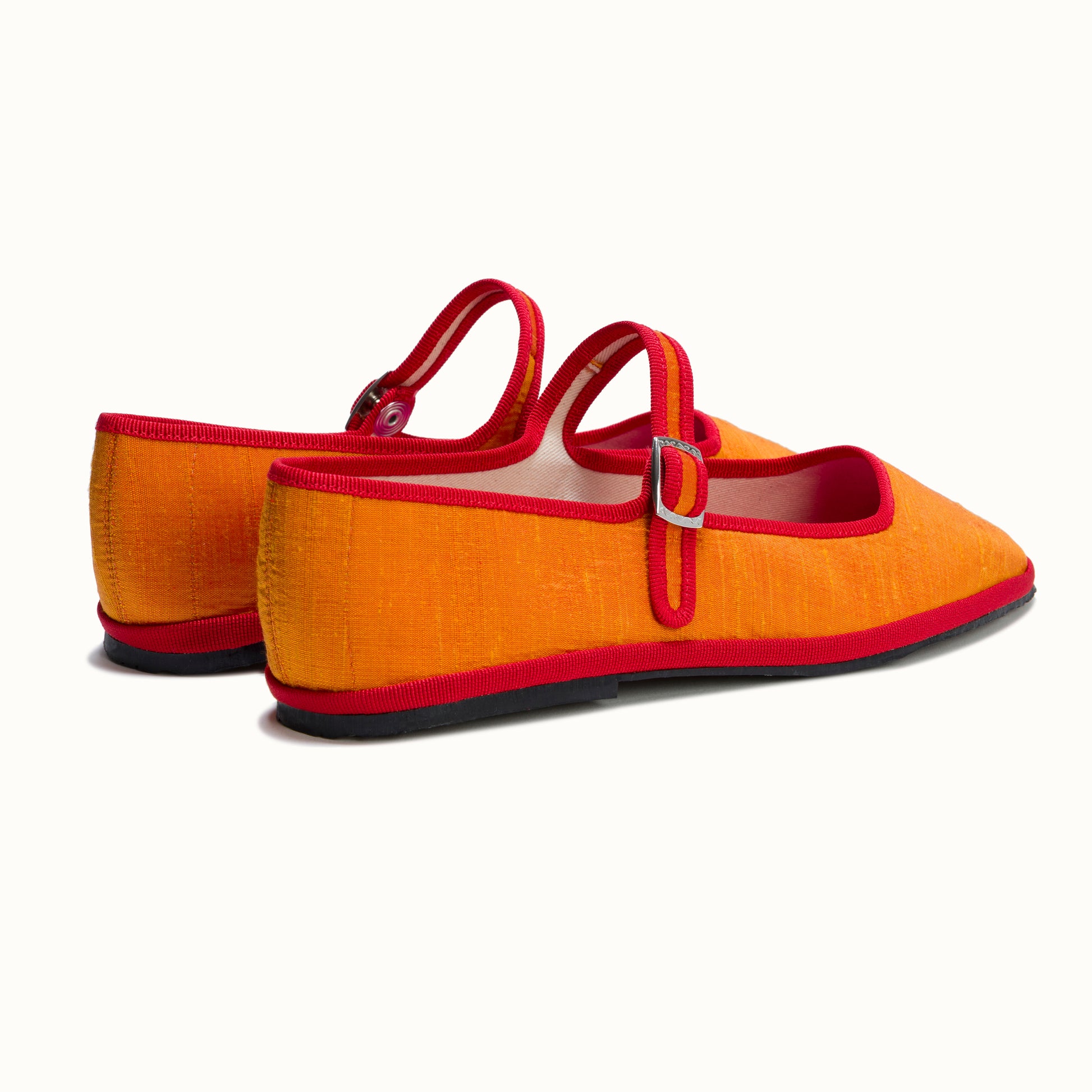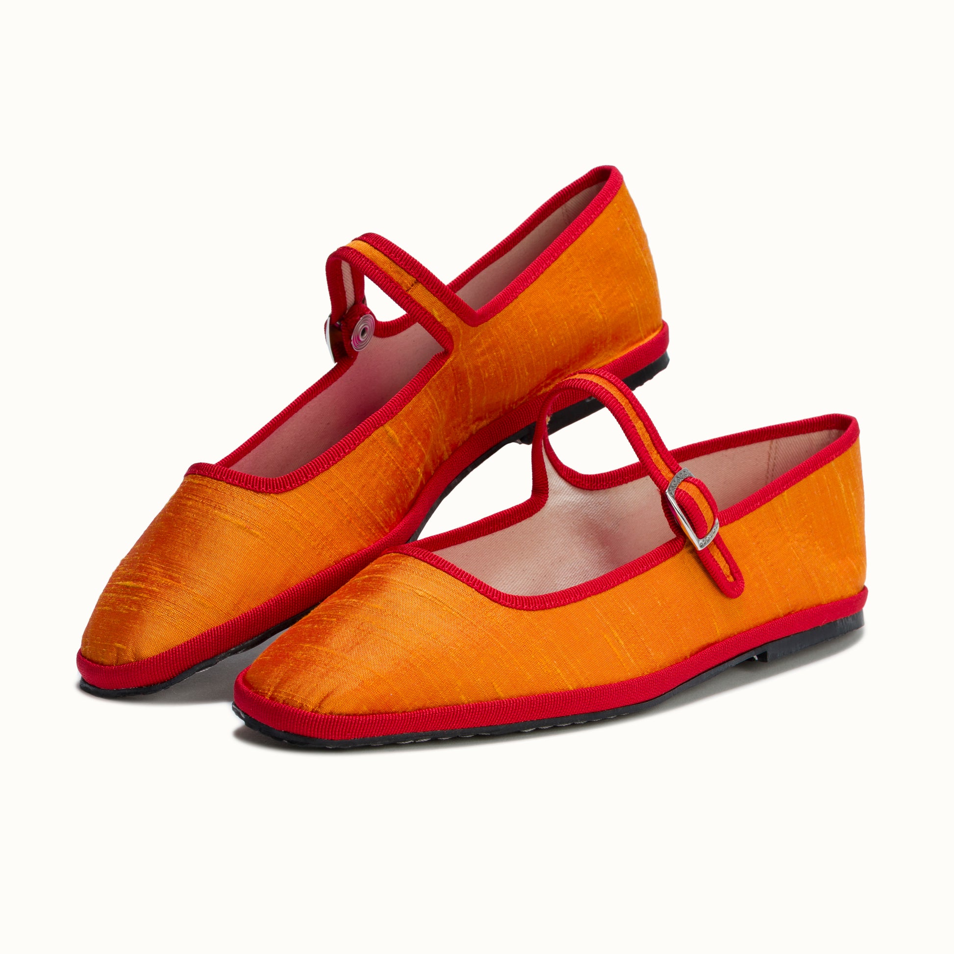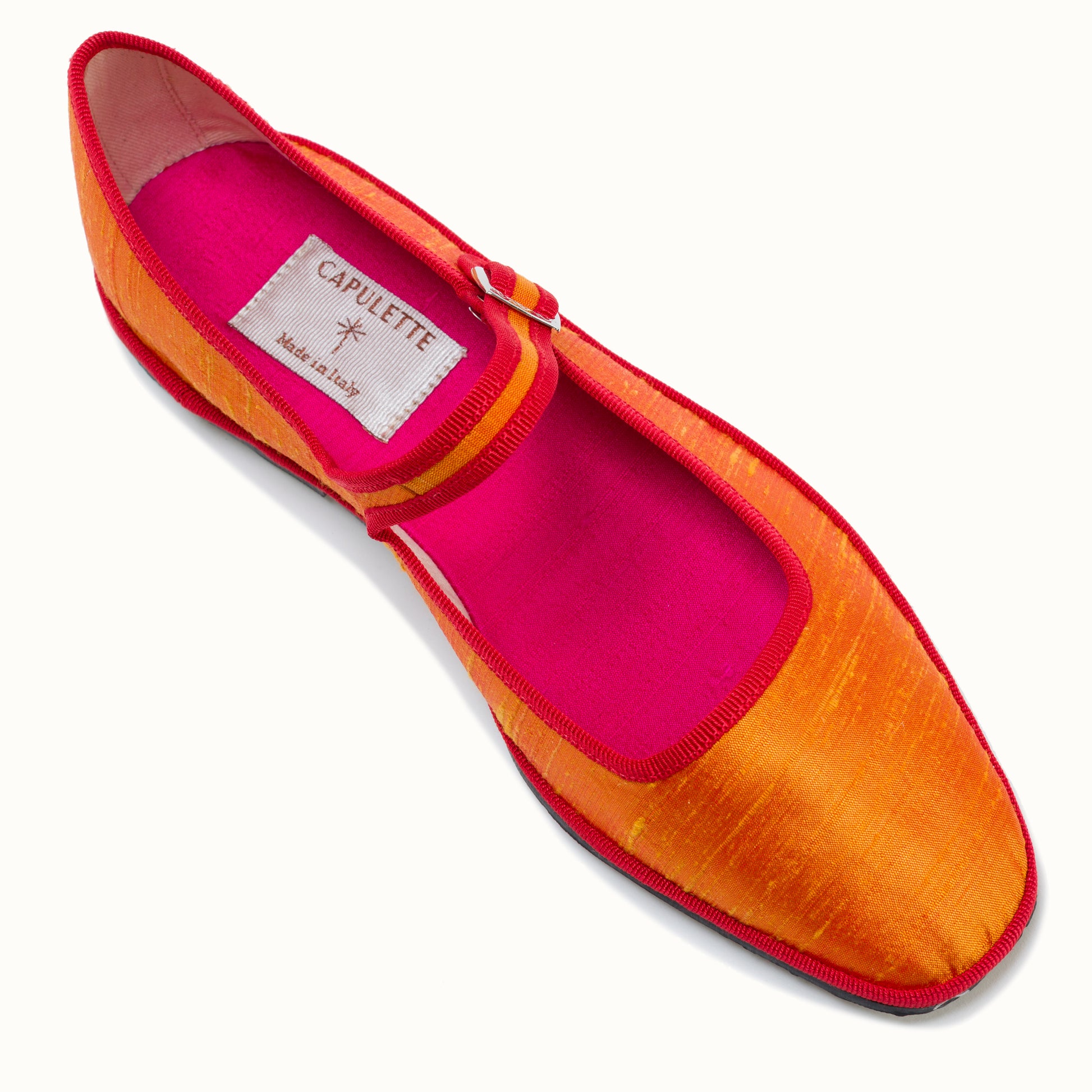 La semelle intérieure est en soie sauvage rose, et la semelle extérieure est en traditionnel pneu de vélo.