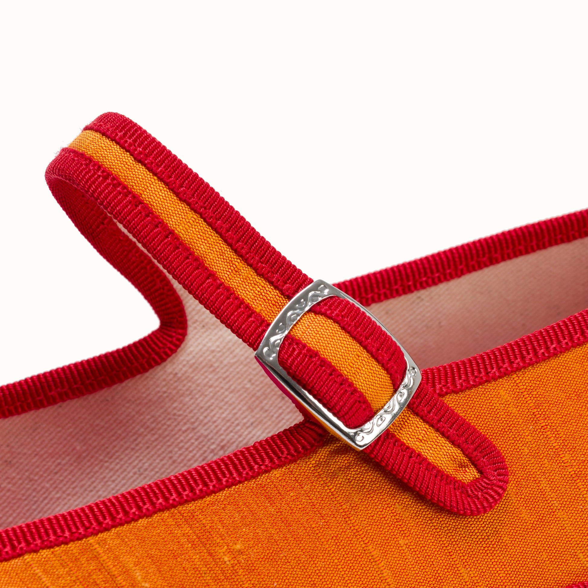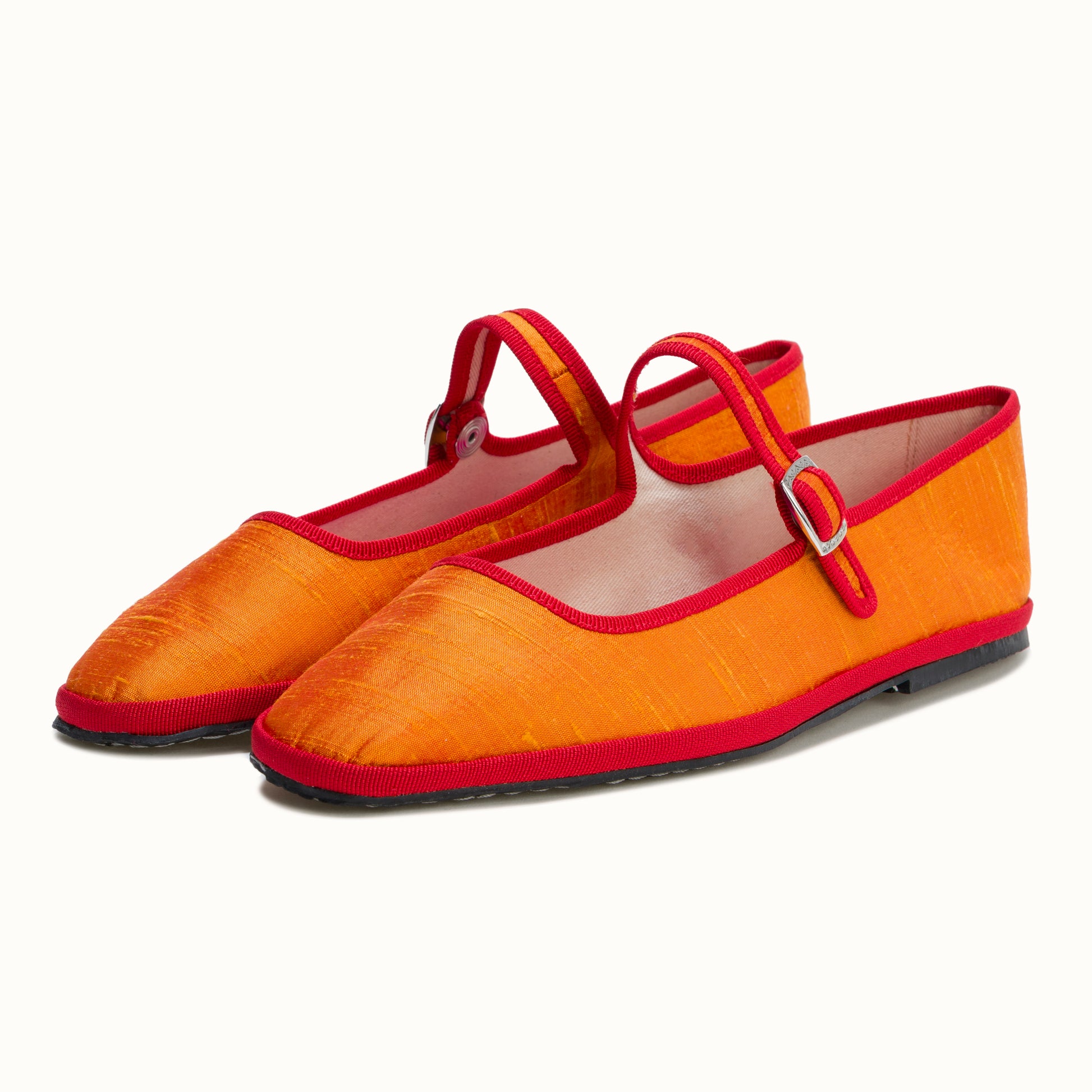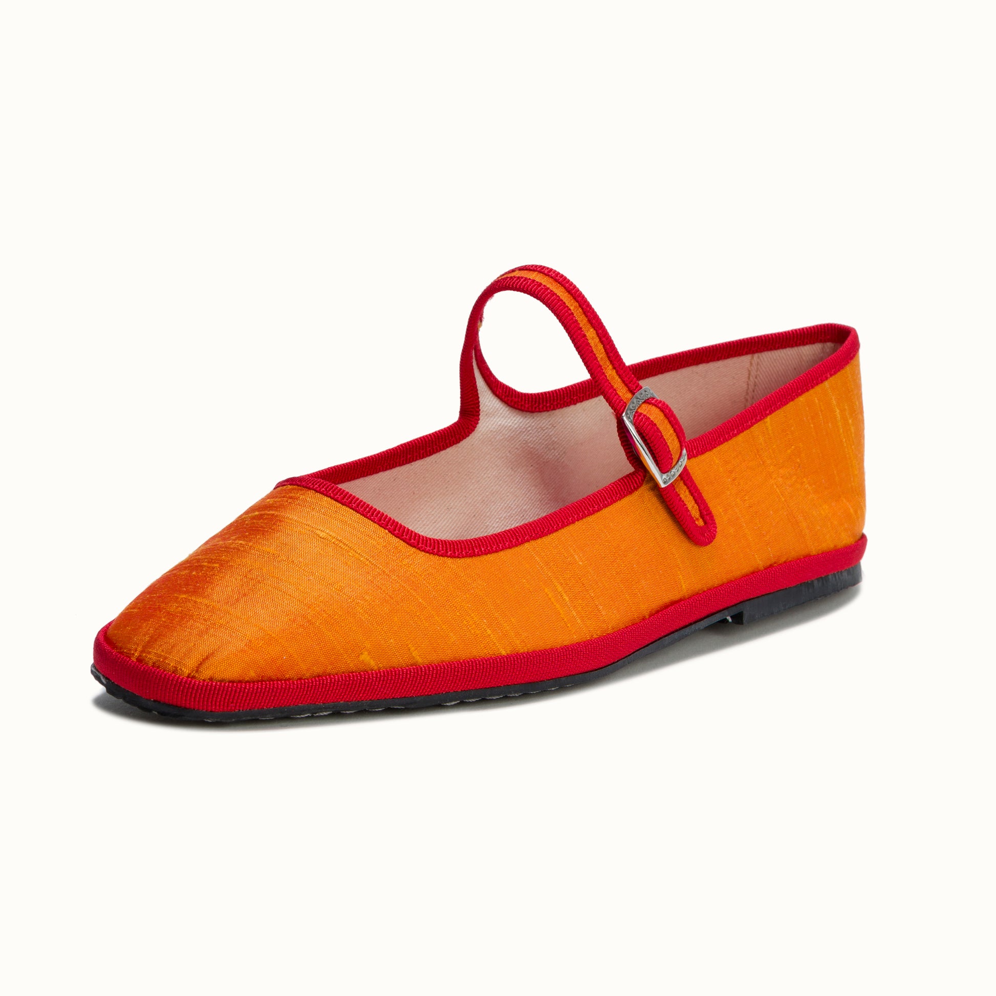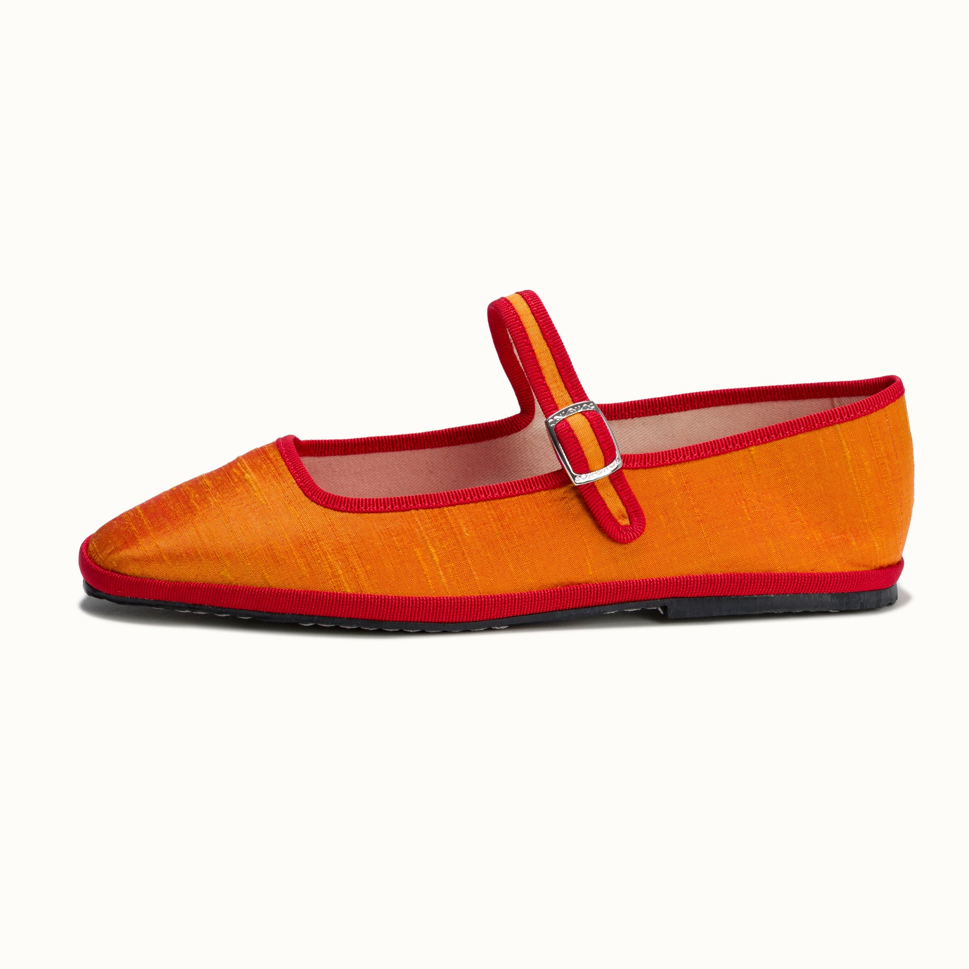 La semelle intérieure est en soie sauvage rose, et la semelle extérieure est en traditionnel pneu de vélo.