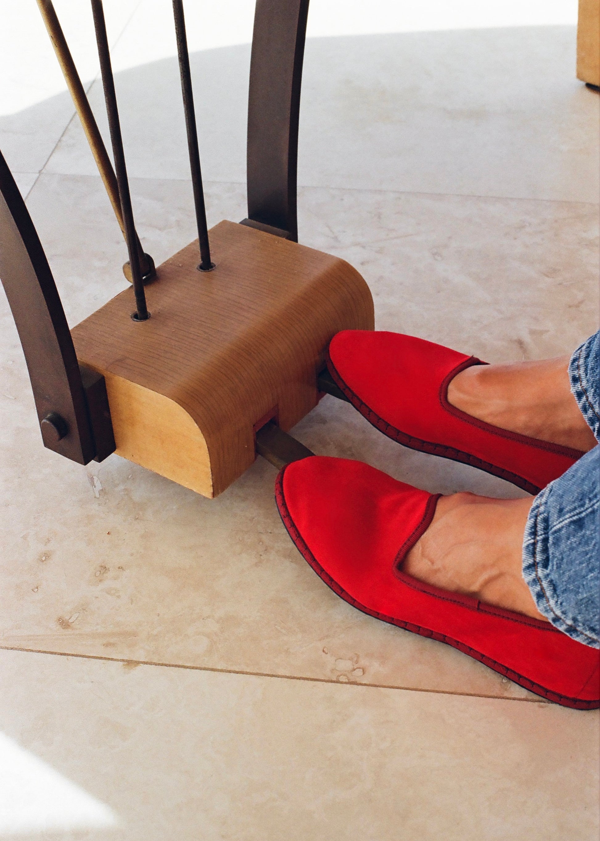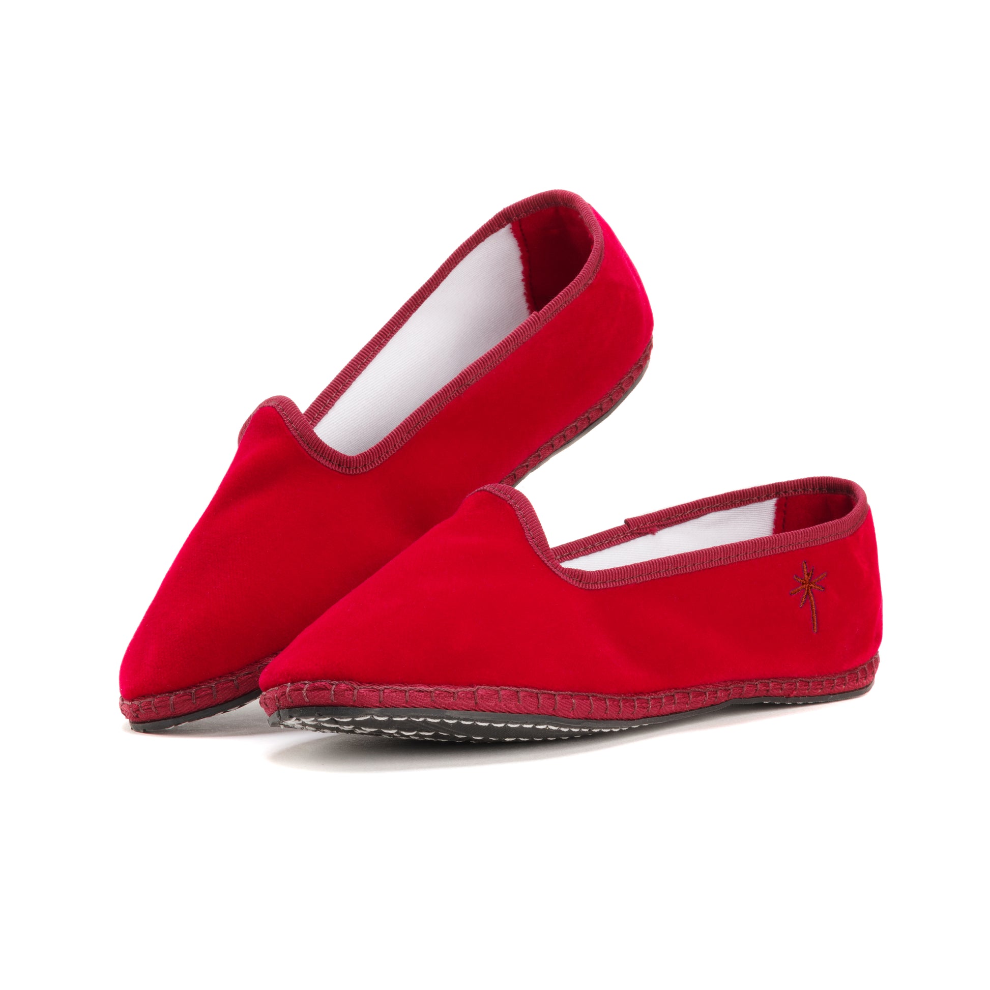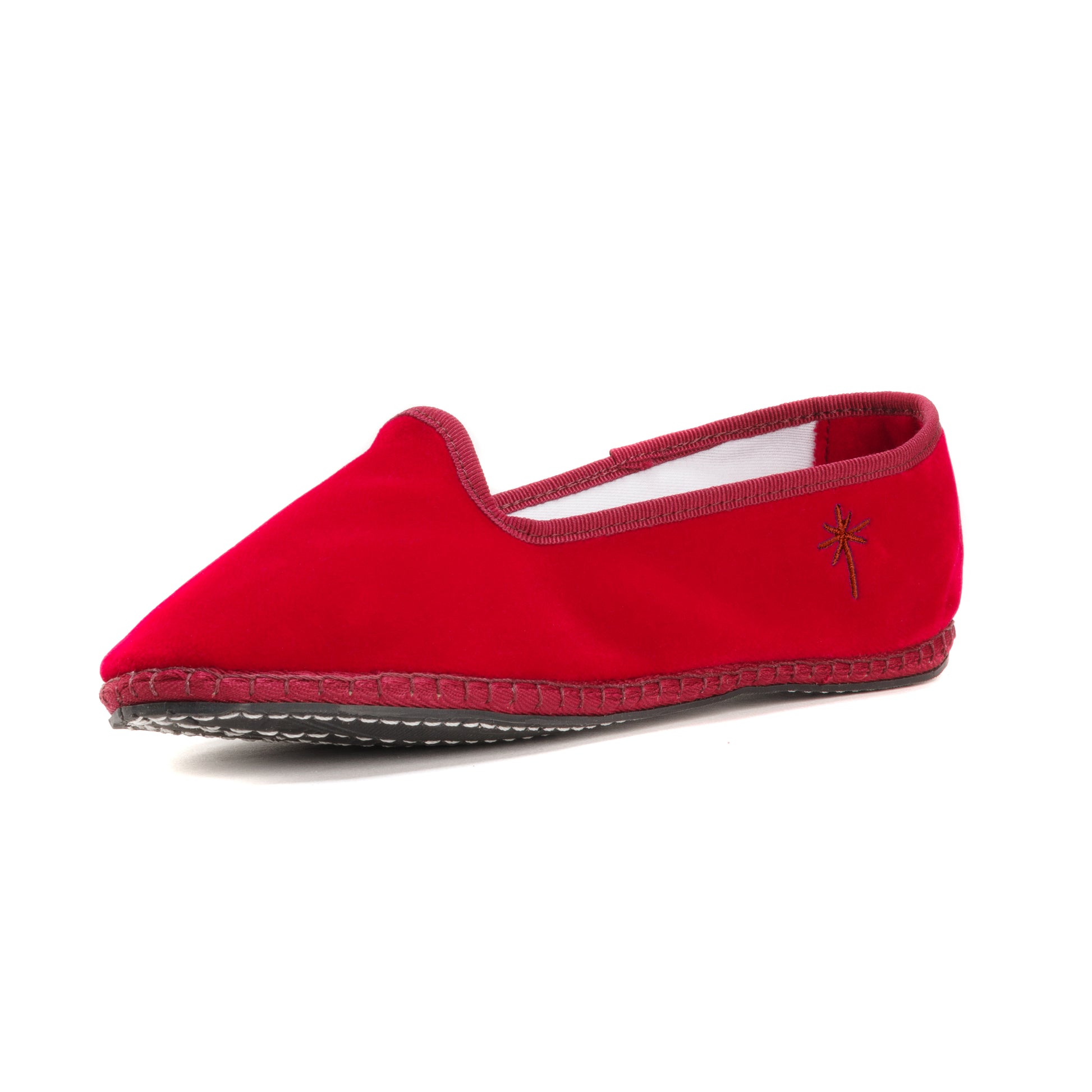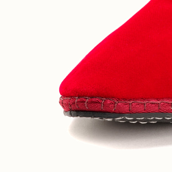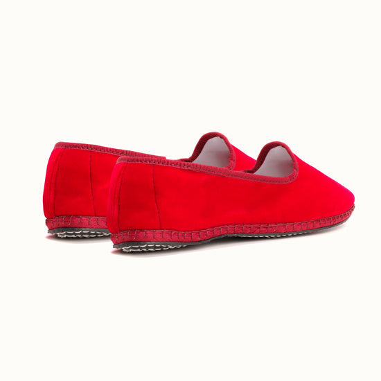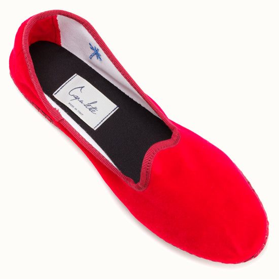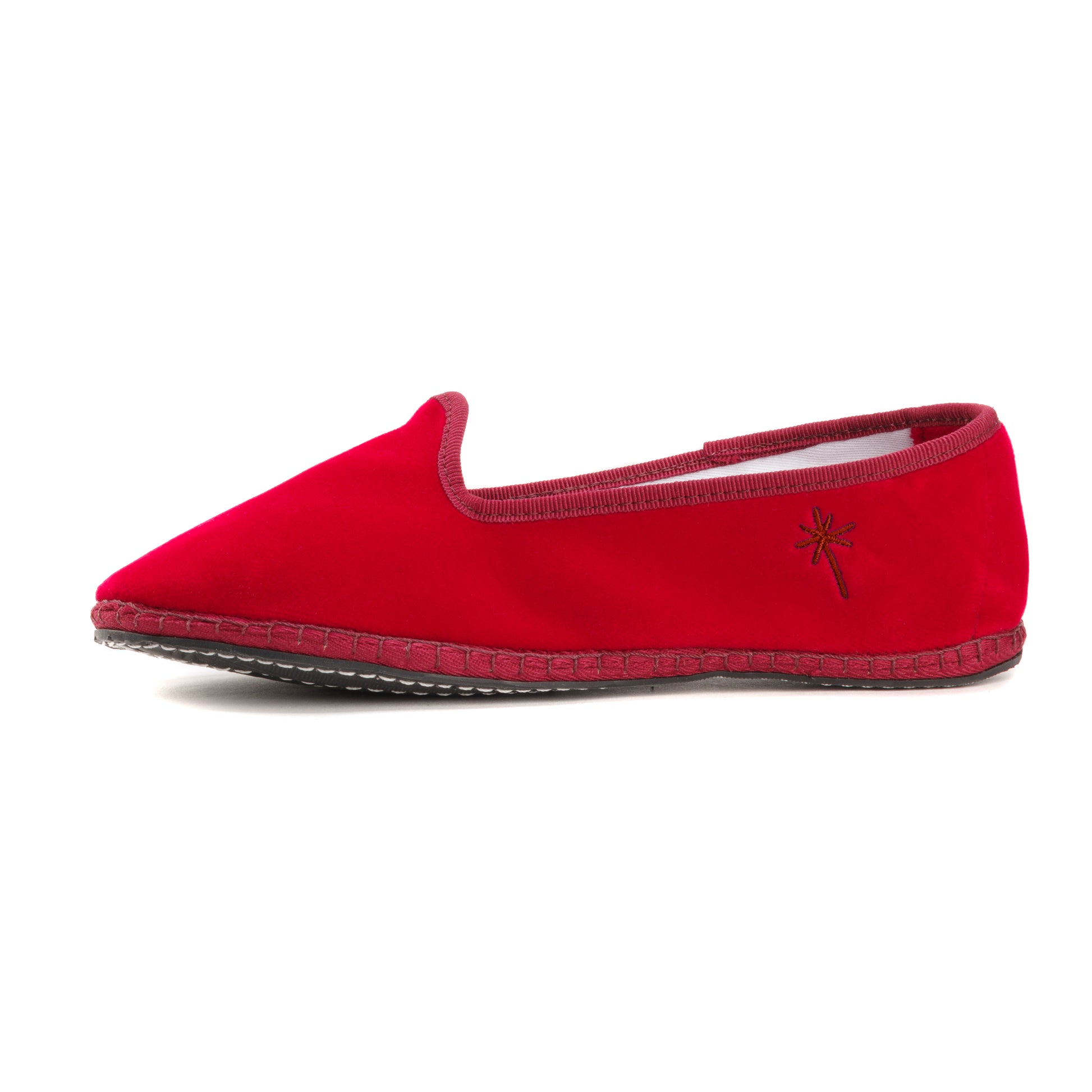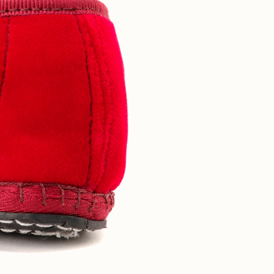 Friulane en velours rouge cerise et rebords en gros grain rouge foncé.