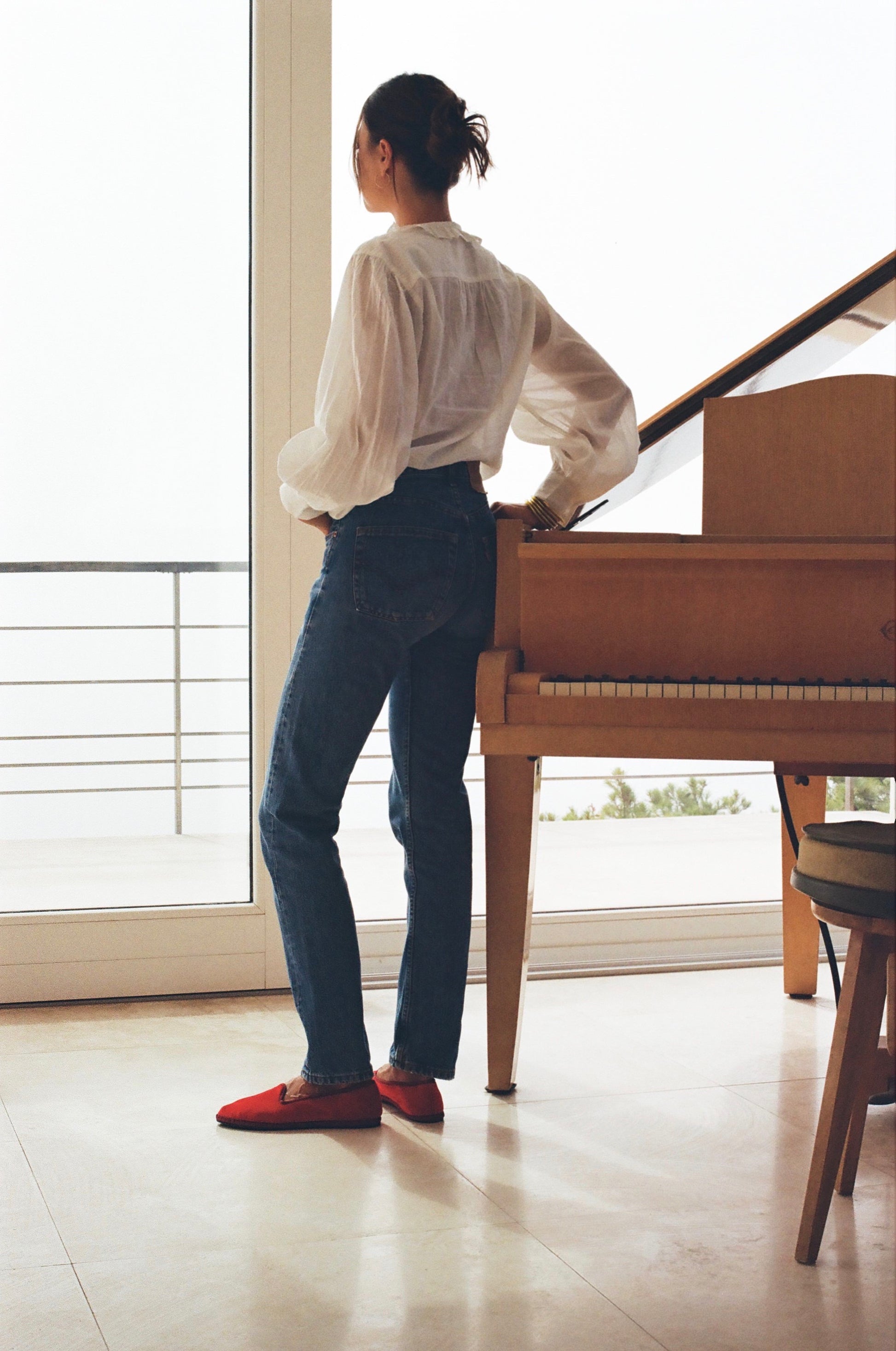 La semelle intérieure est en coton noir, la semelle extérieure en traditionnel pneu de vélo.