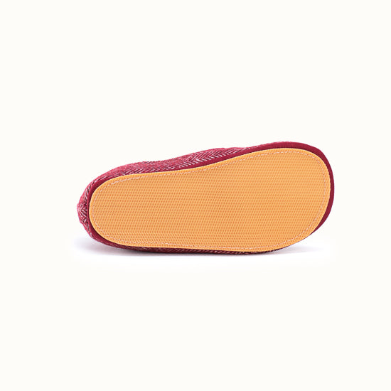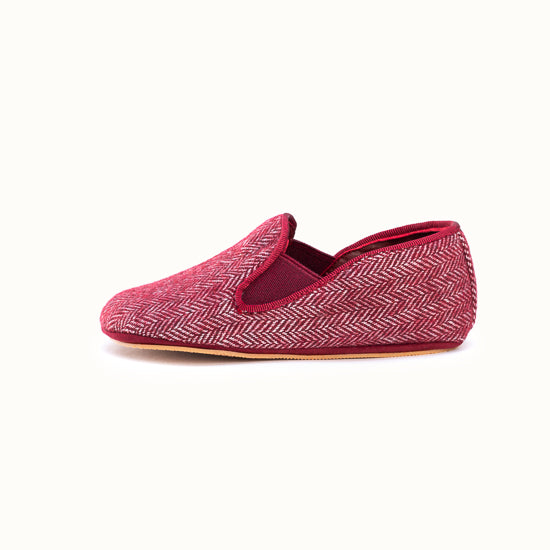 Pantoufle en tweed à chevrons bordeaux.
