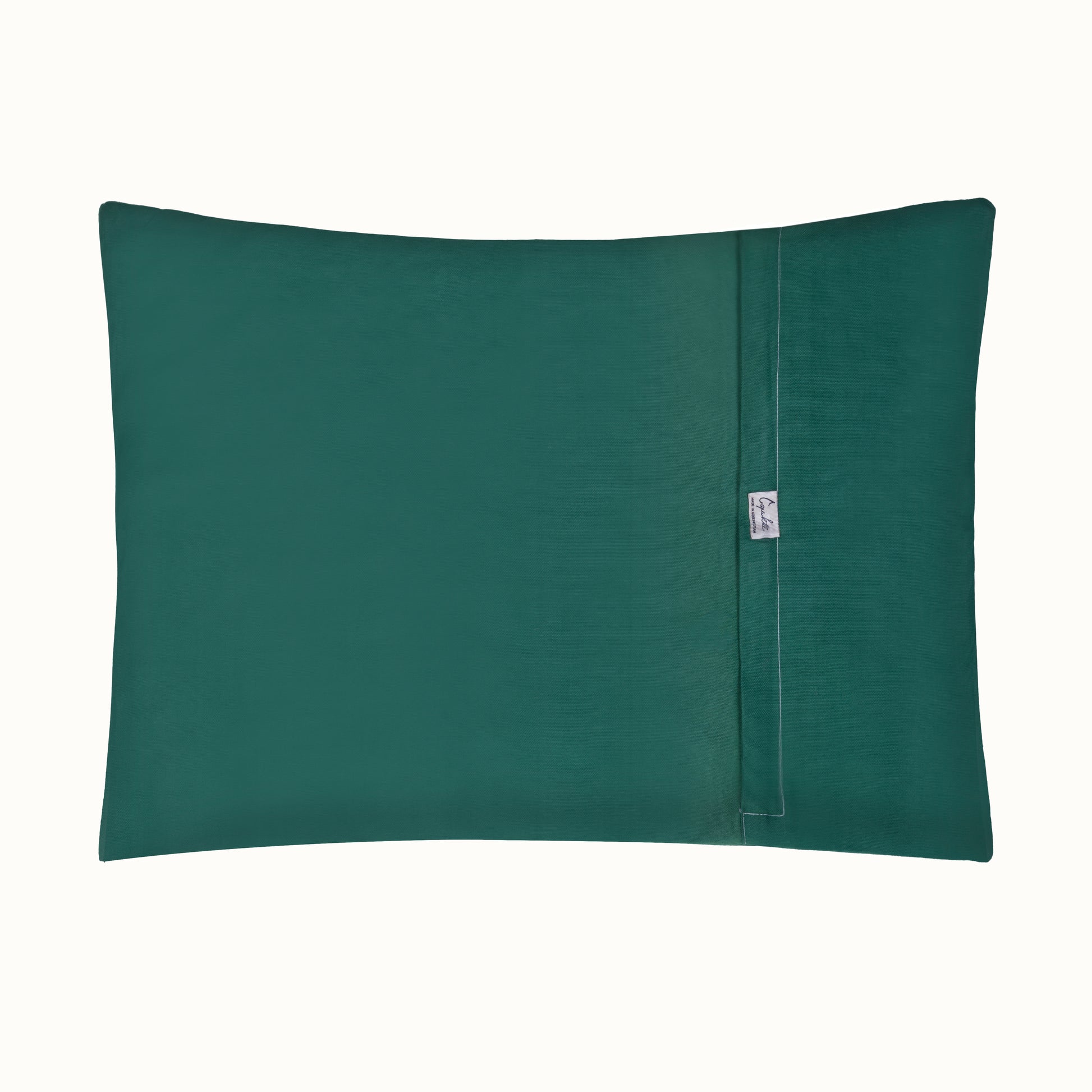 Housse de coussin en soie et coton satiné vert.