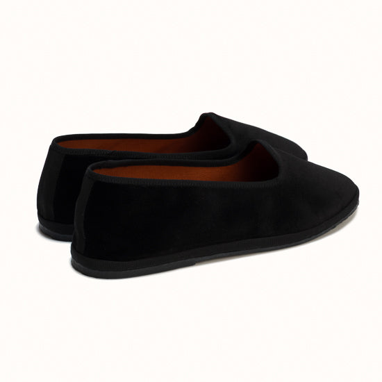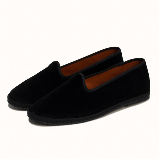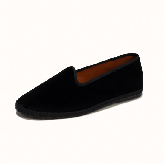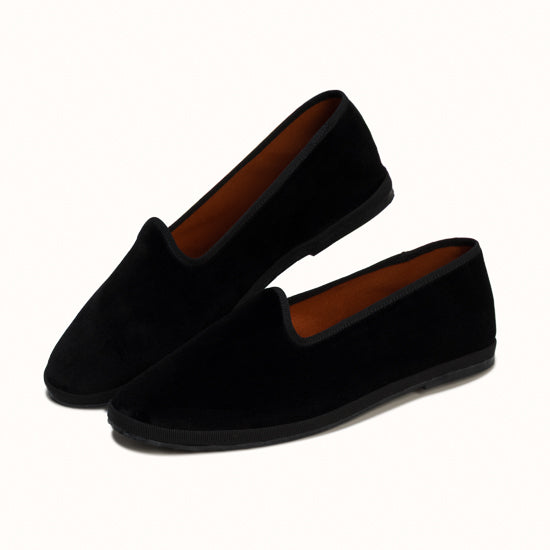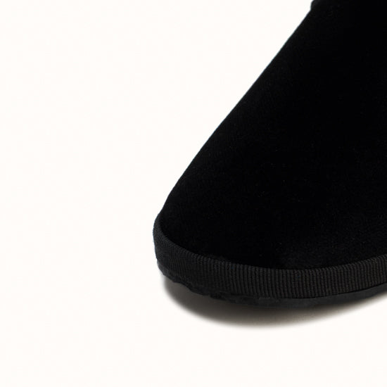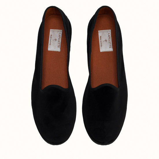 Friulane en velours noir et rebords en gros grain ton sur ton.