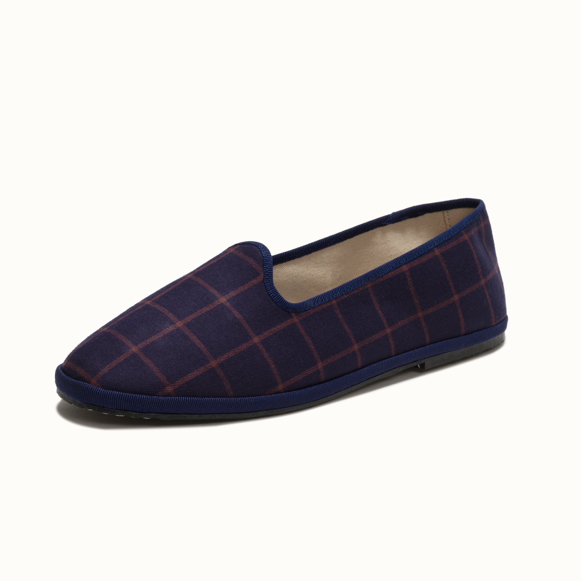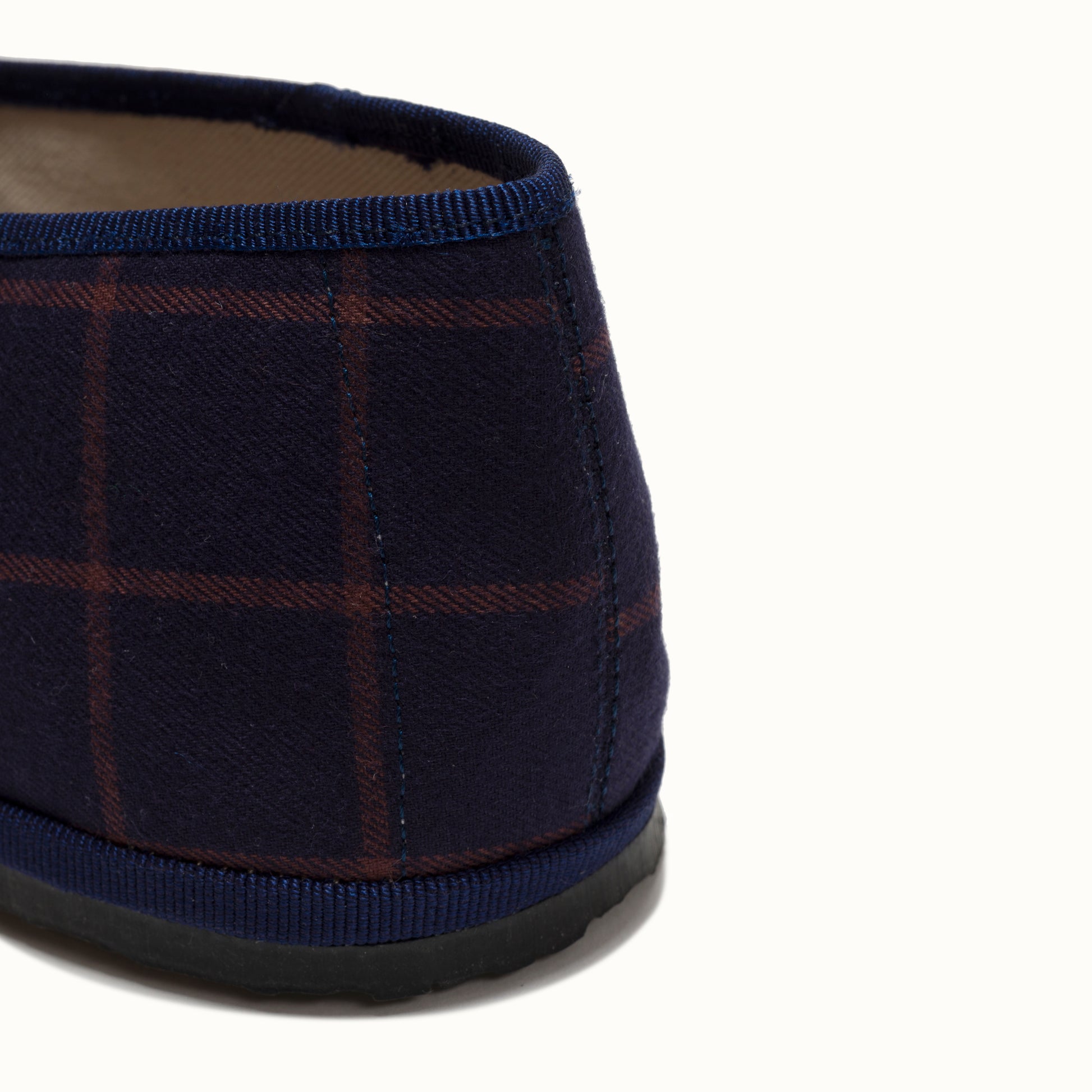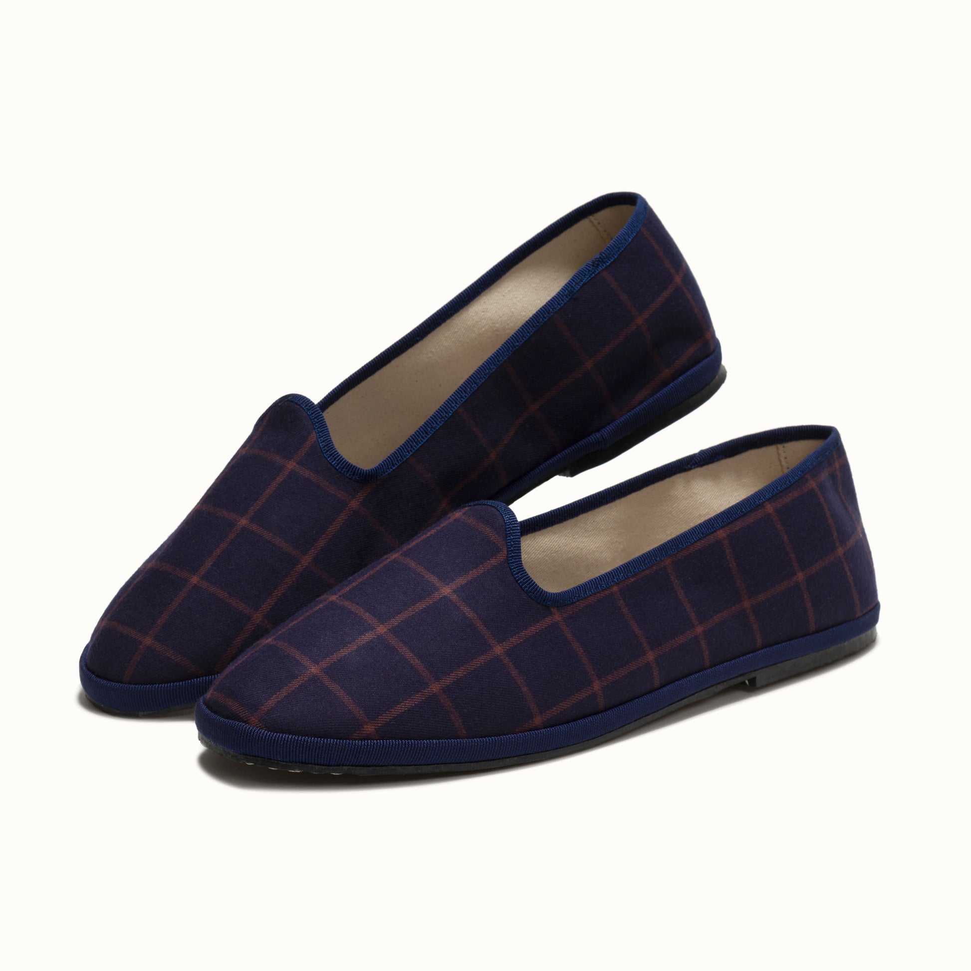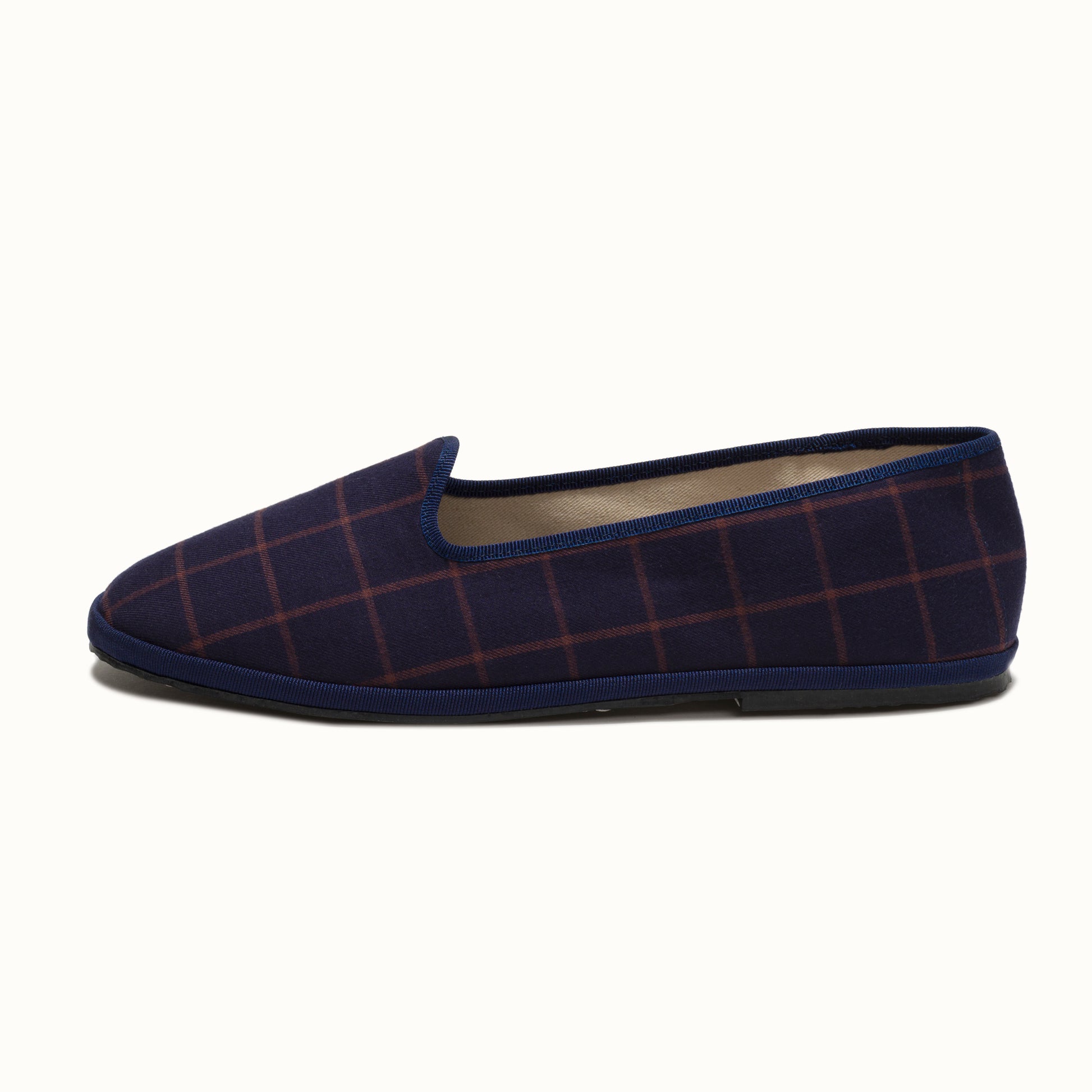 La semelle intérieure est en imprimés quadrillés gris et marron.