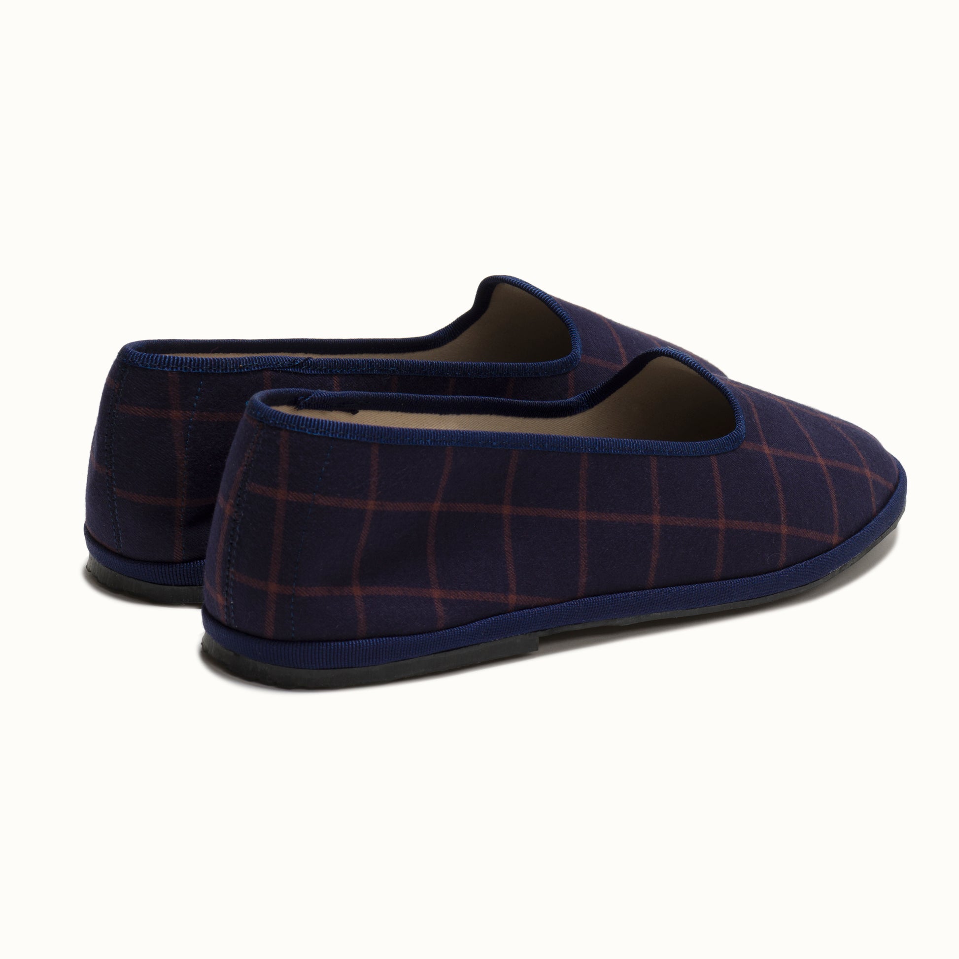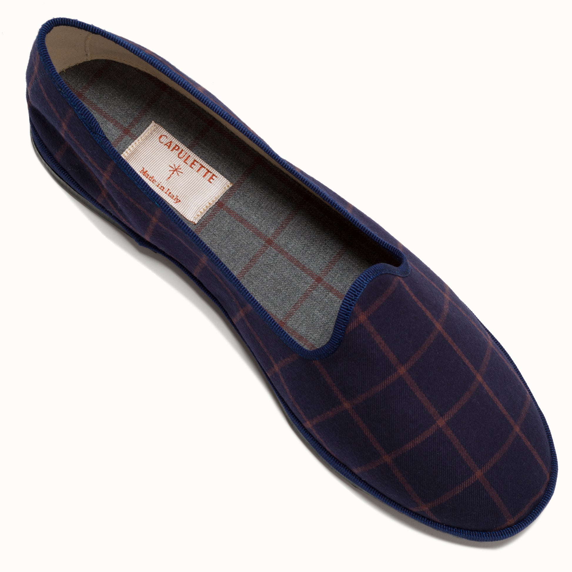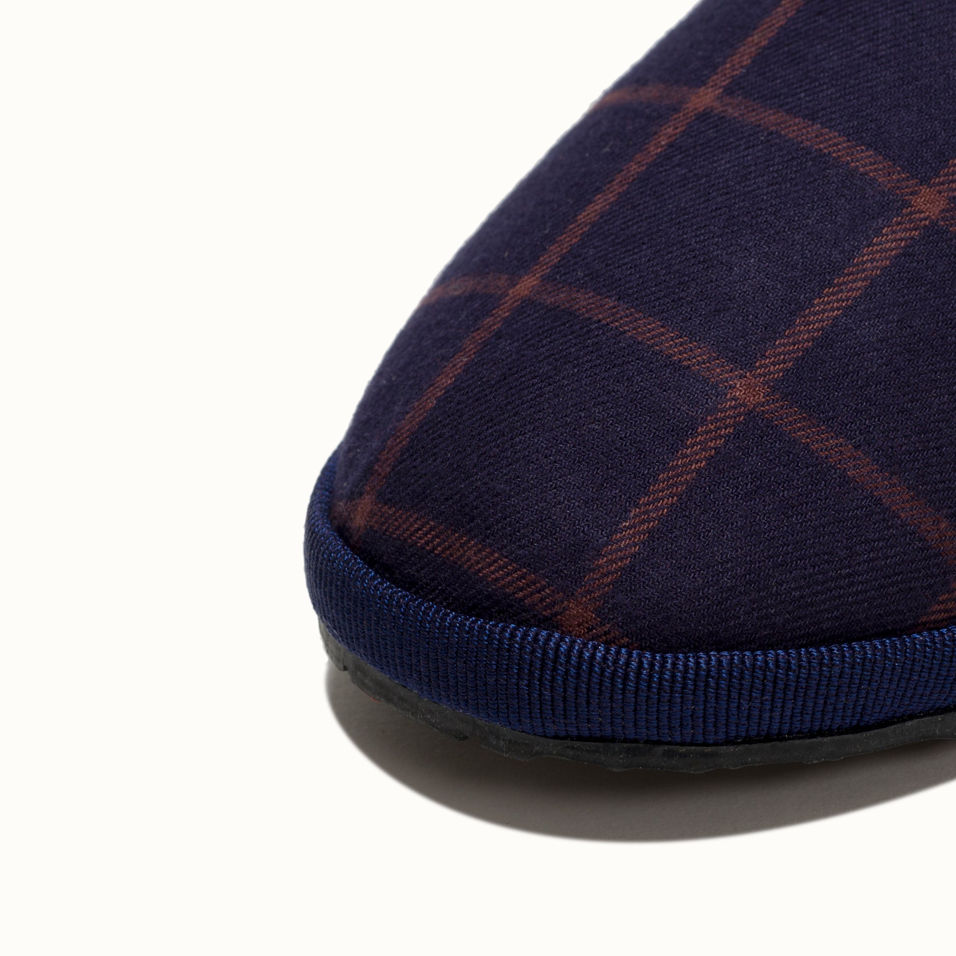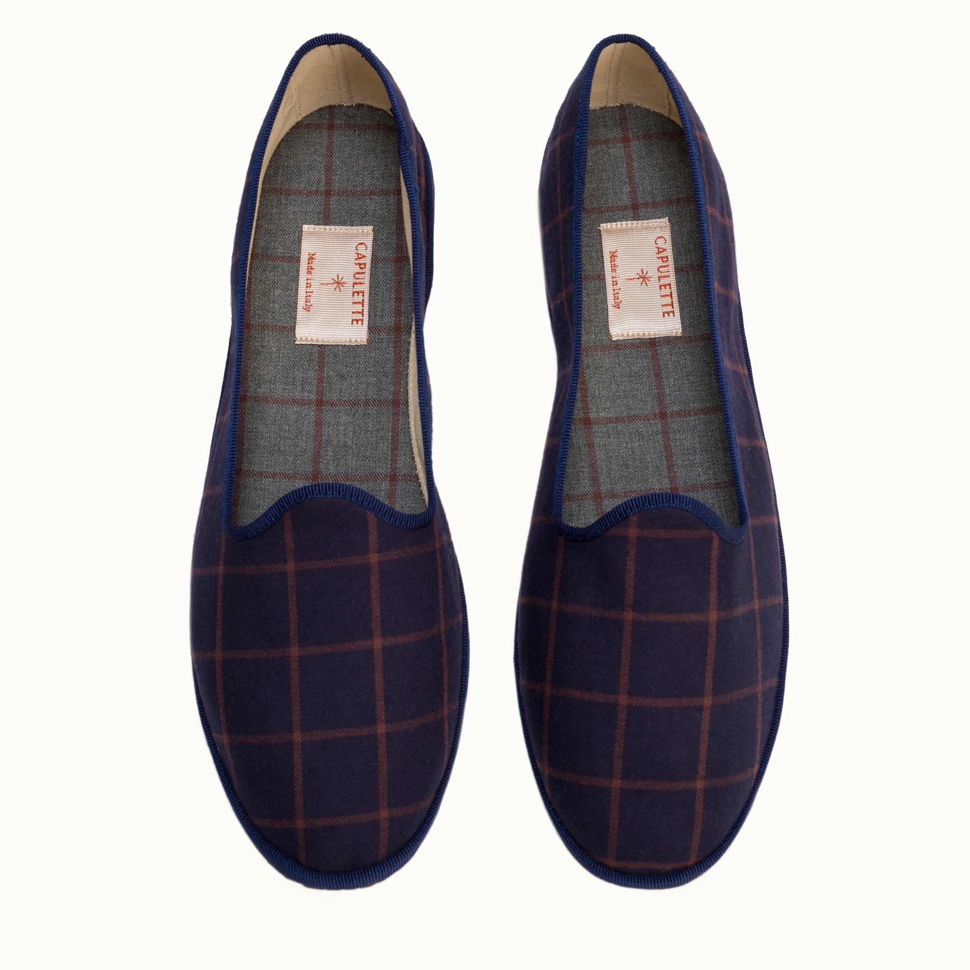 La semelle intérieure est en imprimés quadrillés gris et marron.