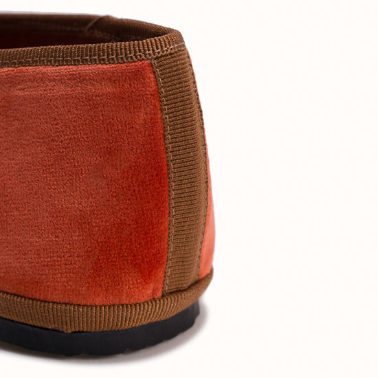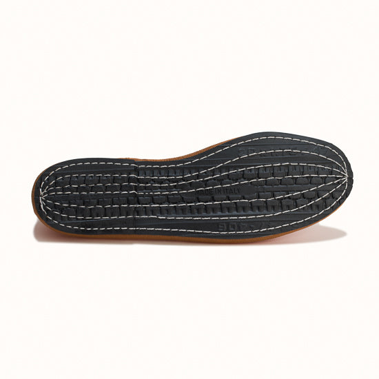 La semelle intérieure est en coton terracotta, la semelle extérieure en traditionnel pneu de vélo. Talon de 0,7cm.