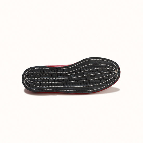 La semelle intérieure est en coton terracotta, la semelle extérieure en traditionnel pneu de vélo. Talon de 0,7cm.