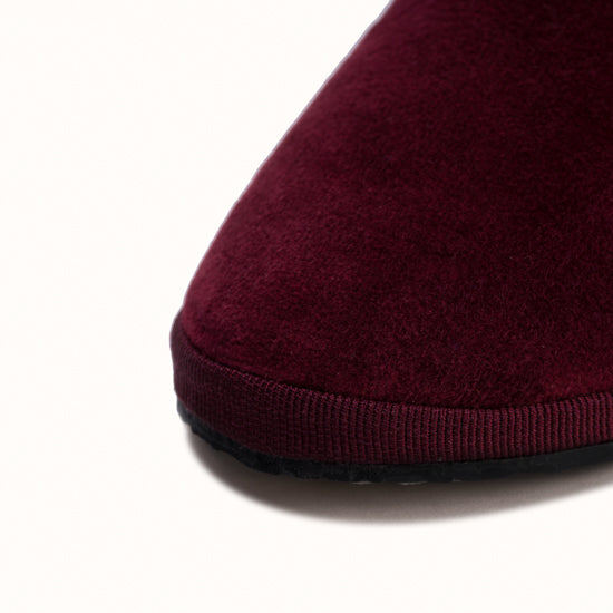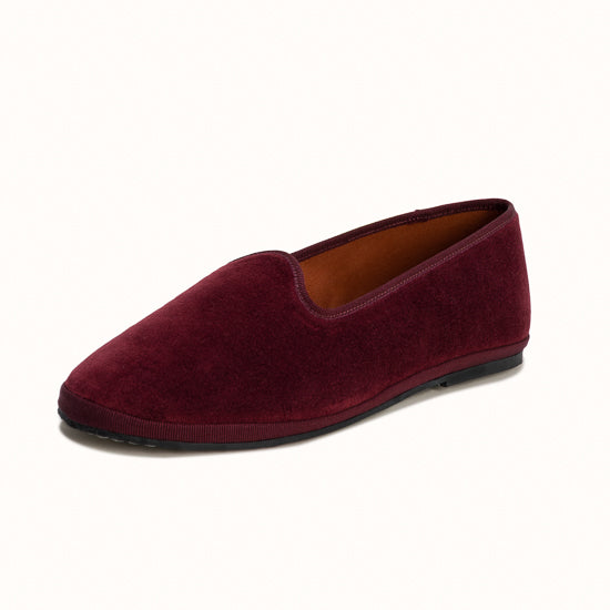 Friulane en velours lie de vin et rebords en gros grain ton sur ton.