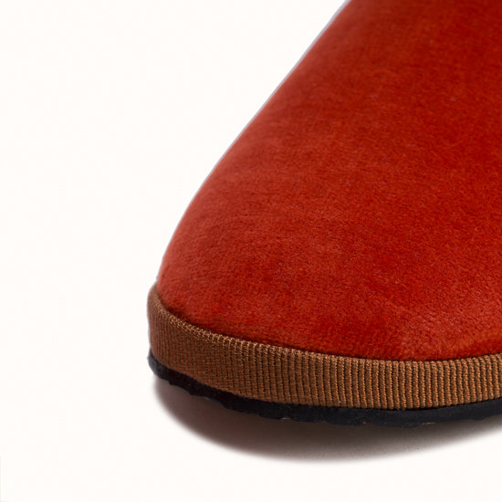 La semelle intérieure est en coton terracotta, la semelle extérieure en traditionnel pneu de vélo. Talon de 0,7cm.