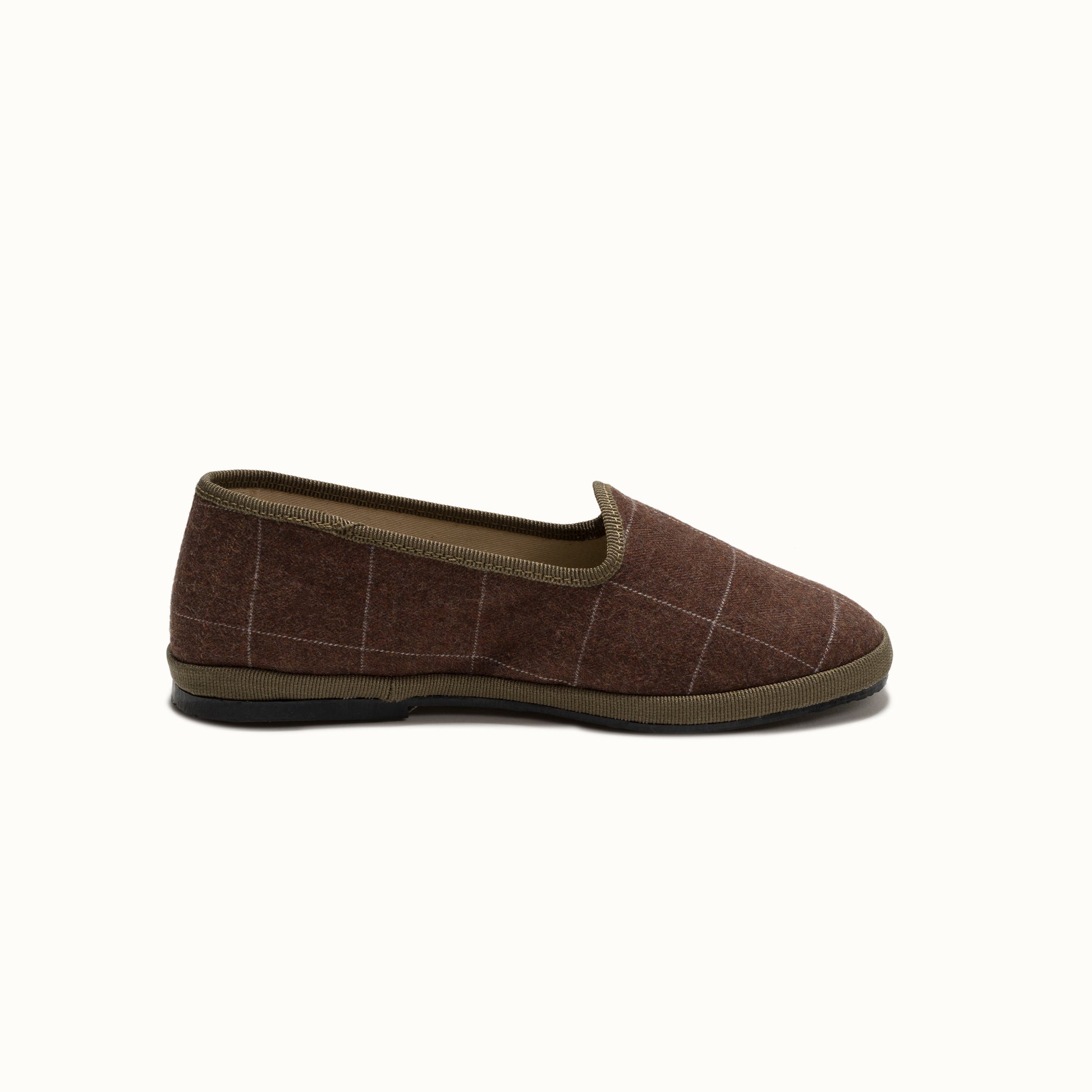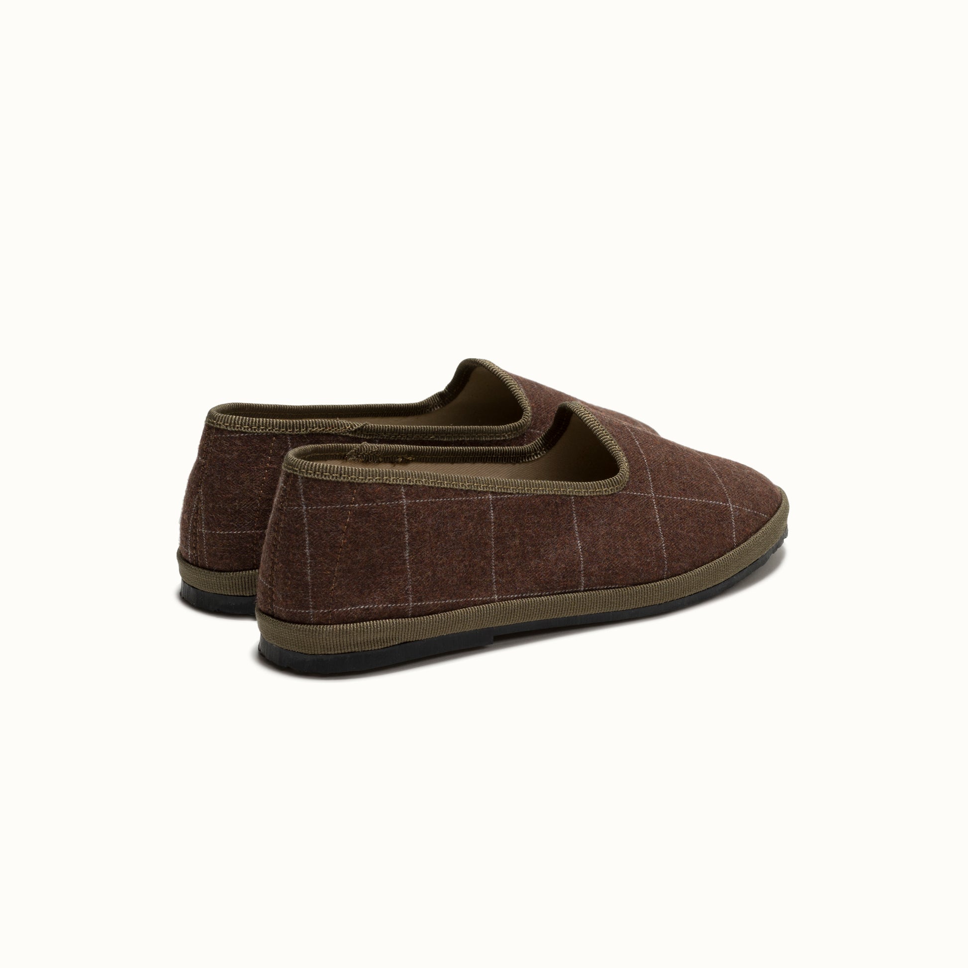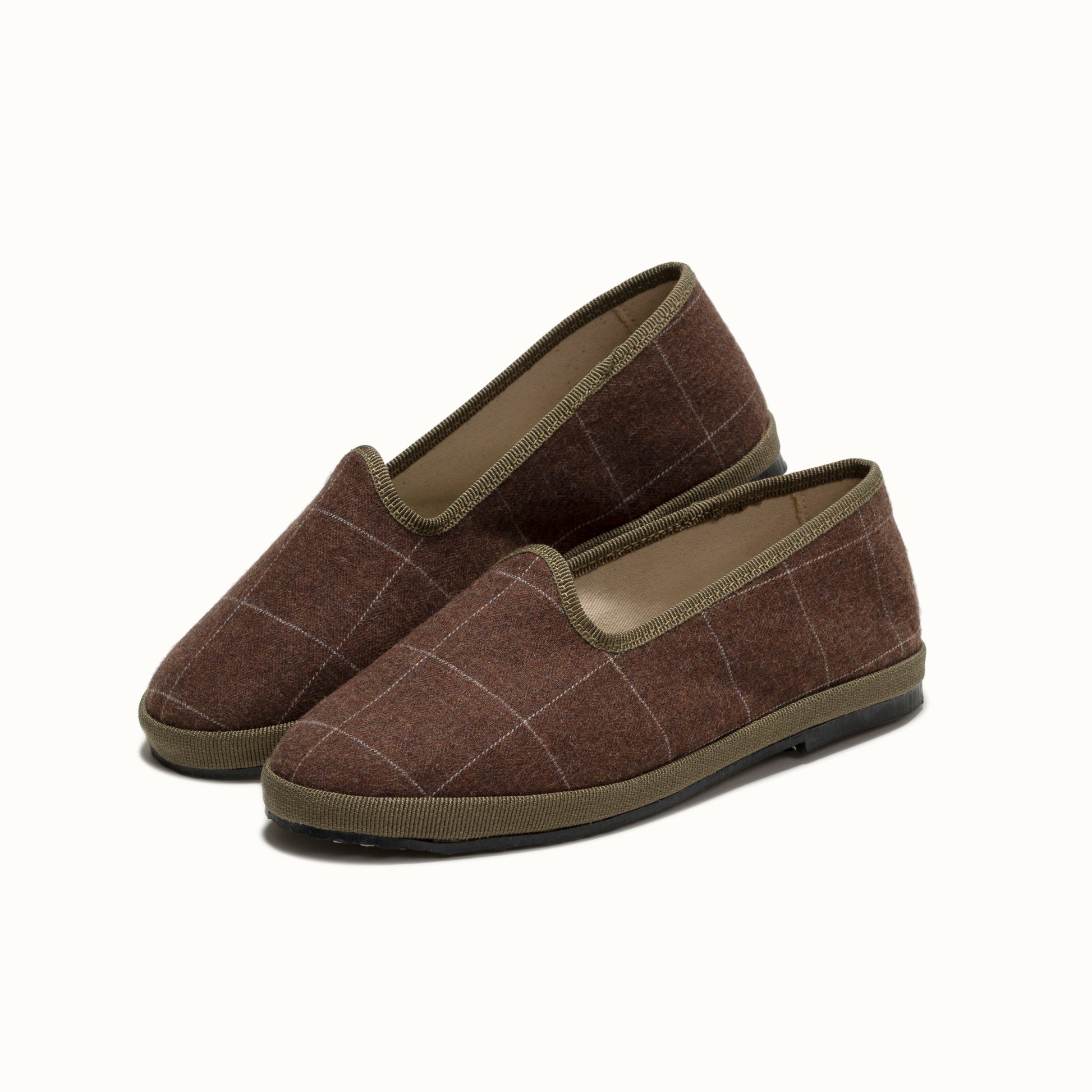 Friulane en imprimés quadrillés marron glacé et blanc.