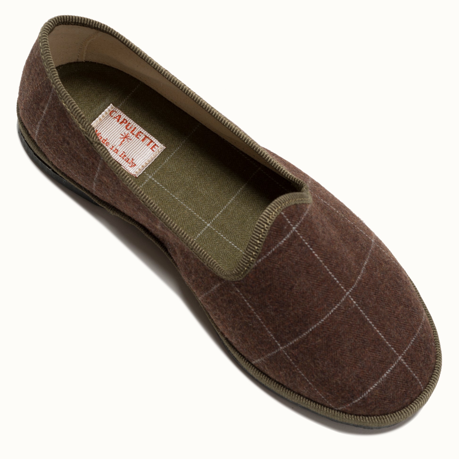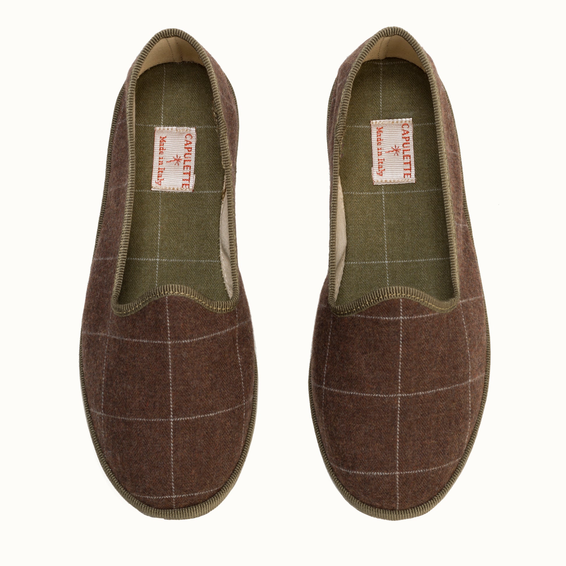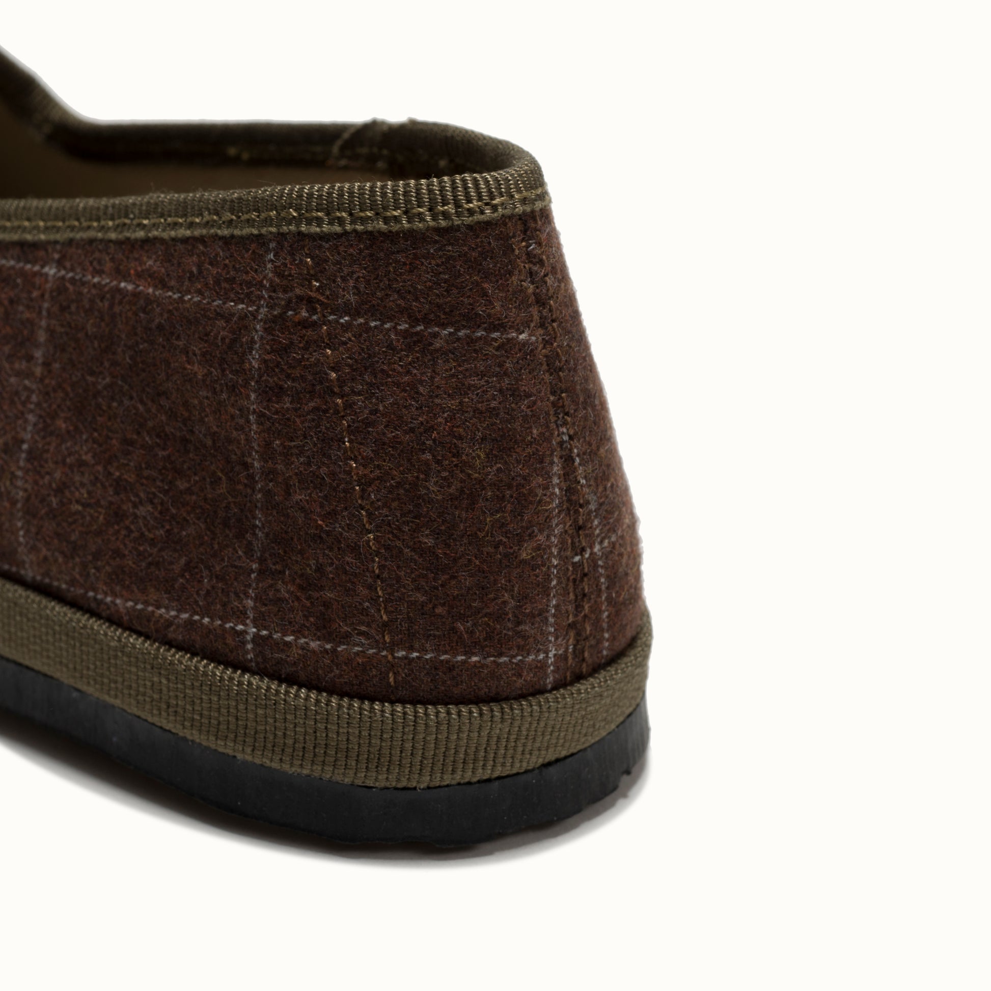 Friulane en imprimés quadrillés marron glacé et blanc.