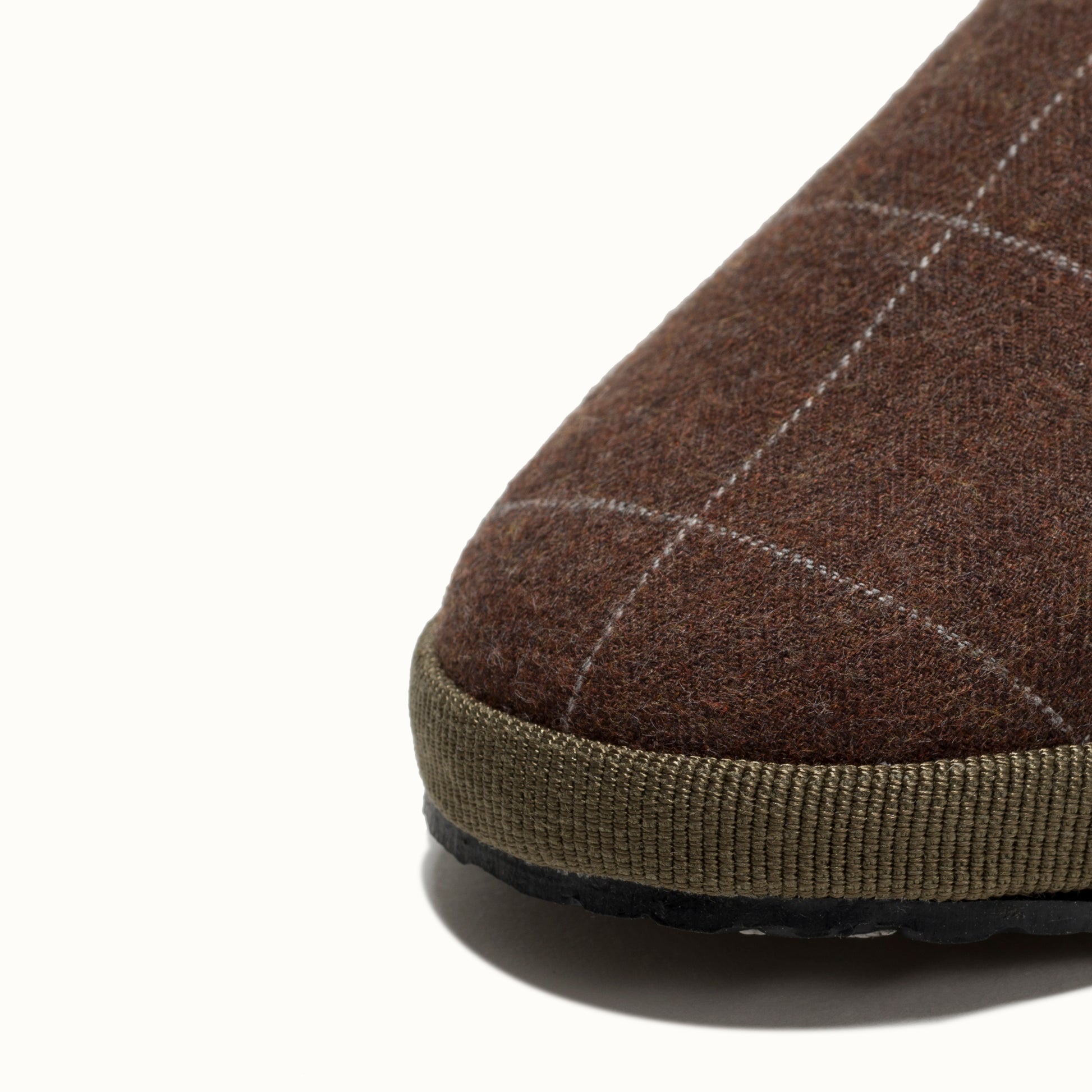 La semelle intérieure est en imprimés quadrillés vert olive et blanc.