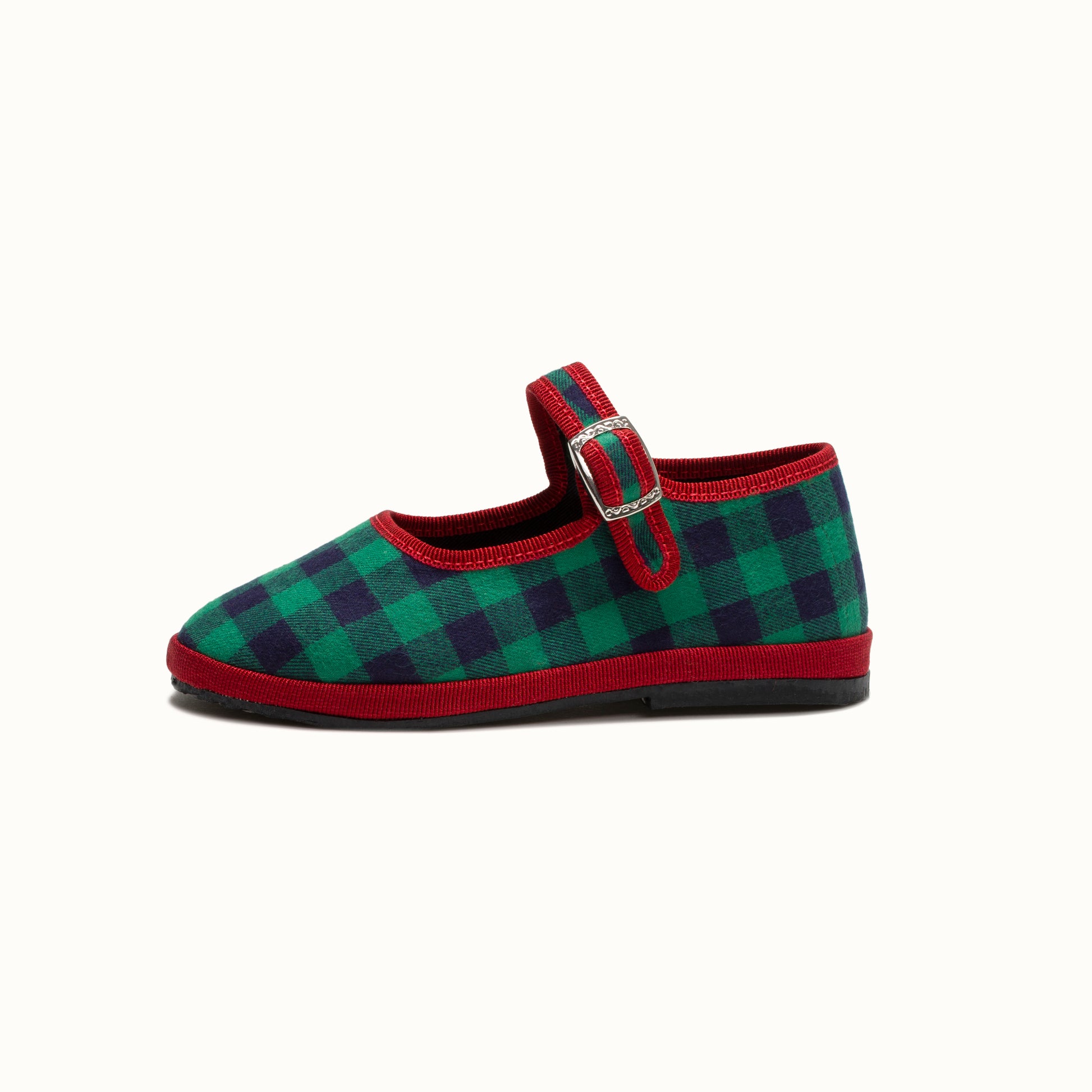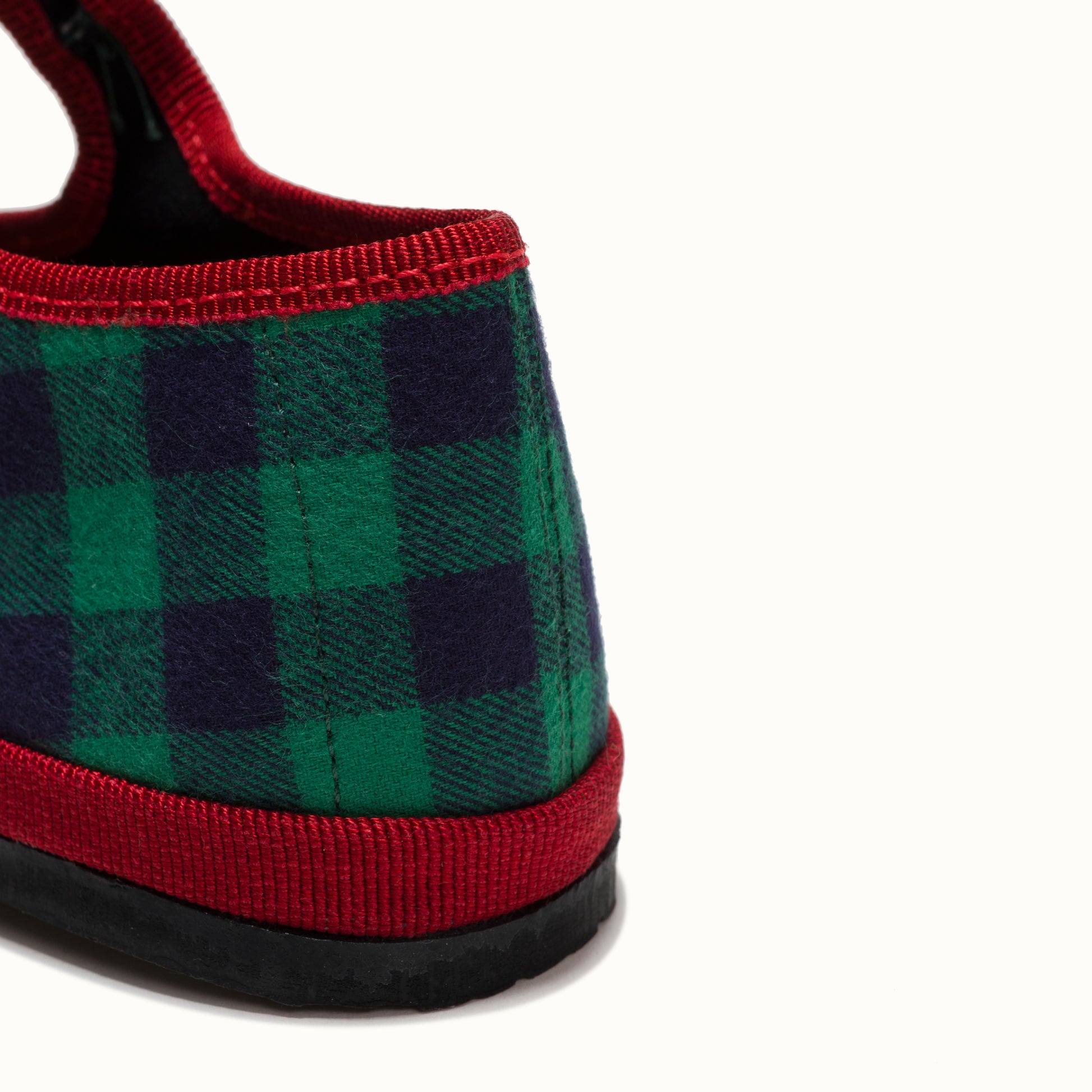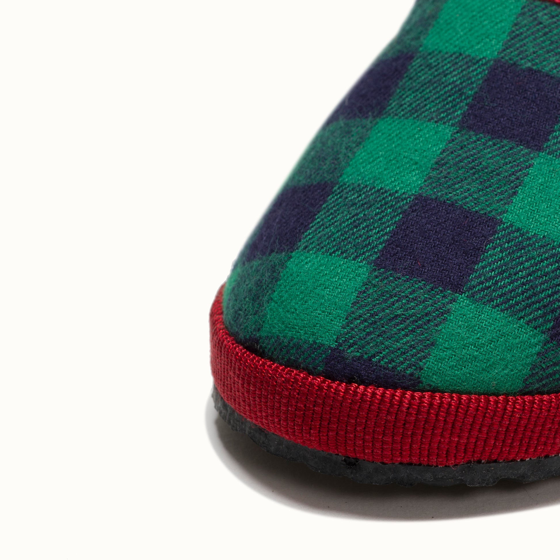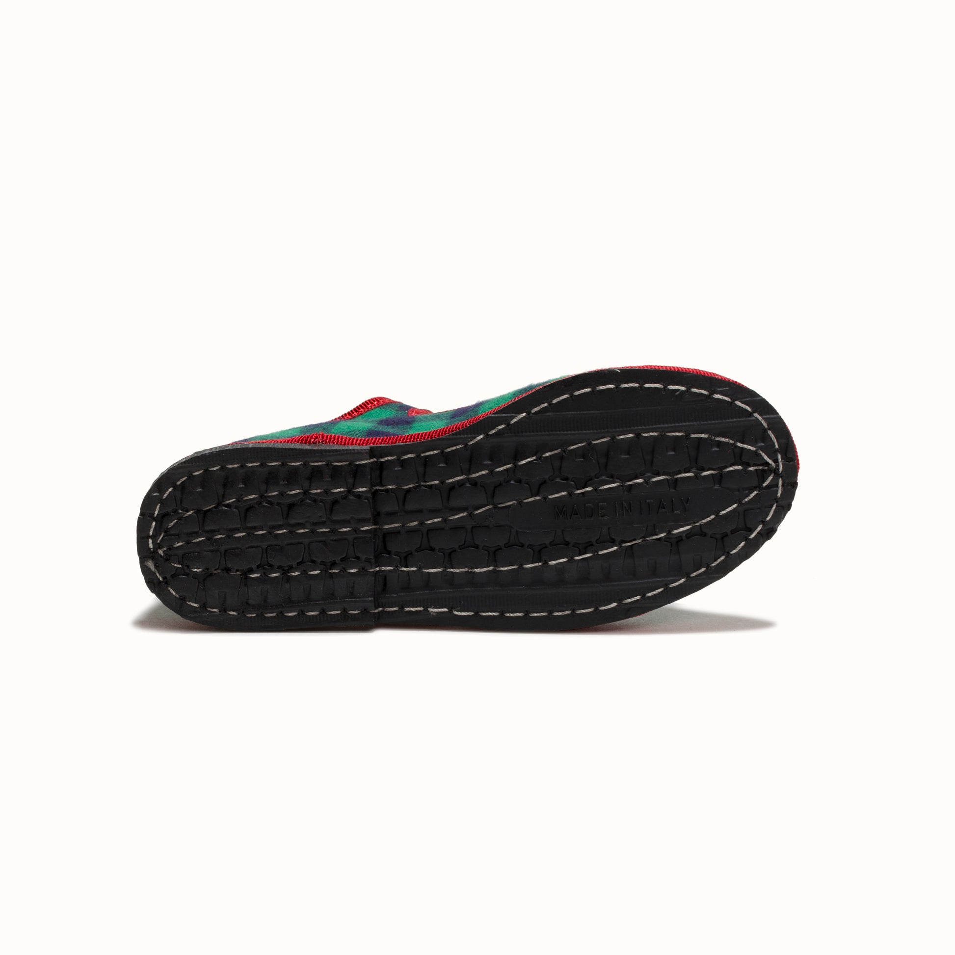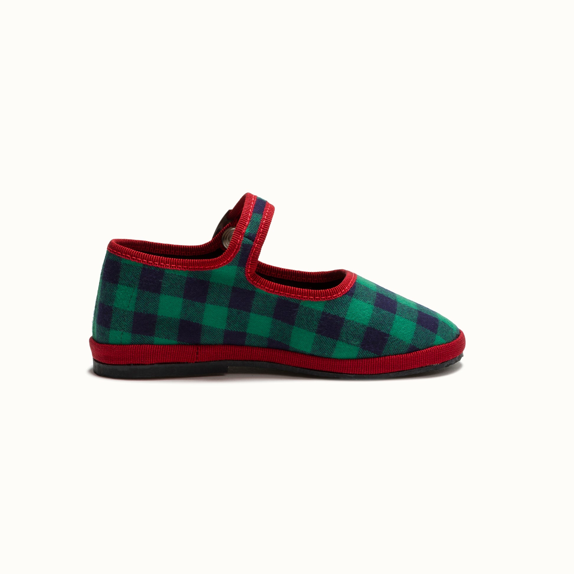 La semelle intérieure est en coton à carreaux jaune et bleu.