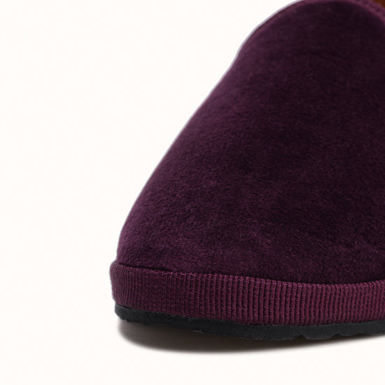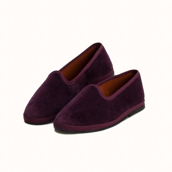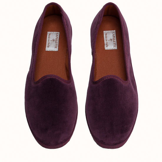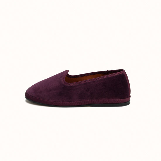 Friulane en velours prune et rebords en gros grain ton sur ton.