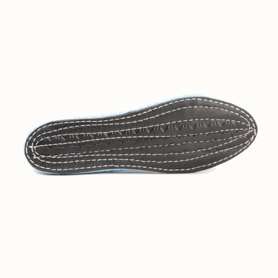 La semelle intérieure est en coton noir, la semelle extérieure en traditionnel pneu de vélo.