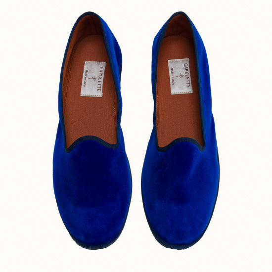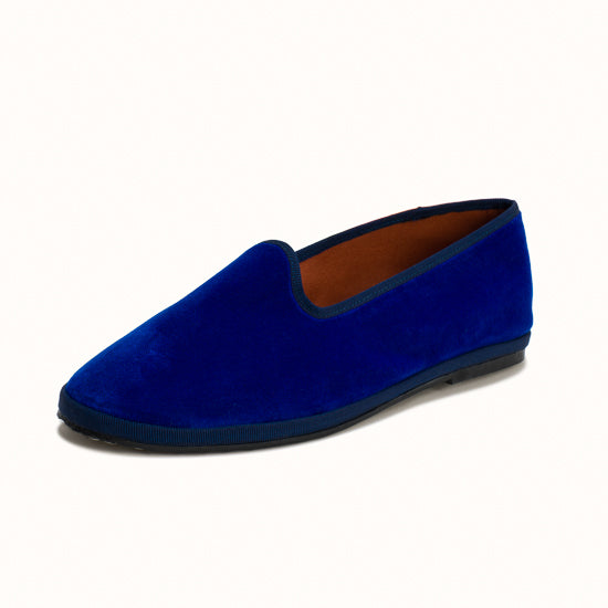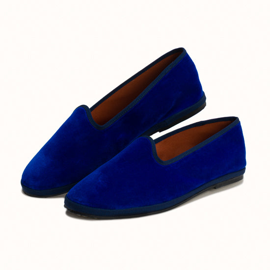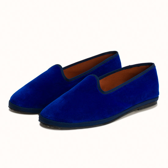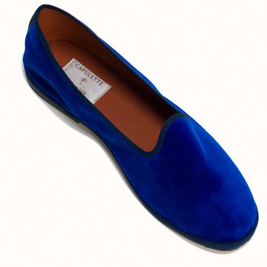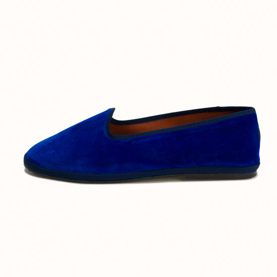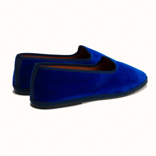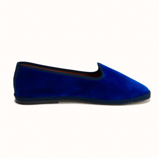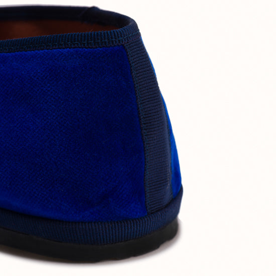 Friulane en velours bleu roi et rebords en gros grain ton sur ton.