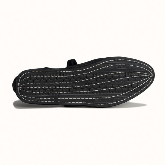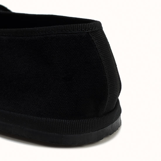 La semelle intérieure est en coton noir et et la semelle extérieure est en traditionnel pneu de vélo.