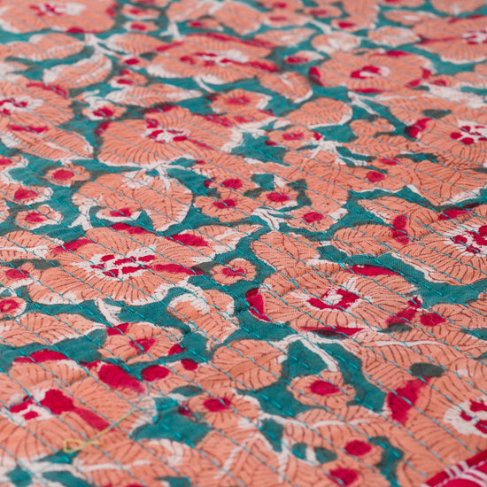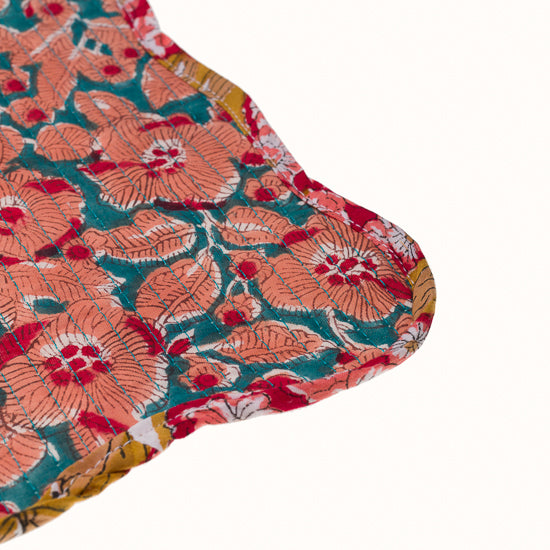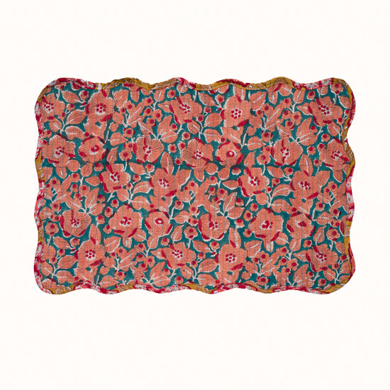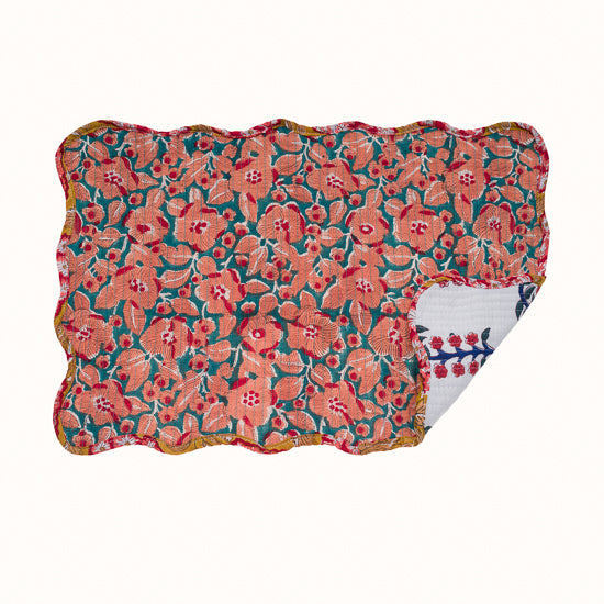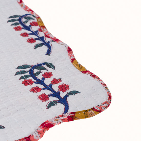 Set de table ondulé réversible en coton imprimé blockprint, et finition matelassée.