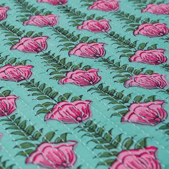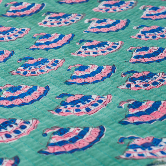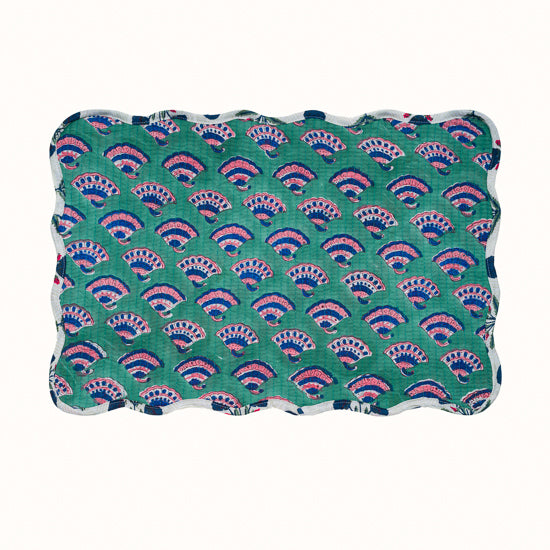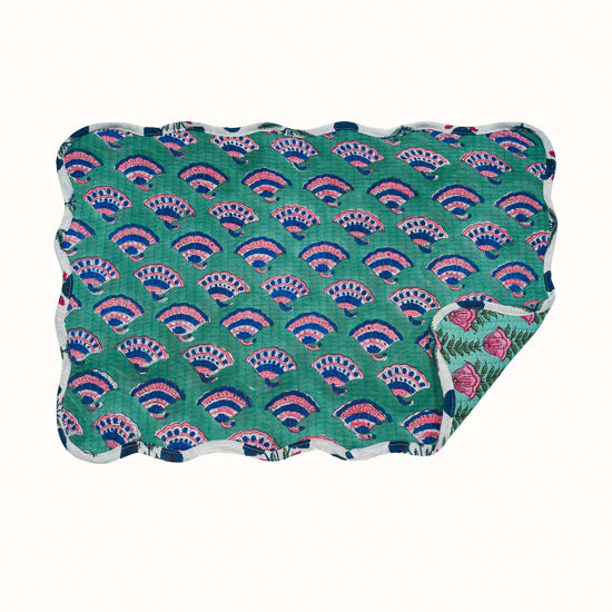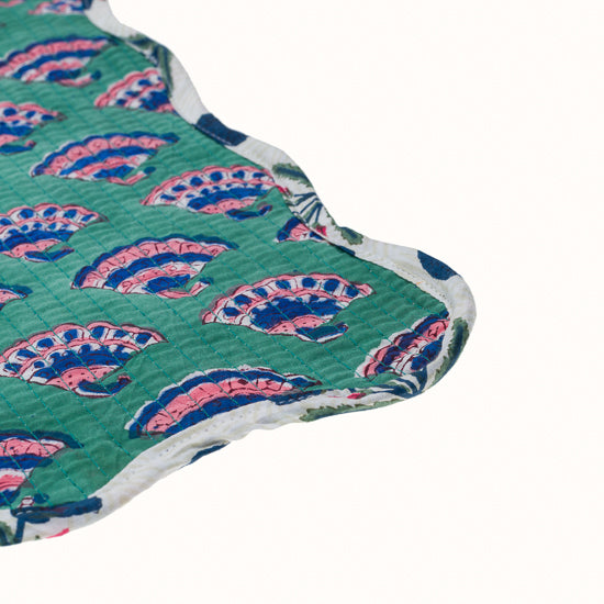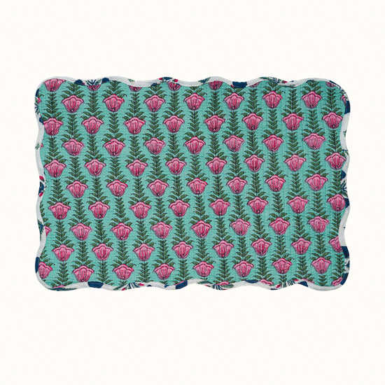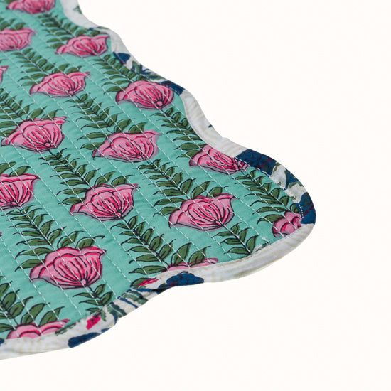 Set de table ondulé réversible en coton imprimé blockprint, et finition matelassée.