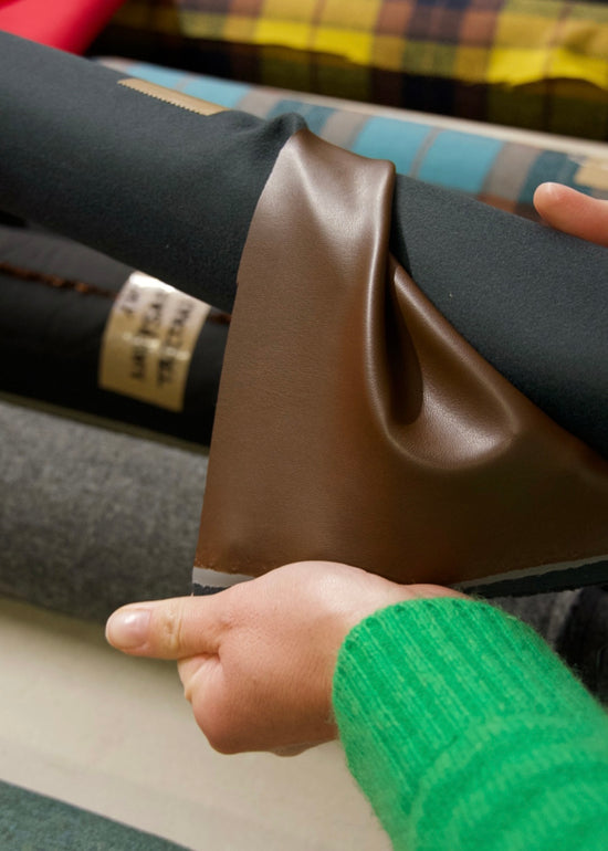 Avant d'être envoyés dans nos ateliers en Italie, chaque tissu est contrôlé avec la plus grande attention à Paris.
